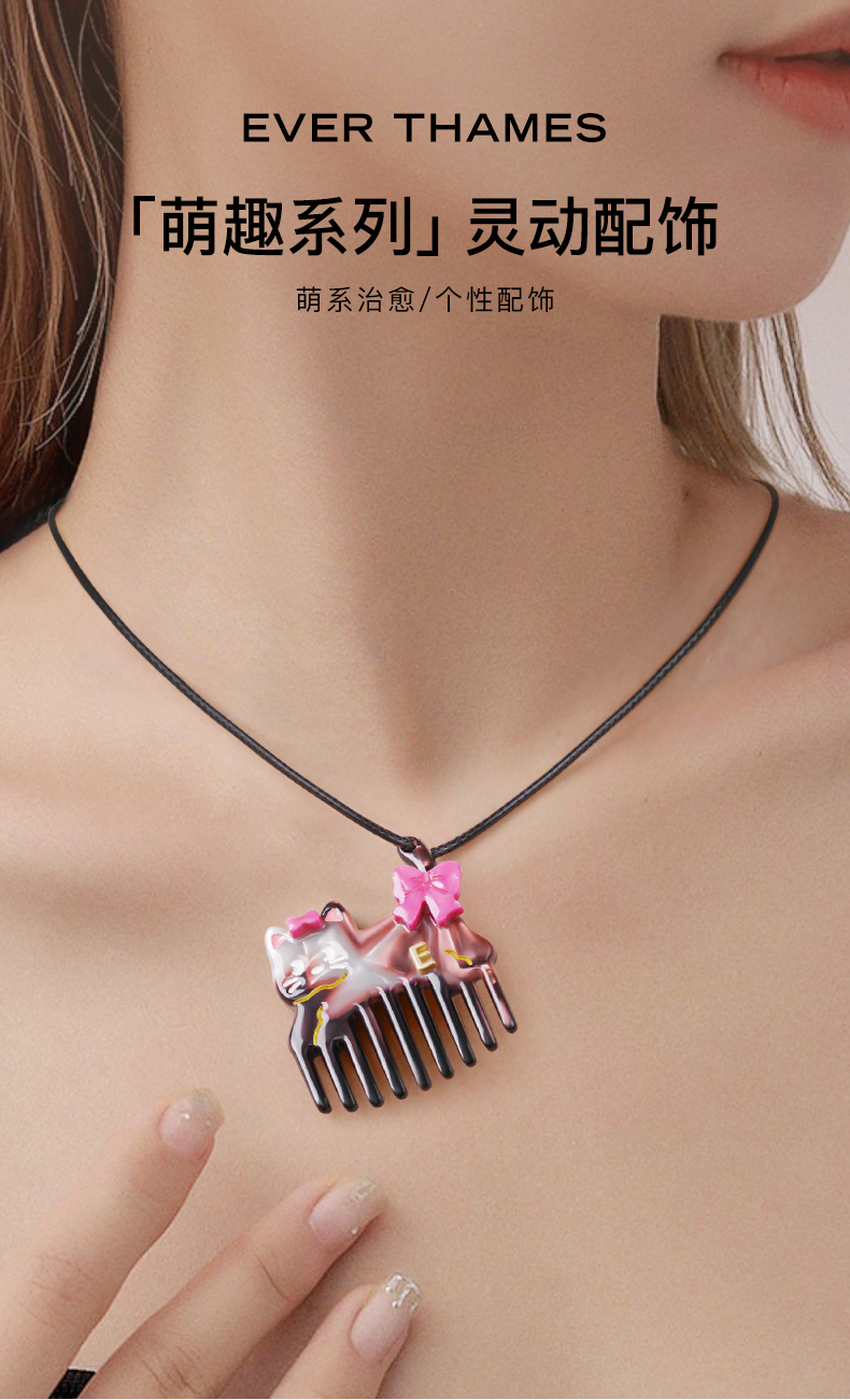 EVER THAMES 迷你梳子可爱萌趣猫咪便携小梳子小巧随身带刘海发尾梳