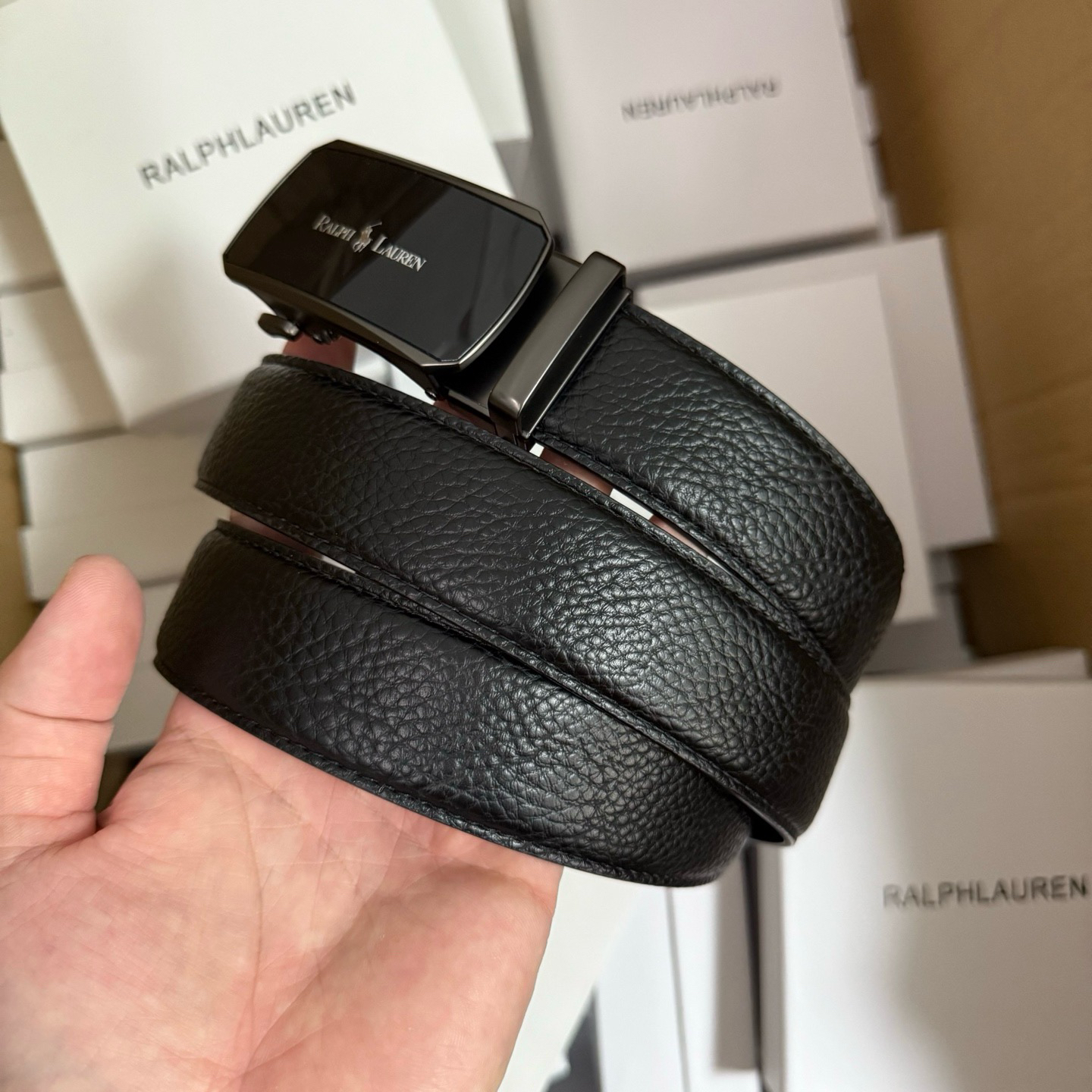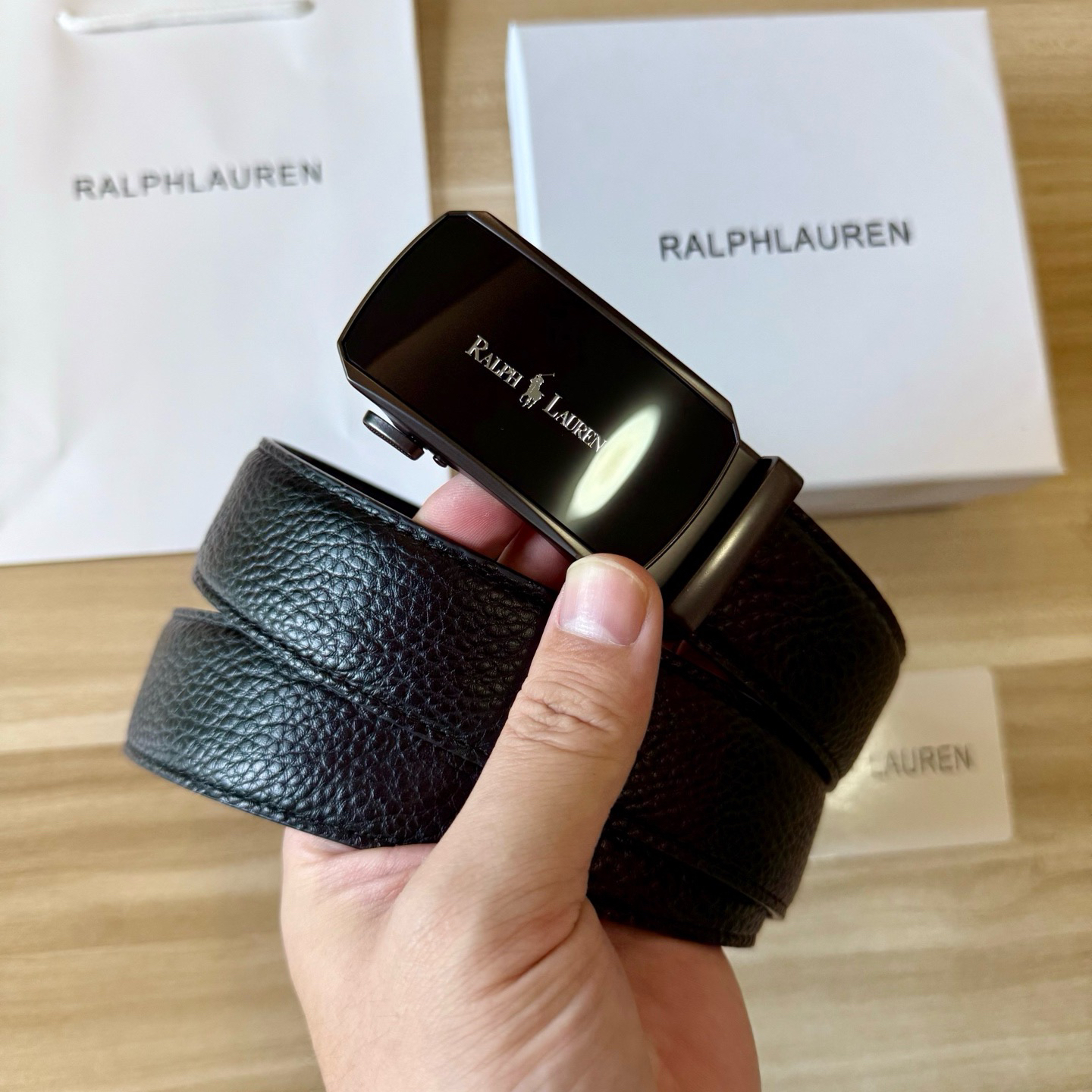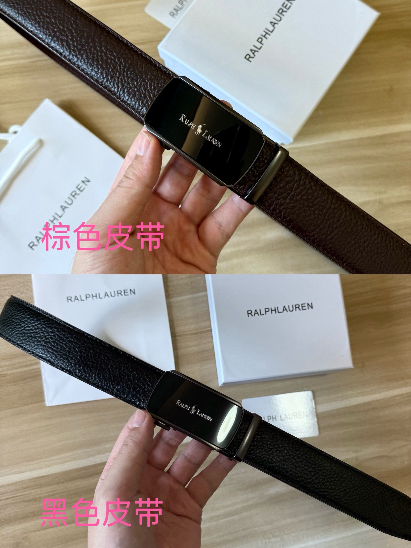 💰新款出货了 特别火🔥的男士腰带 拉夫劳伦/RL 自动扣荔枝纹牛皮皮带 专柜价格1580+ 荔枝纹真的是经典中的经典 即休闲 又有质感 口碑非常的好 有喜欢的老铁 千万别错过 真的是非常赞 东莞代工厂原单扣头 质感绝不是fang货能比的 双面二层牛皮材质 非常的有档次 这款皮带也非常百搭 可商务 可休闲 轻奢品牌 真心推荐 尺寸:3.5x120cm 长短可以自己调节 最大能用到220斤 全套包装礼盒 手提袋 很高级