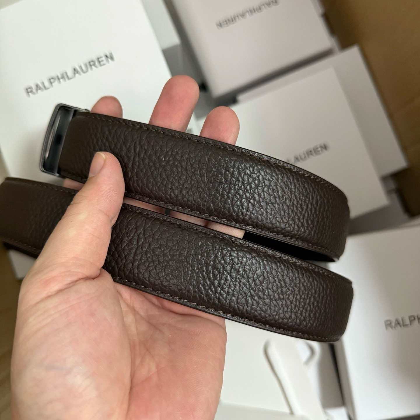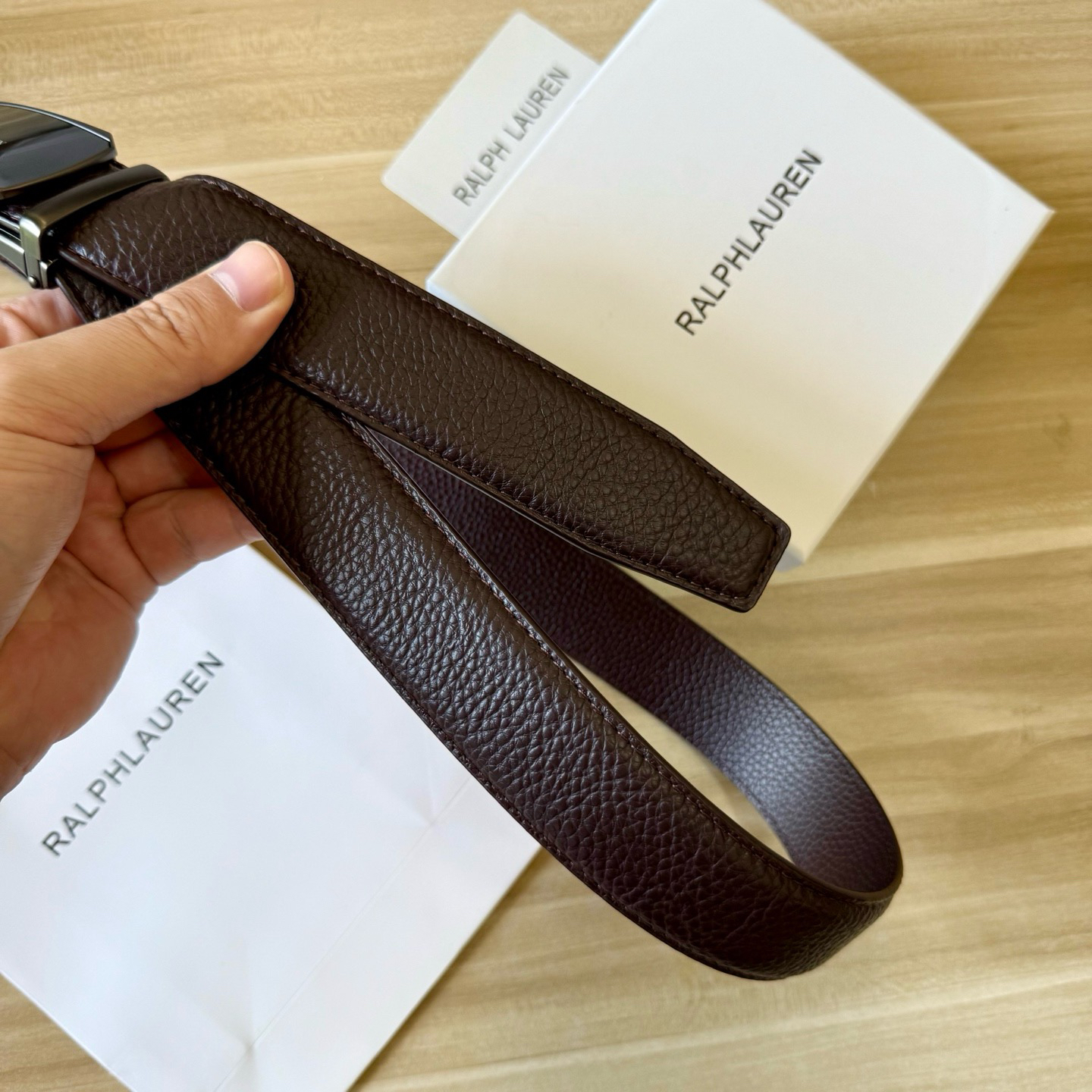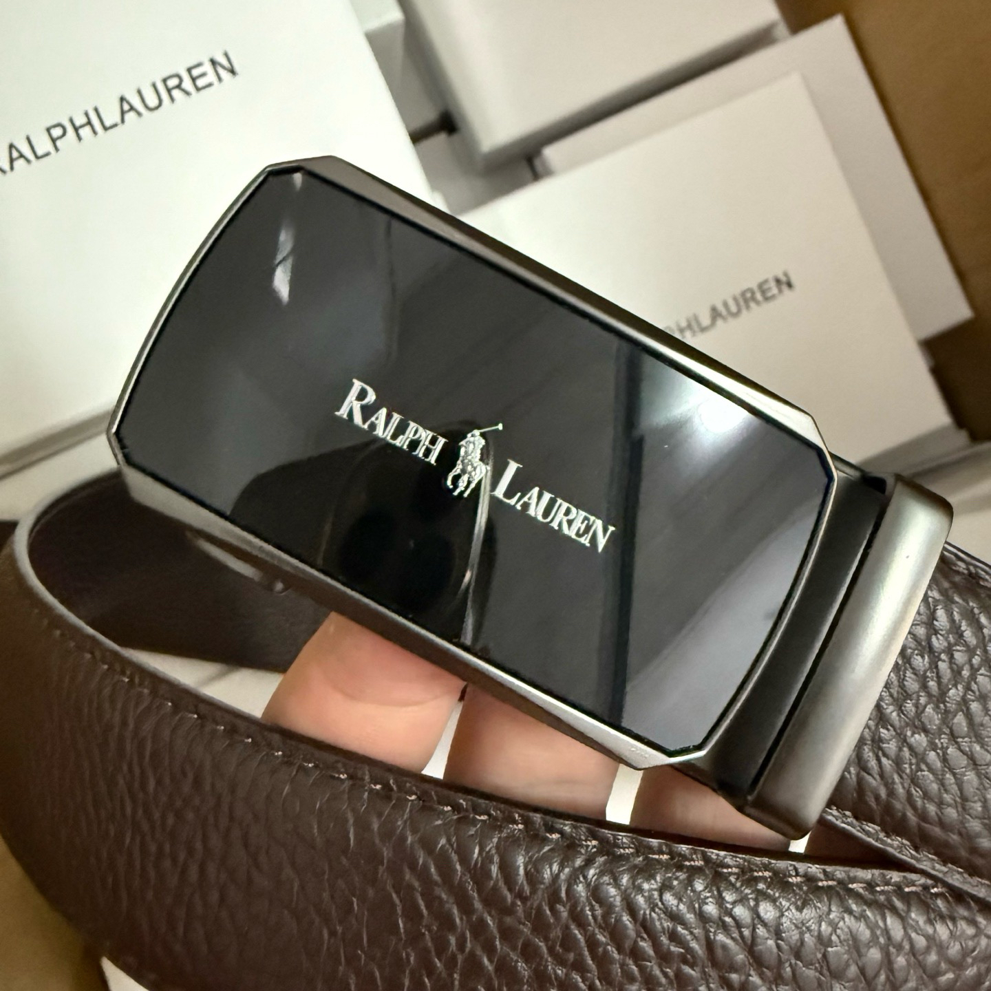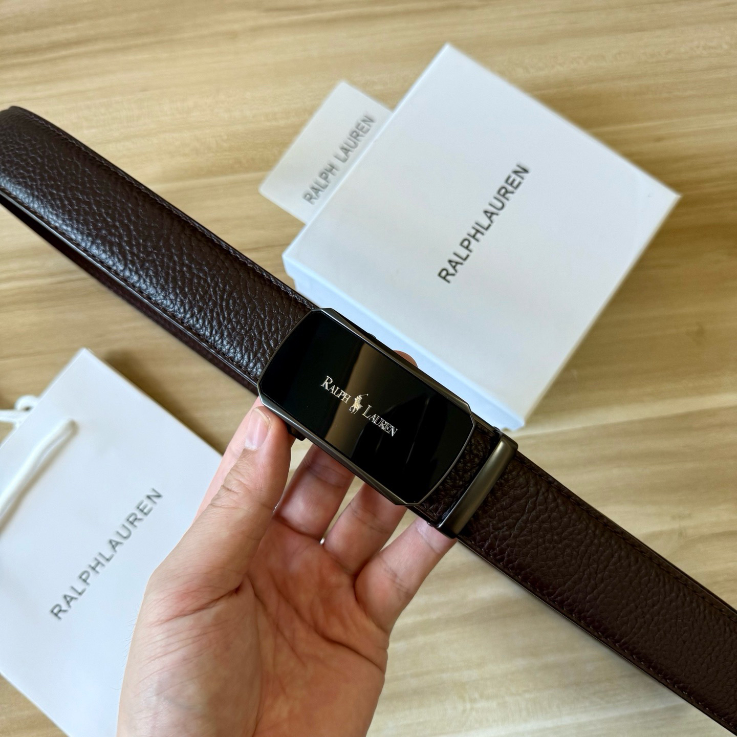 💰新款出货了 特别火🔥的男士腰带 拉夫劳伦/RL 自动扣荔枝纹牛皮皮带 专柜价格1580+ 荔枝纹真的是经典中的经典 即休闲 又有质感 口碑非常的好 有喜欢的老铁 千万别错过 真的是非常赞 东莞代工厂原单扣头 质感绝不是fang货能比的 双面二层牛皮材质 非常的有档次 这款皮带也非常百搭 可商务 可休闲 轻奢品牌 真心推荐 尺寸:3.5x120cm 长短可以自己调节 最大能用到220斤 全套包装礼盒 手提袋 很高级