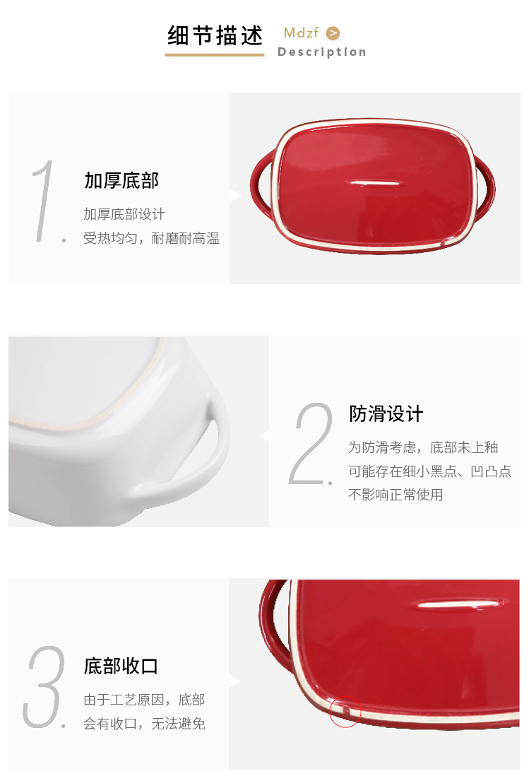 摩登主妇长方形陶瓷烤碗双耳焗饭盘家用西餐盘微波炉烘焙烤盘菜盘