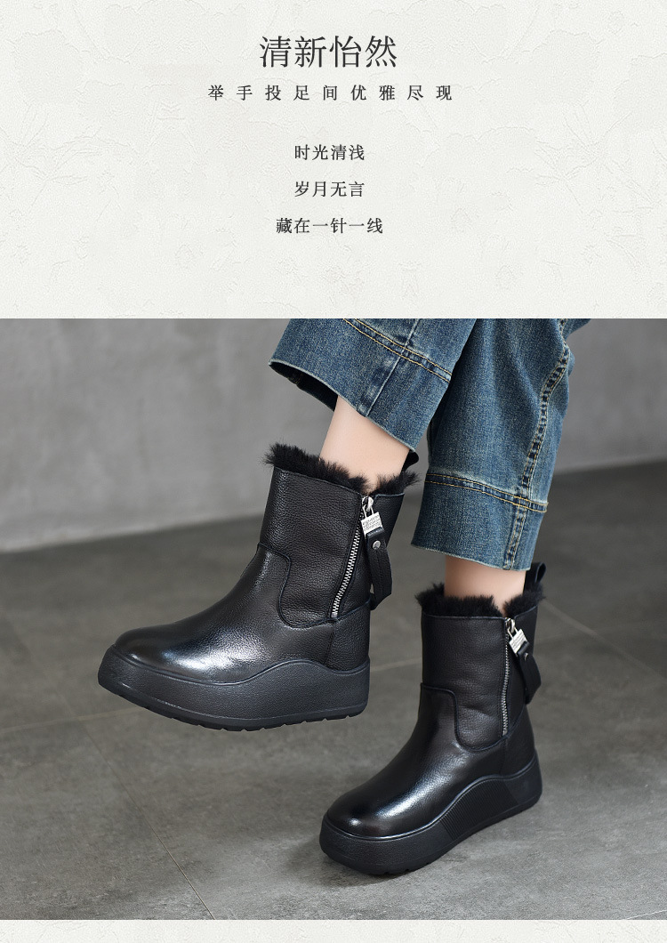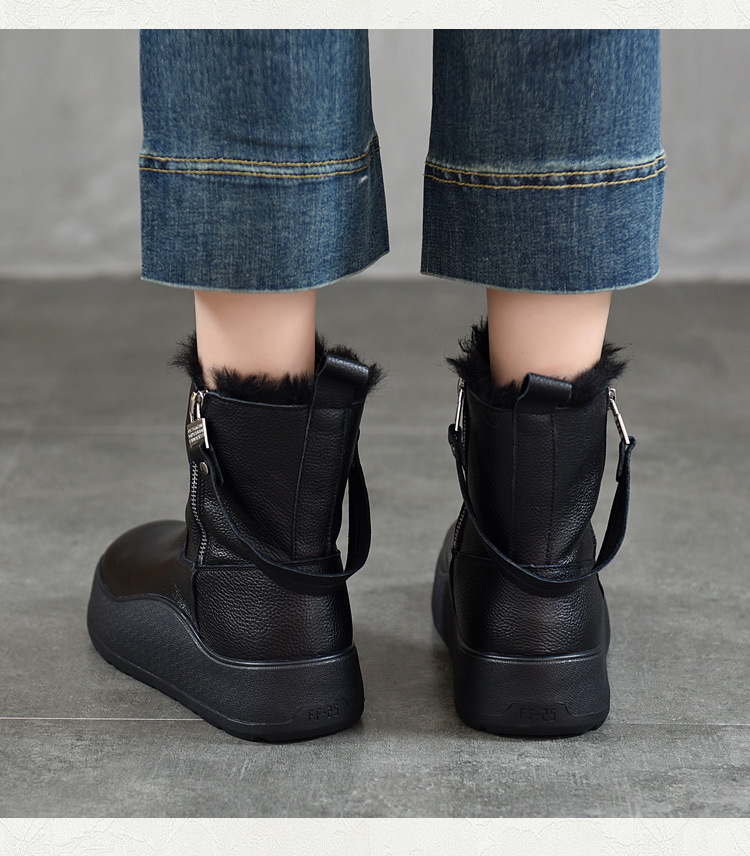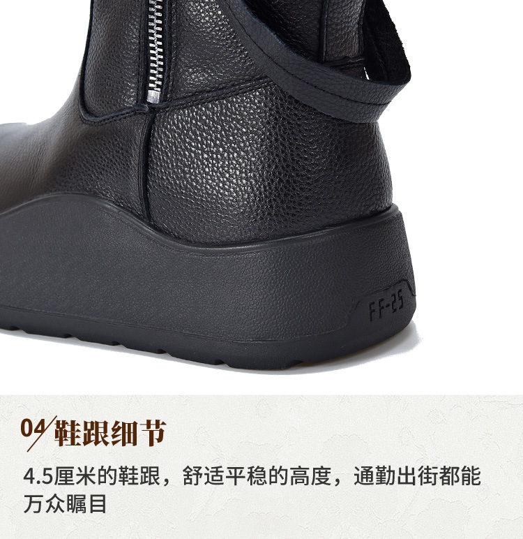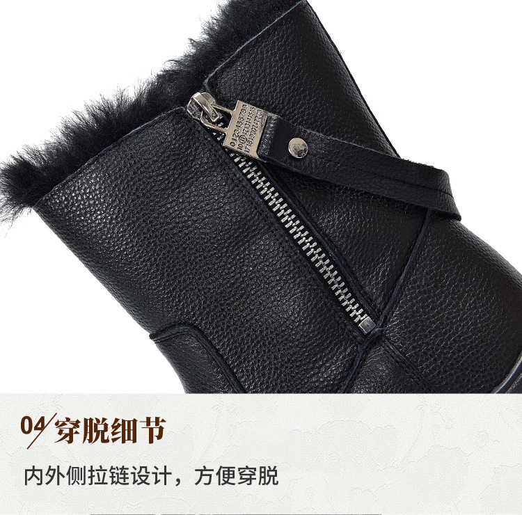 TN T876-68加厚雪地靴双拉链头层牛皮厚底短靴防滑加绒真皮靴 商品图3