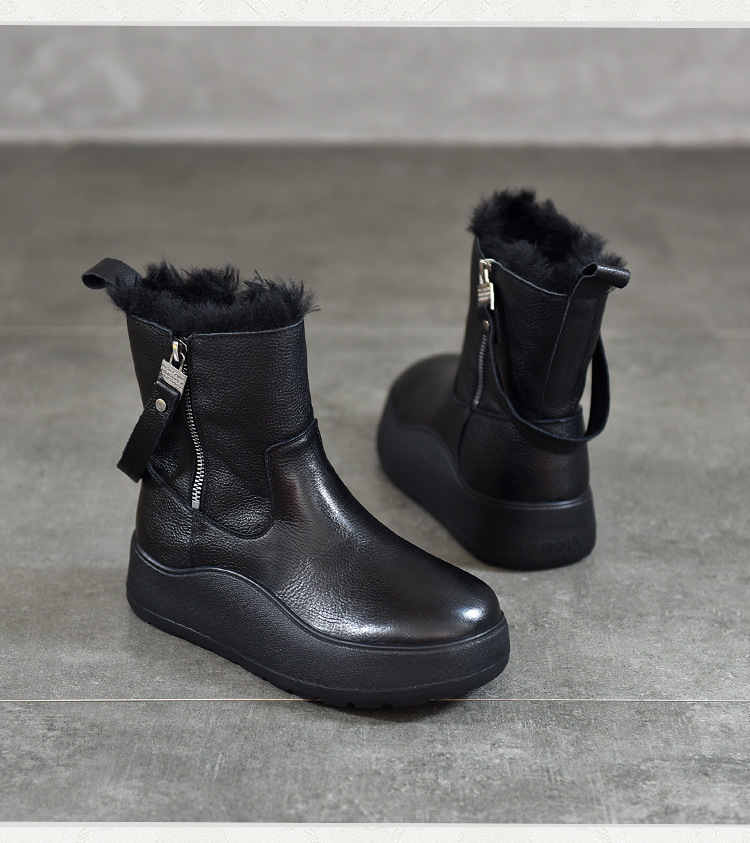 TN T876-68加厚雪地靴双拉链头层牛皮厚底短靴防滑加绒真皮靴 商品图0