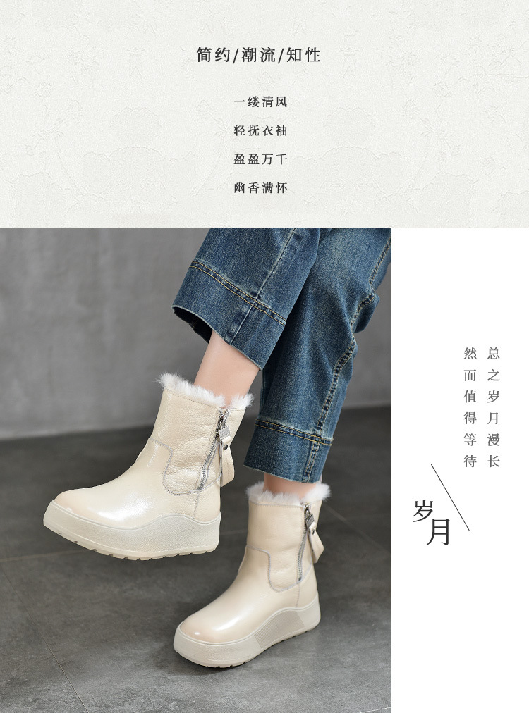 TN T876-68加厚雪地靴双拉链头层牛皮厚底短靴防滑加绒真皮靴 商品图2