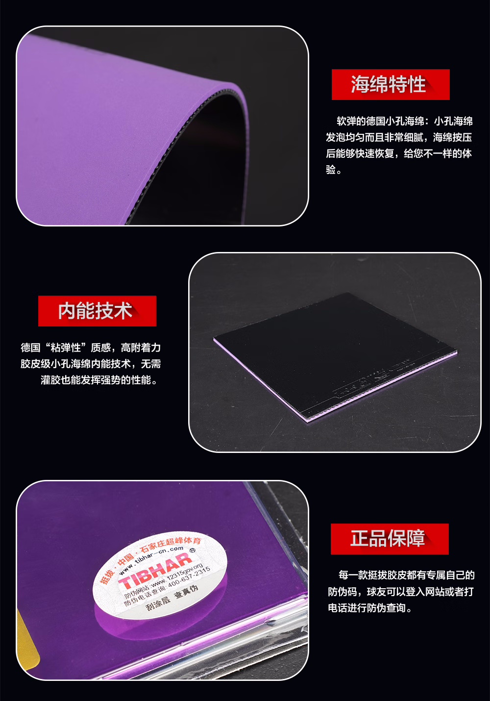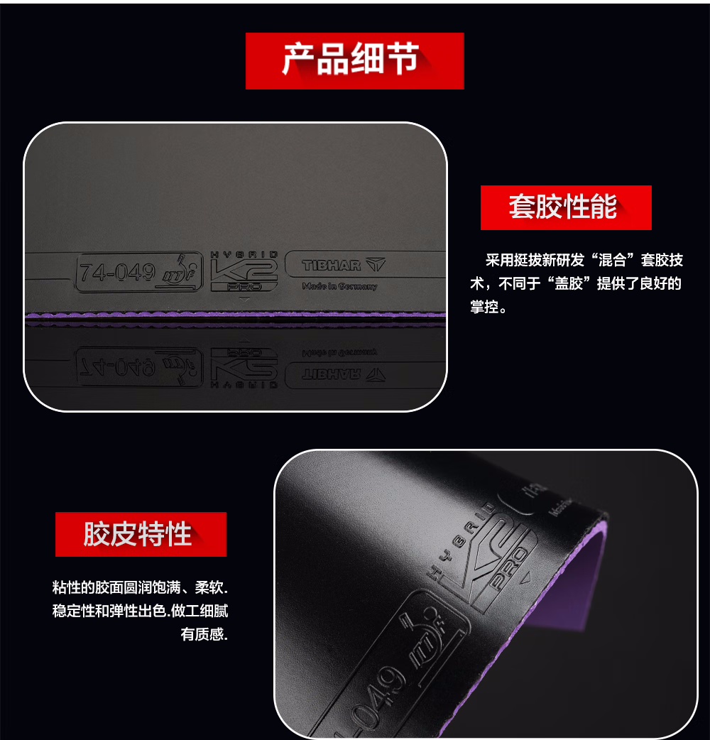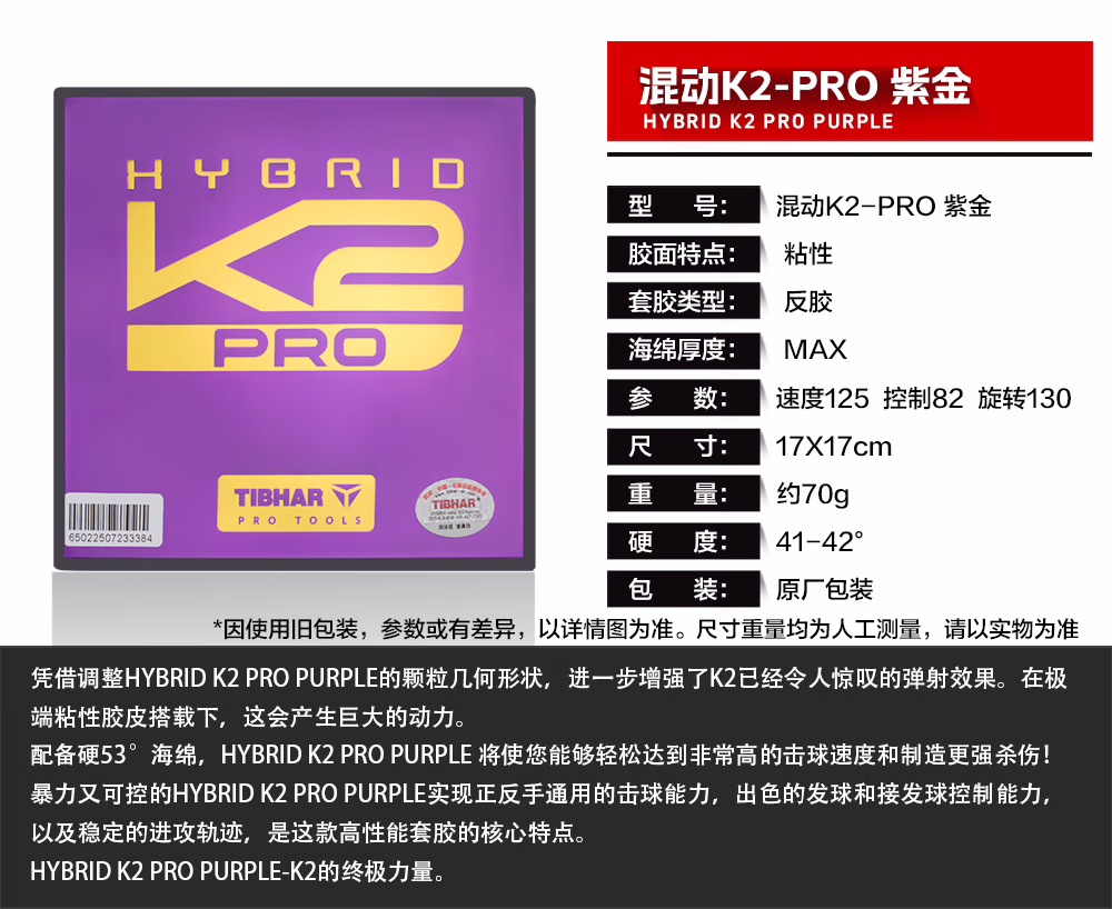 产品名称:Tibhar挺拔K2Pro紫金k2乒乓球胶皮专业粘性反胶套胶