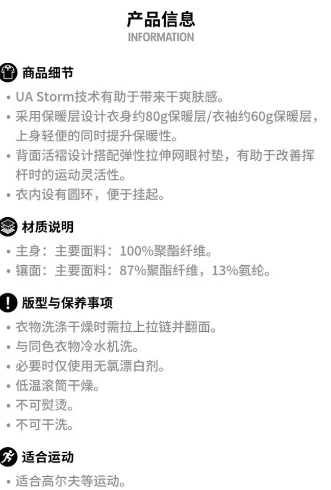 【12.13圣诞专享礼遇】 安德玛男士UA Storm Session高尔夫夹克 1378057-014