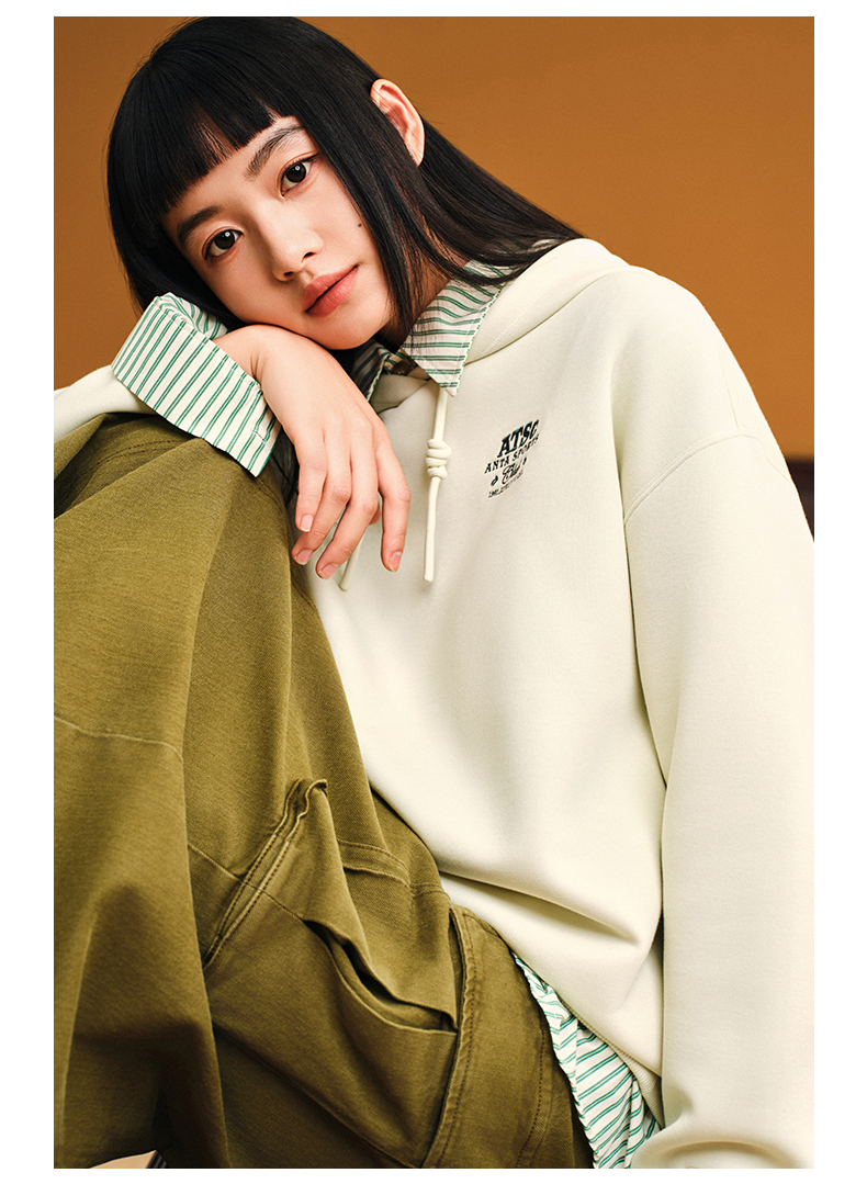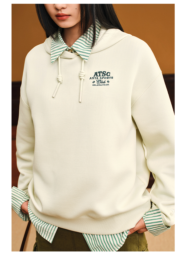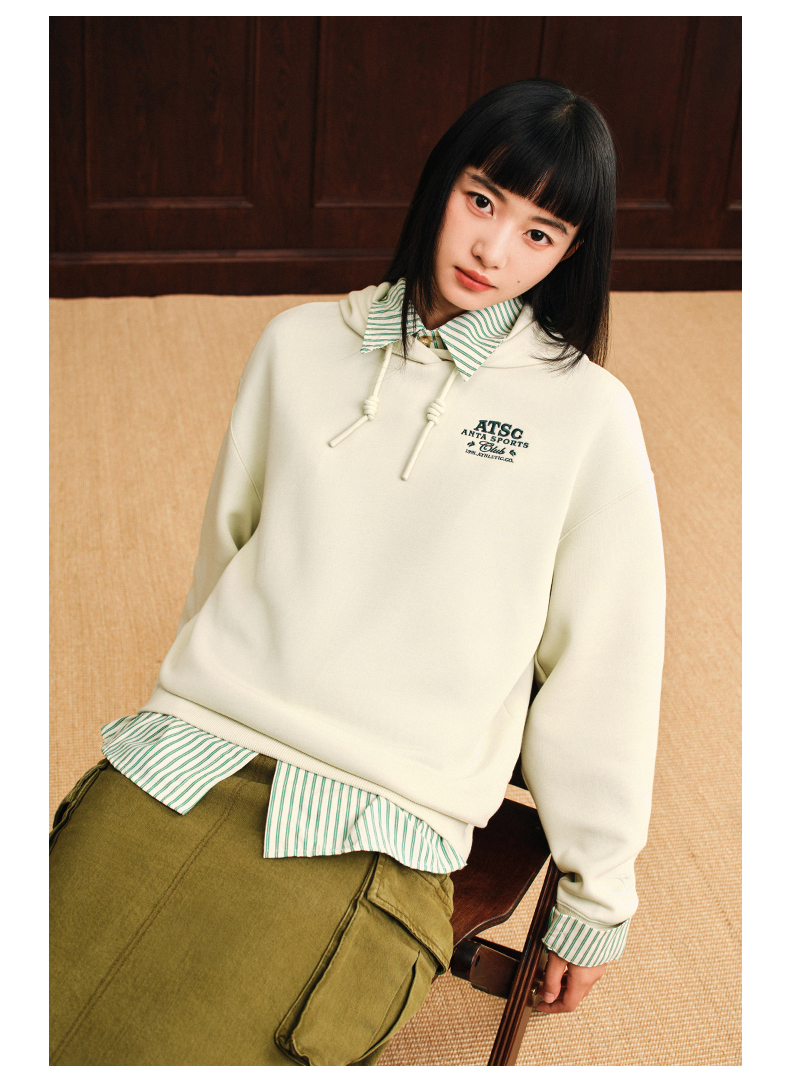 安踏休闲长袖卫衣女冬季新款刺绣印花宽松连帽运动上衣162538703
