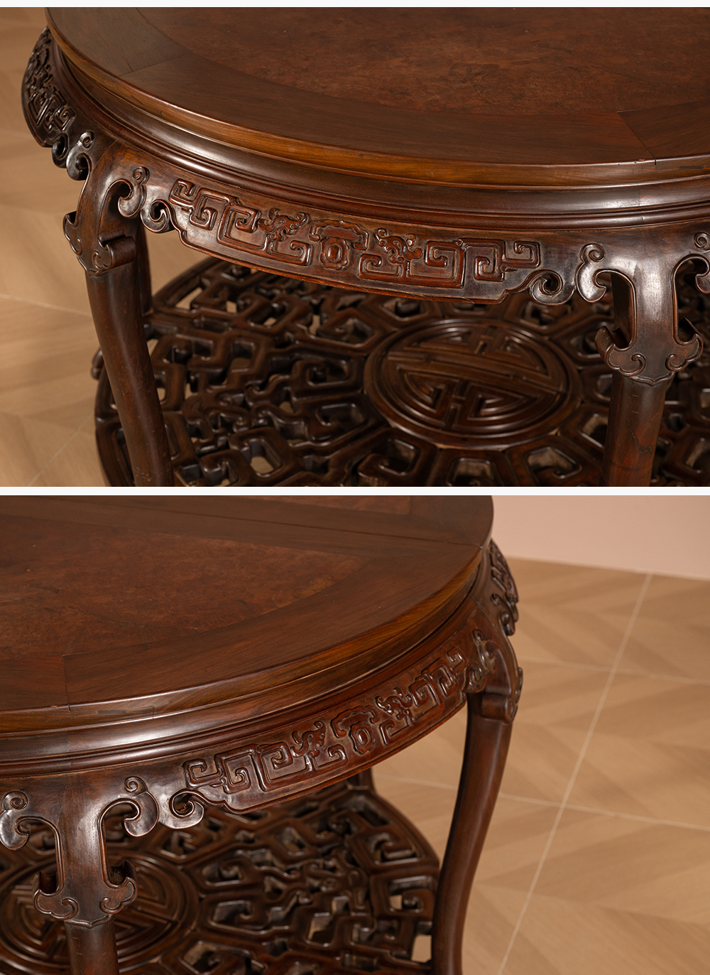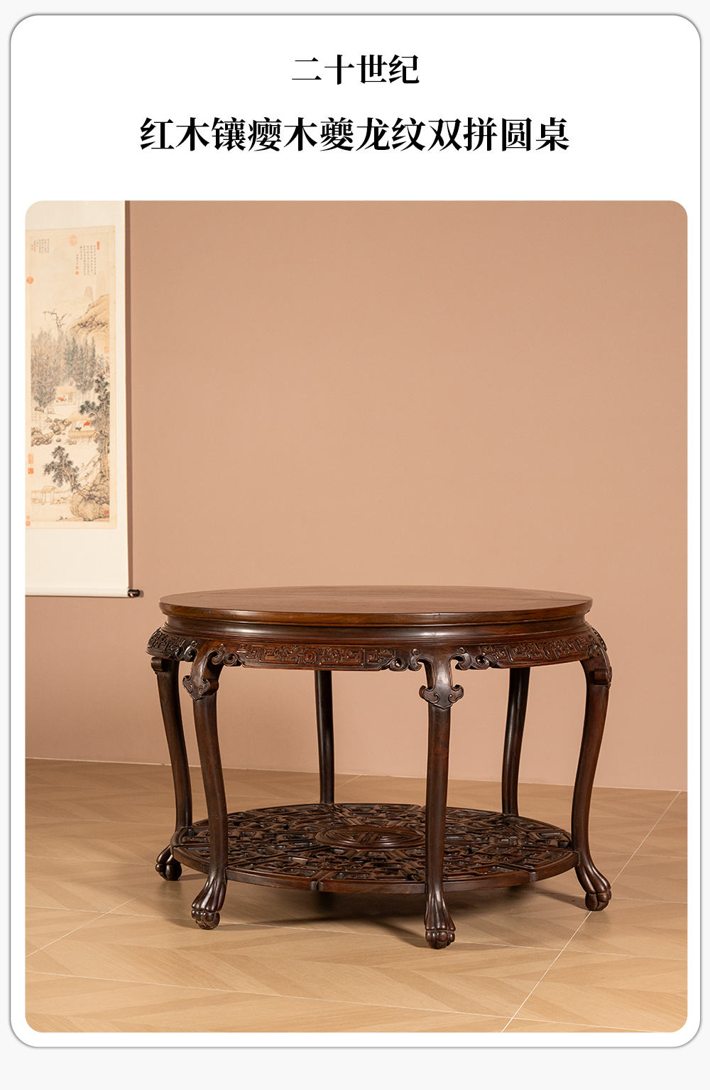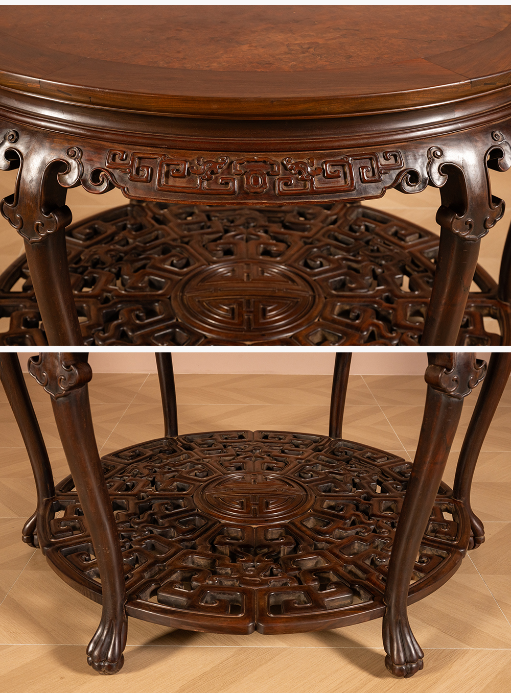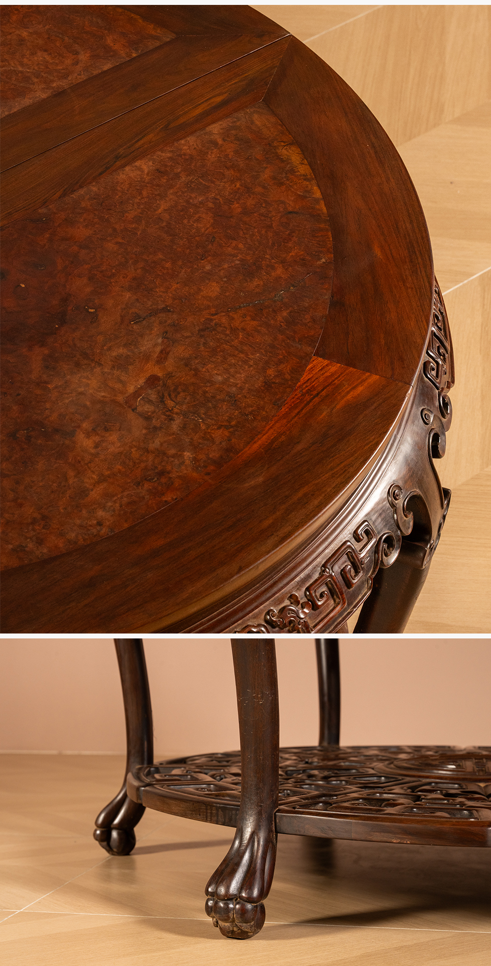 二十世纪 红木镶瘿木夔龙纹双拼圆桌