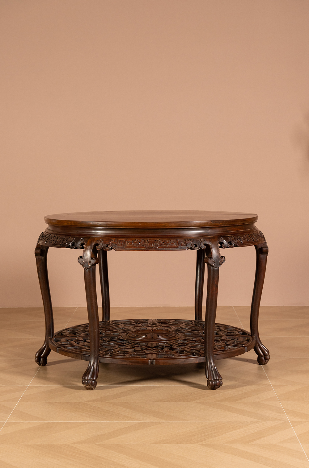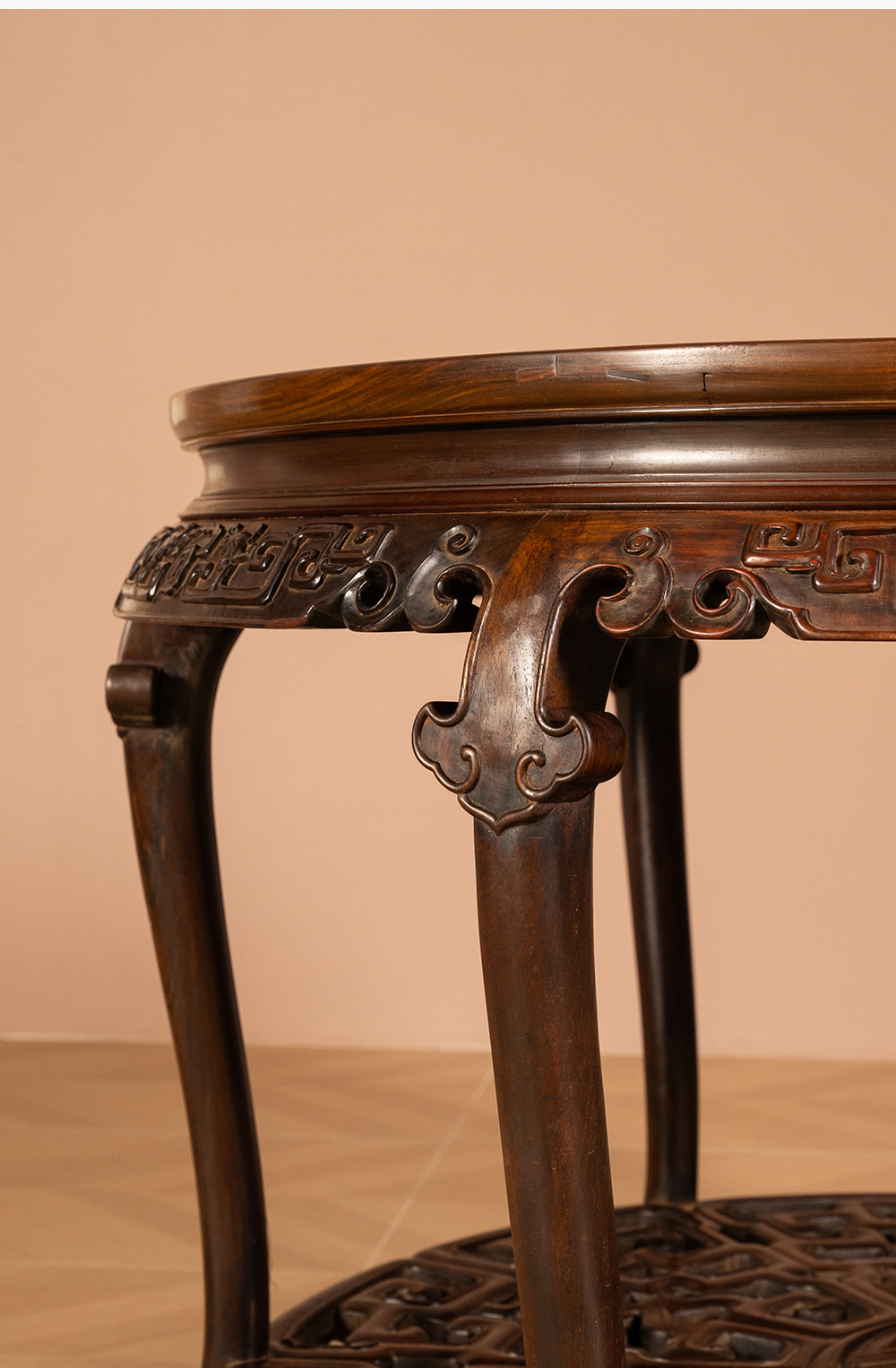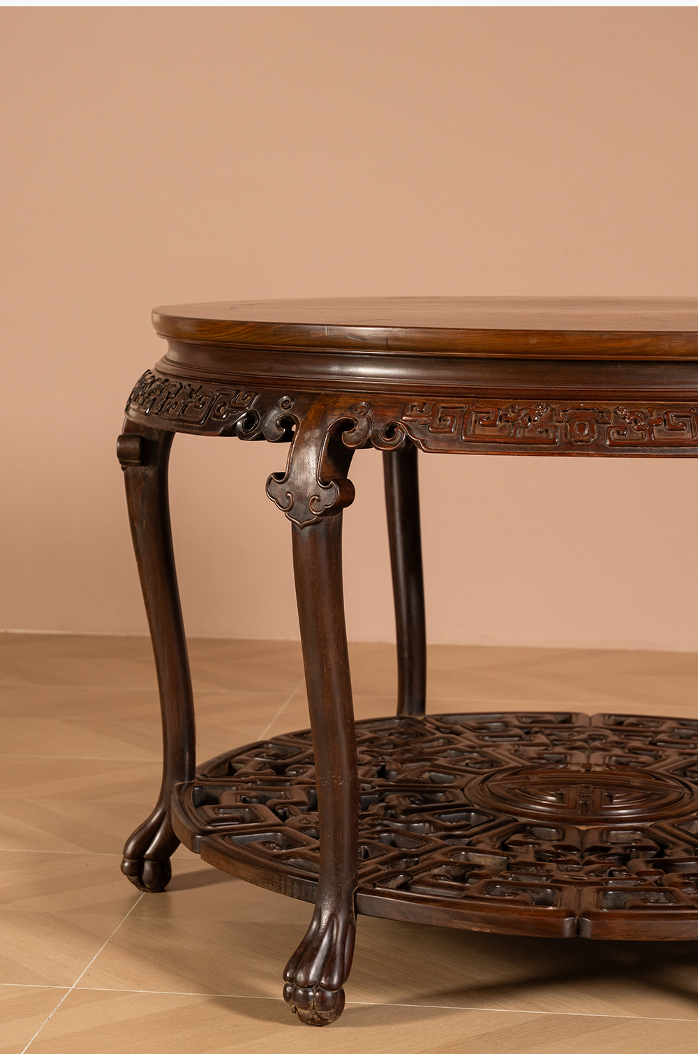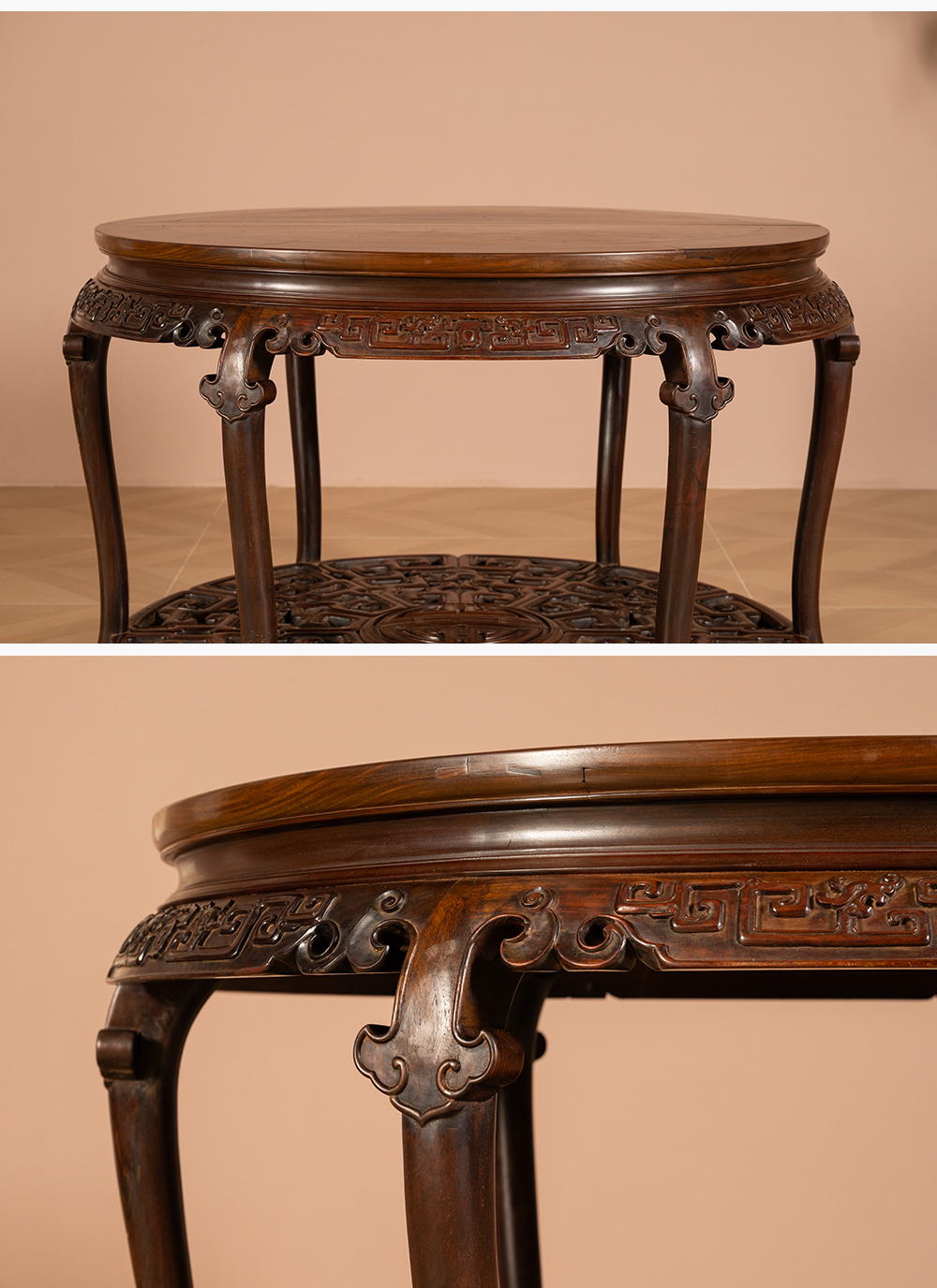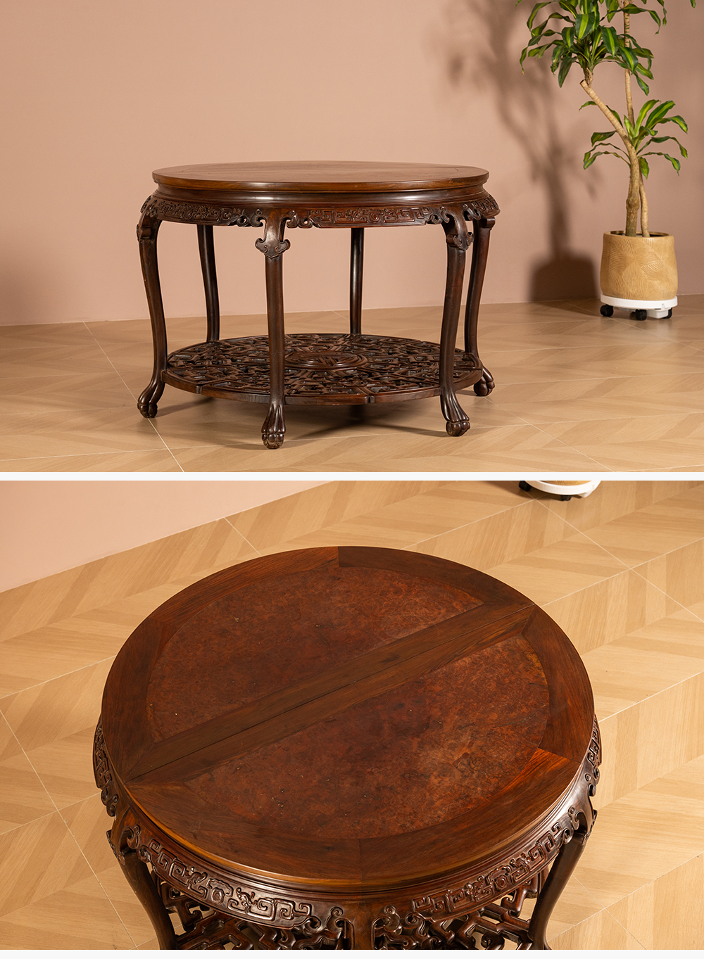 二十世纪 红木镶瘿木夔龙纹双拼圆桌