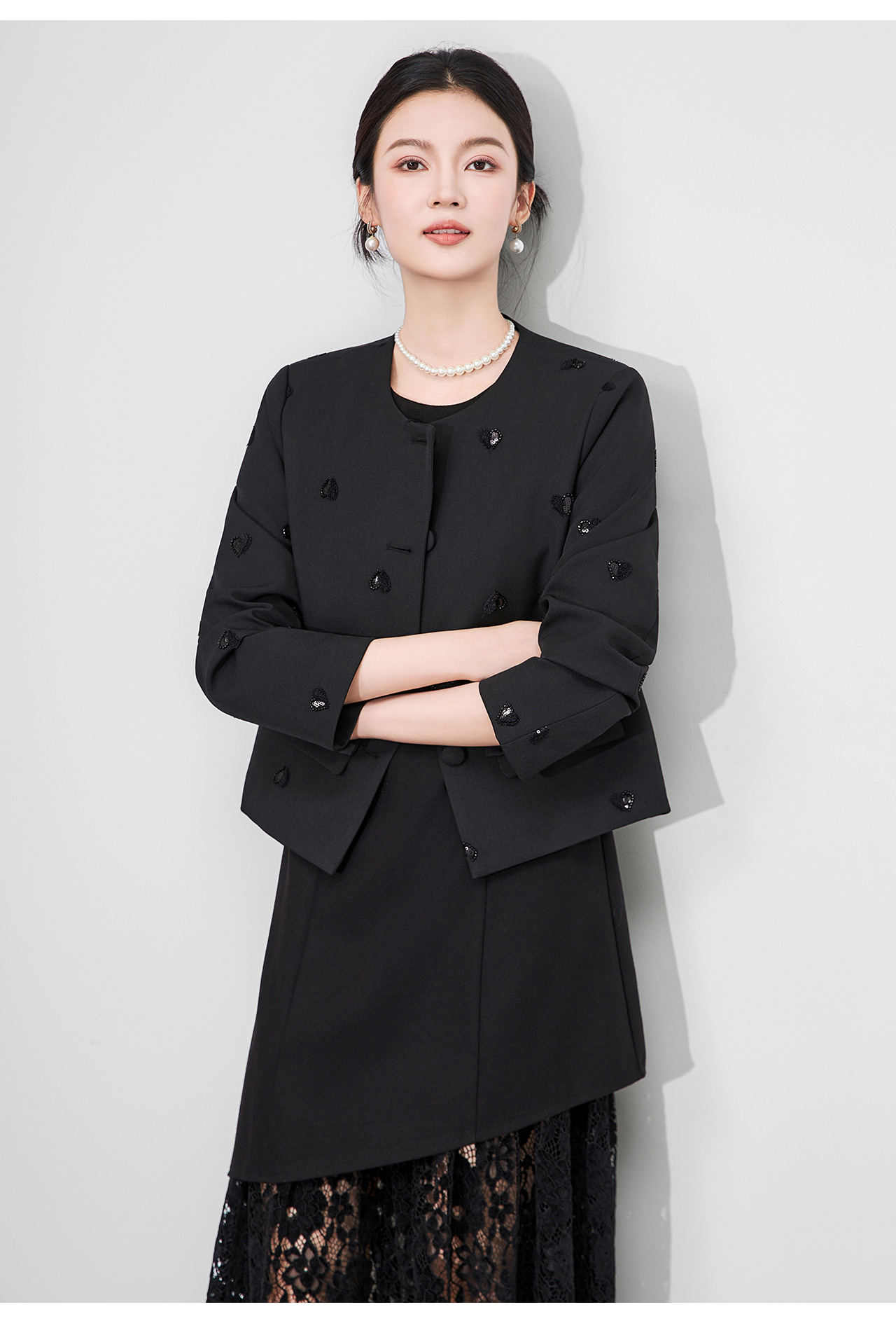 「高货wl」全新升级【铂金会员330/天猫439/差价109】(61342)(61342)洛诗琳轻奢重工钉珠外套2025秋冬法式名媛小香风短款外套wl61342