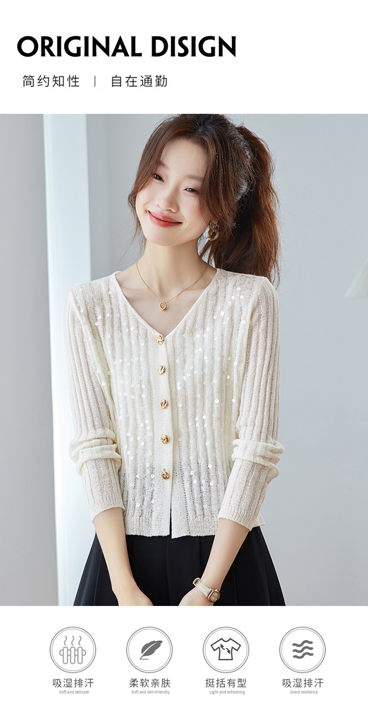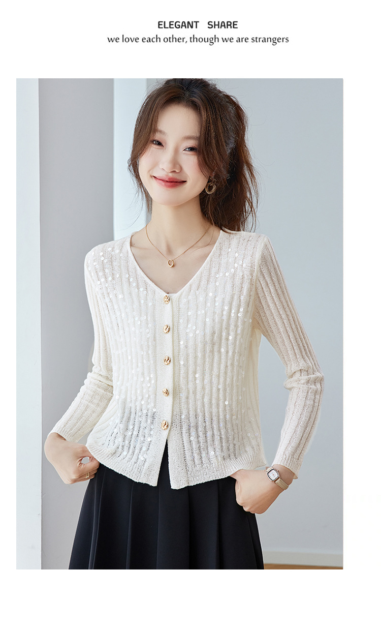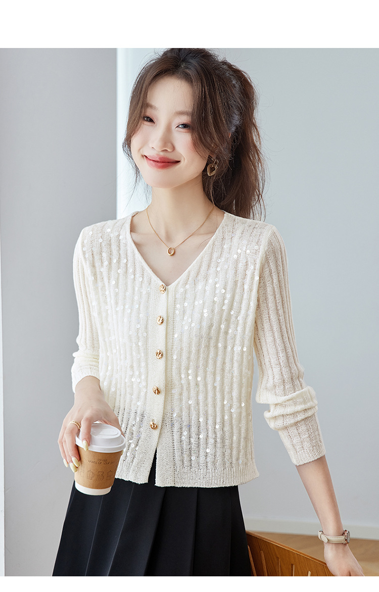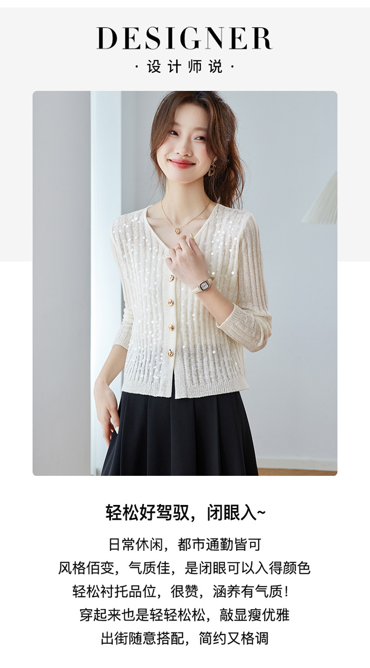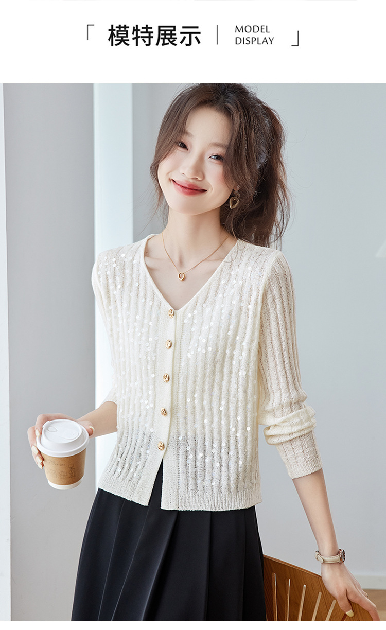 CC2025早秋新款高级感轻奢名媛风亮片V领针织开衫女薄款外套上衣