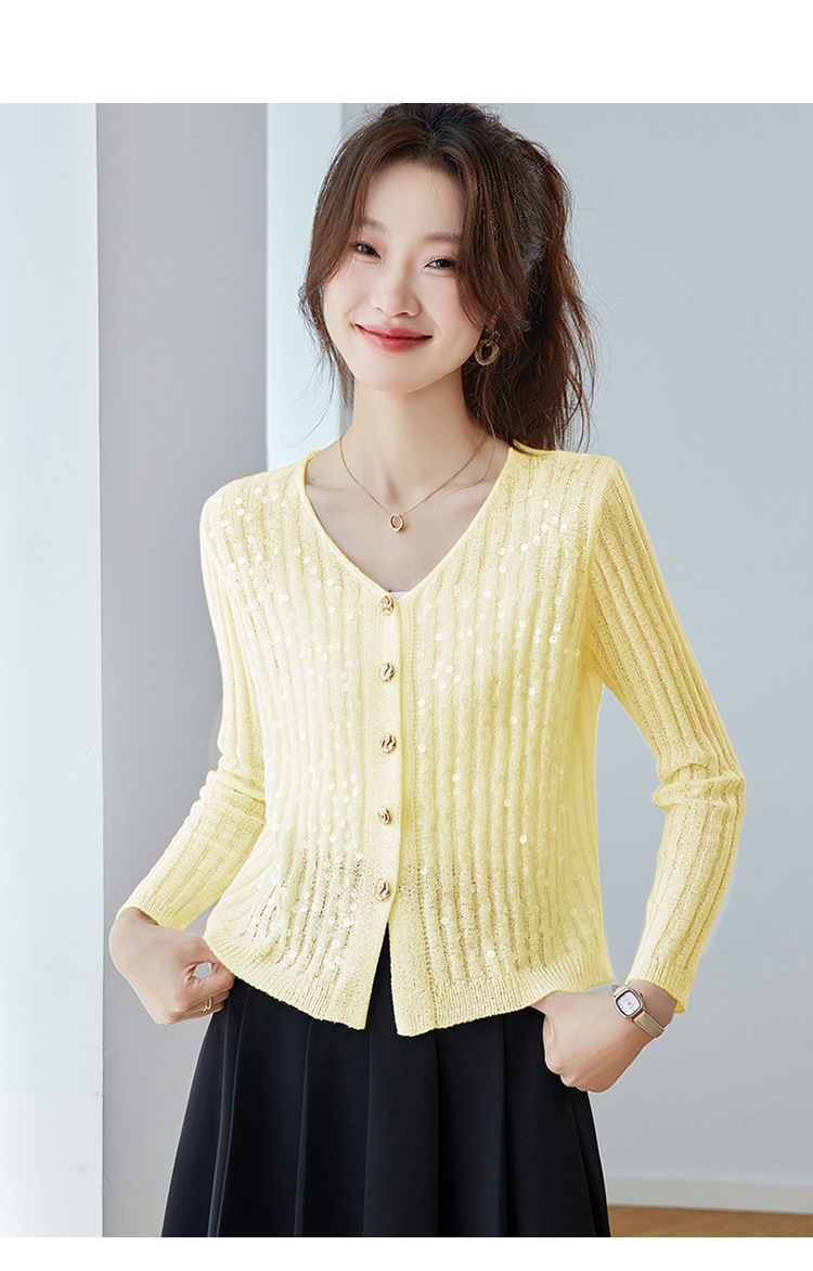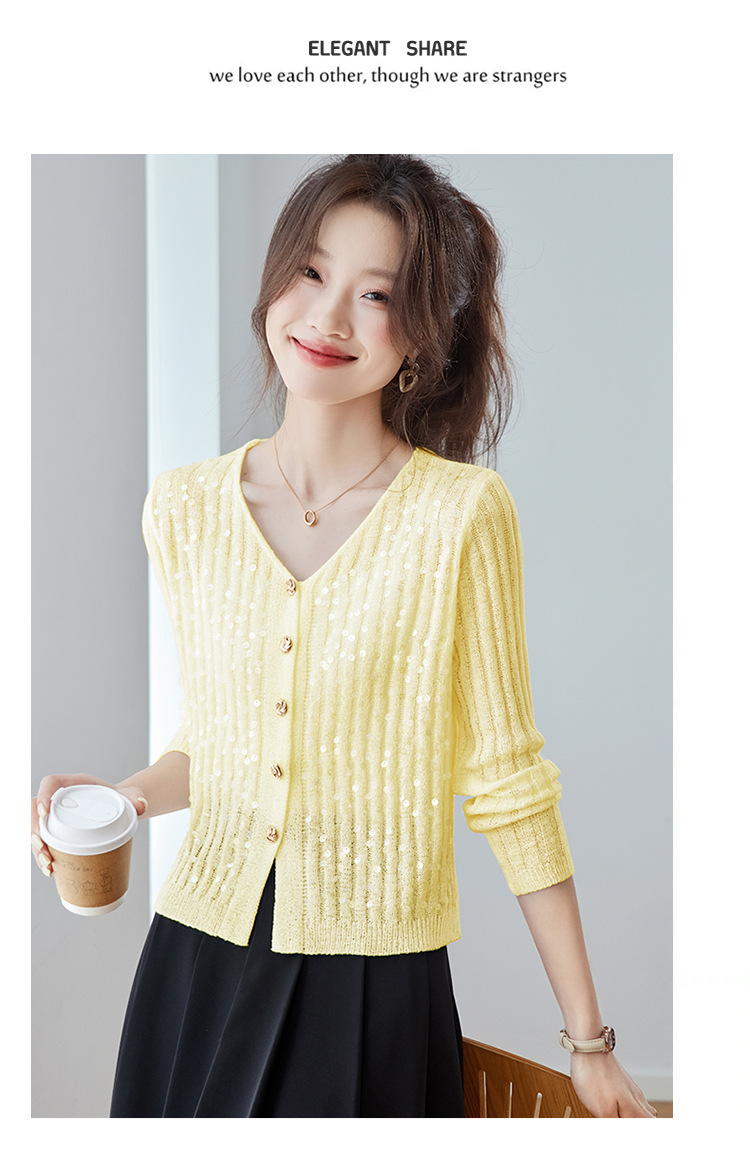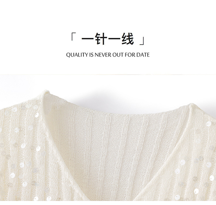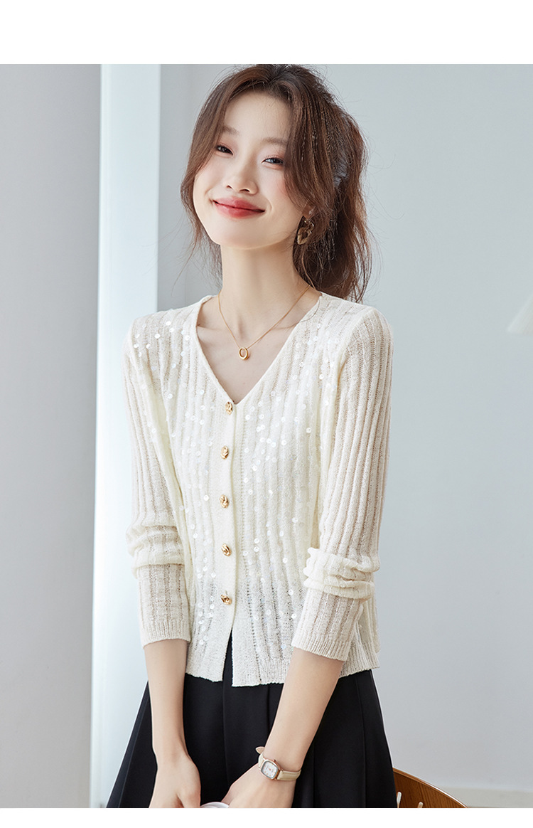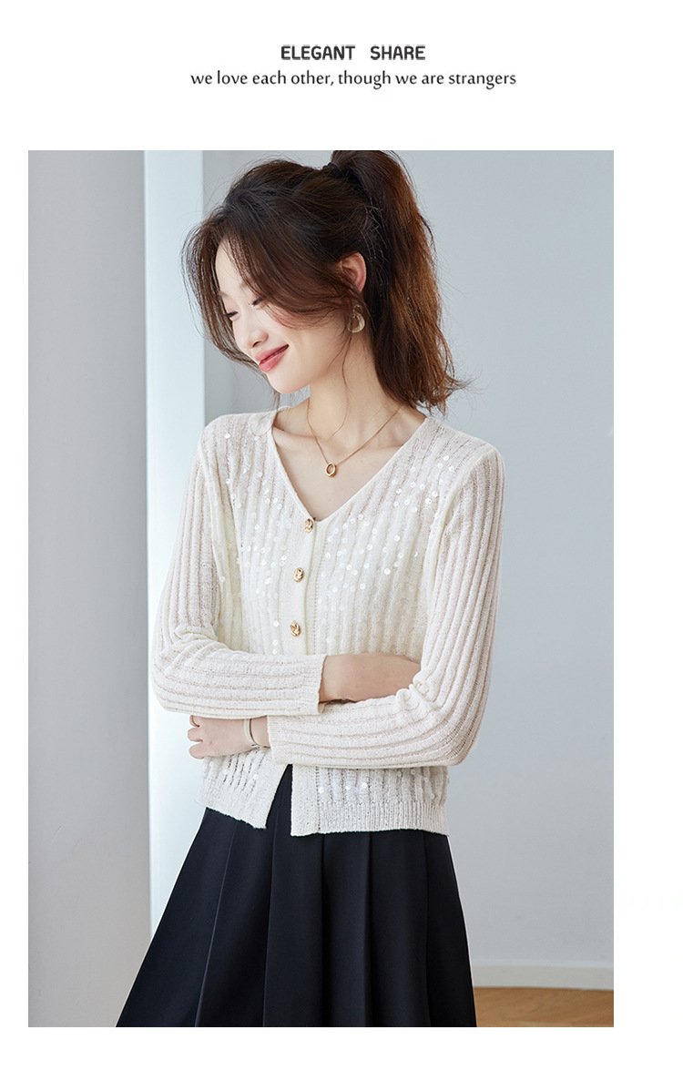 CC2025早秋新款高级感轻奢名媛风亮片V领针织开衫女薄款外套上衣