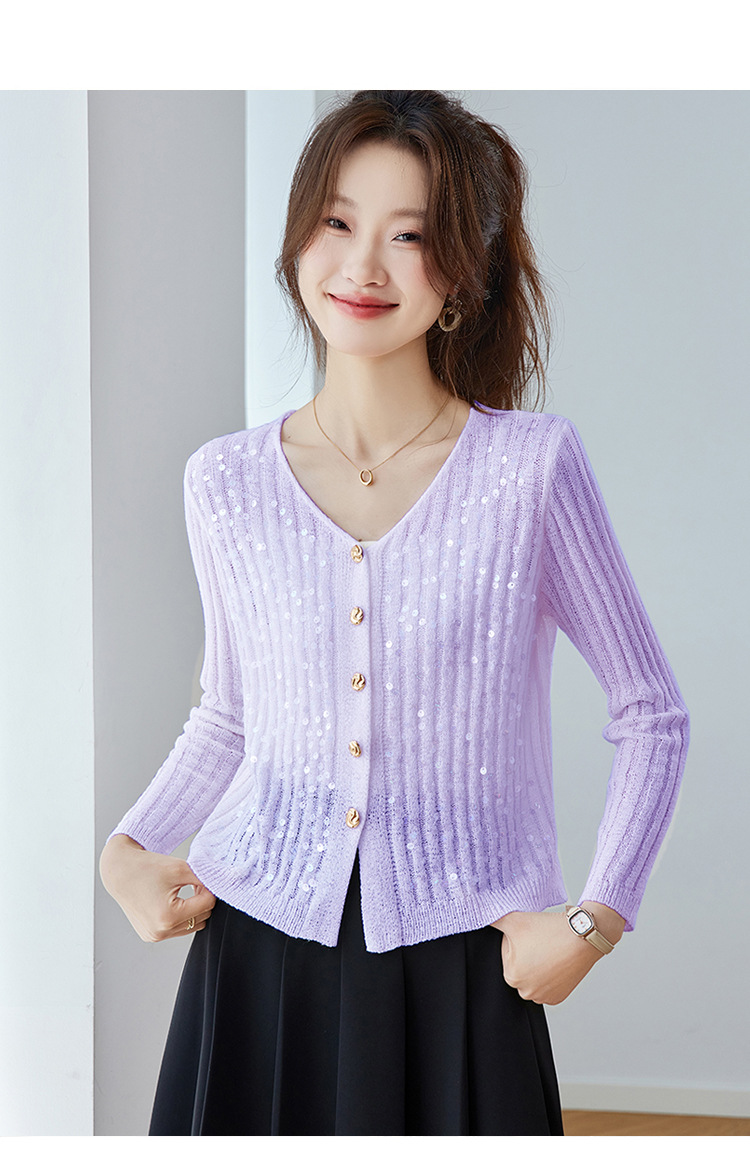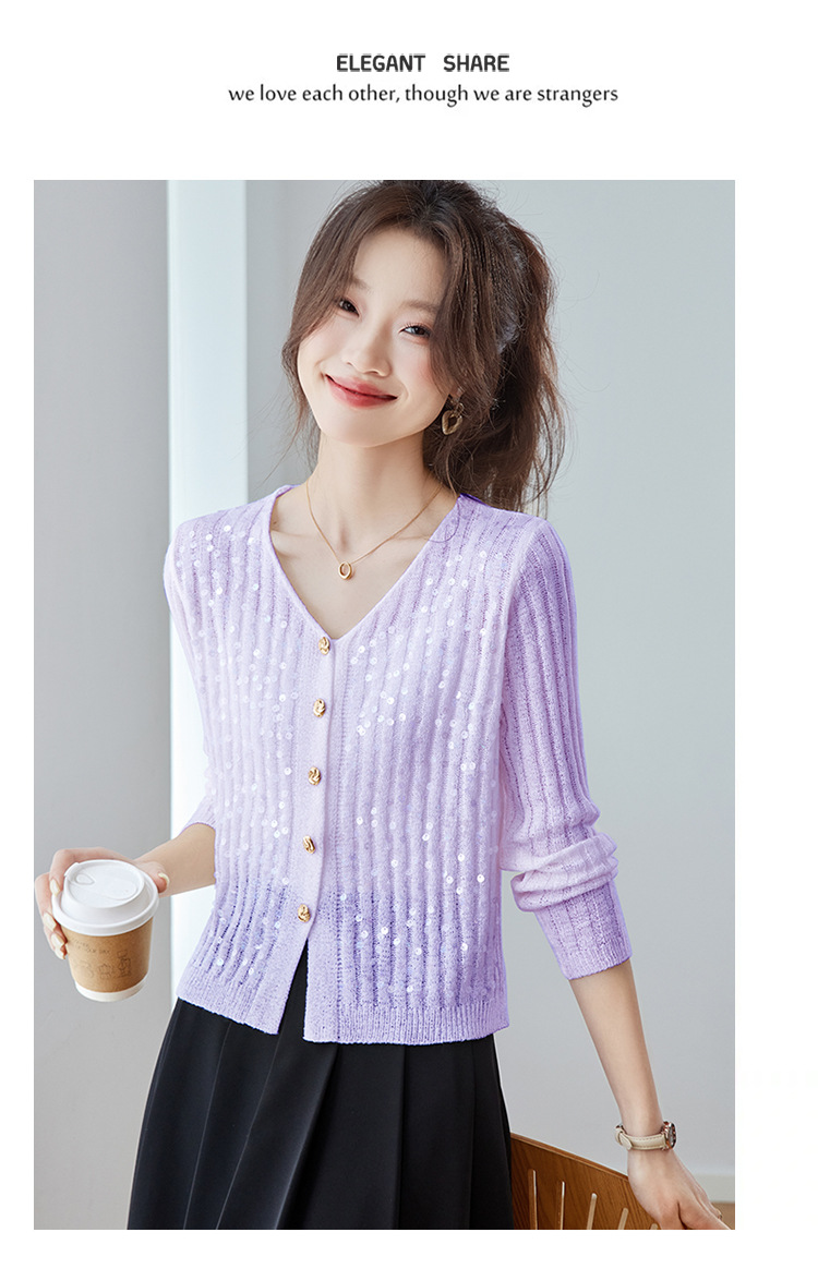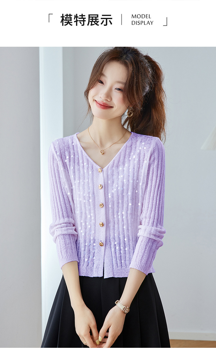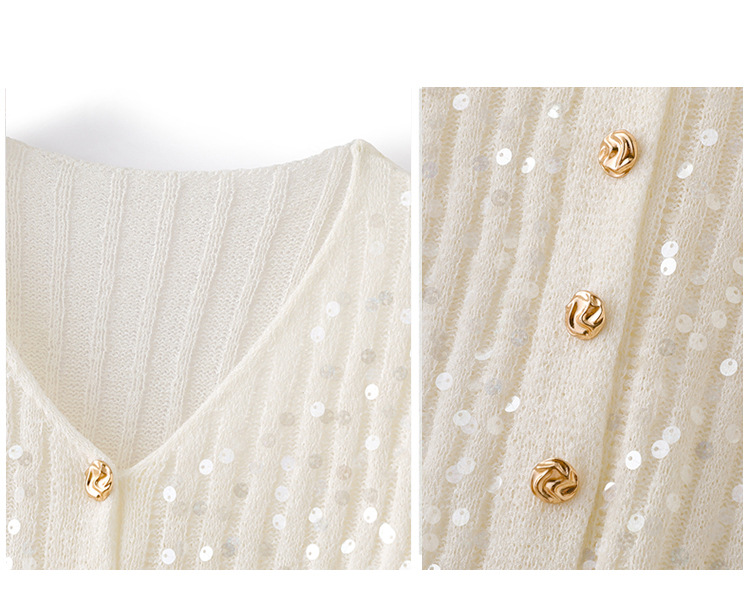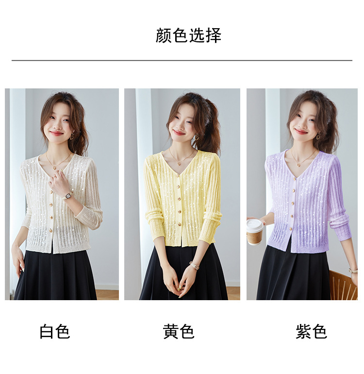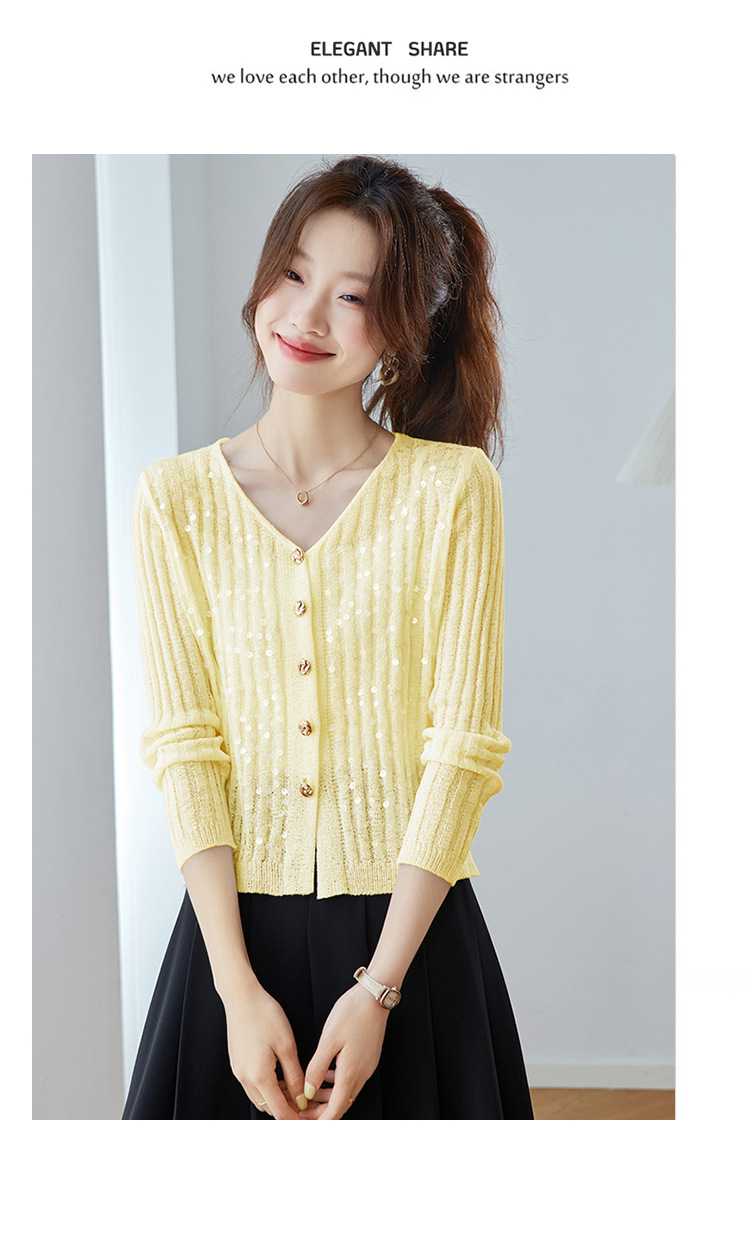 CC2025早秋新款高级感轻奢名媛风亮片V领针织开衫女薄款外套上衣