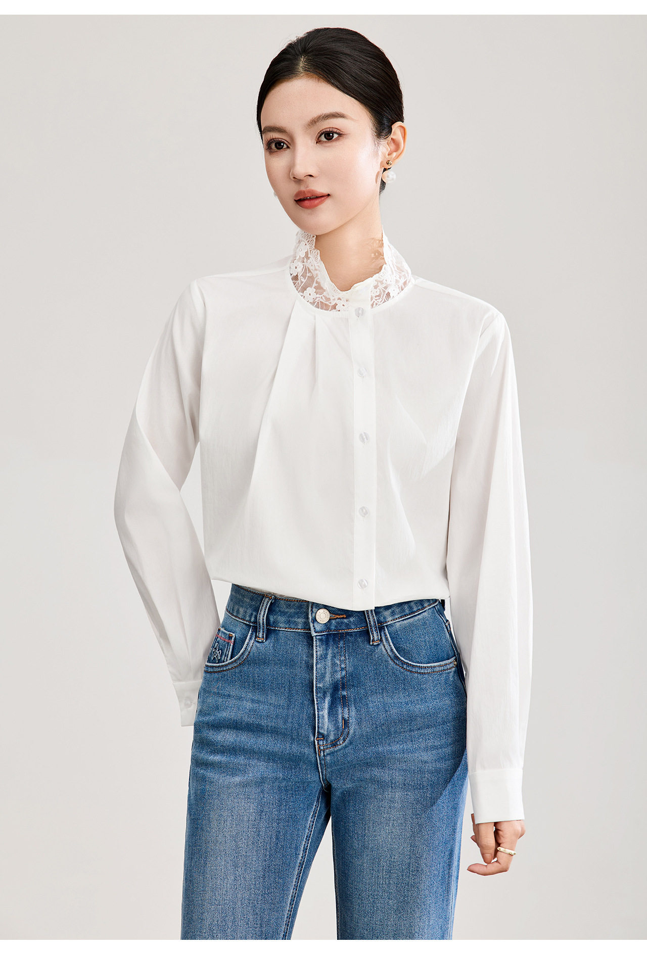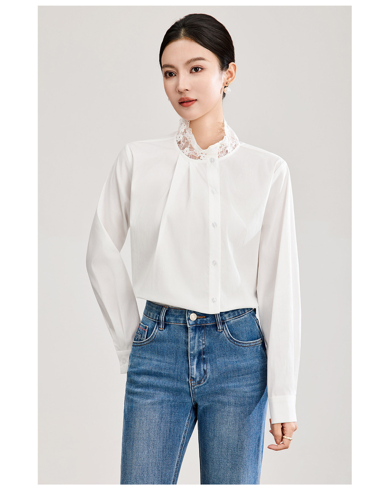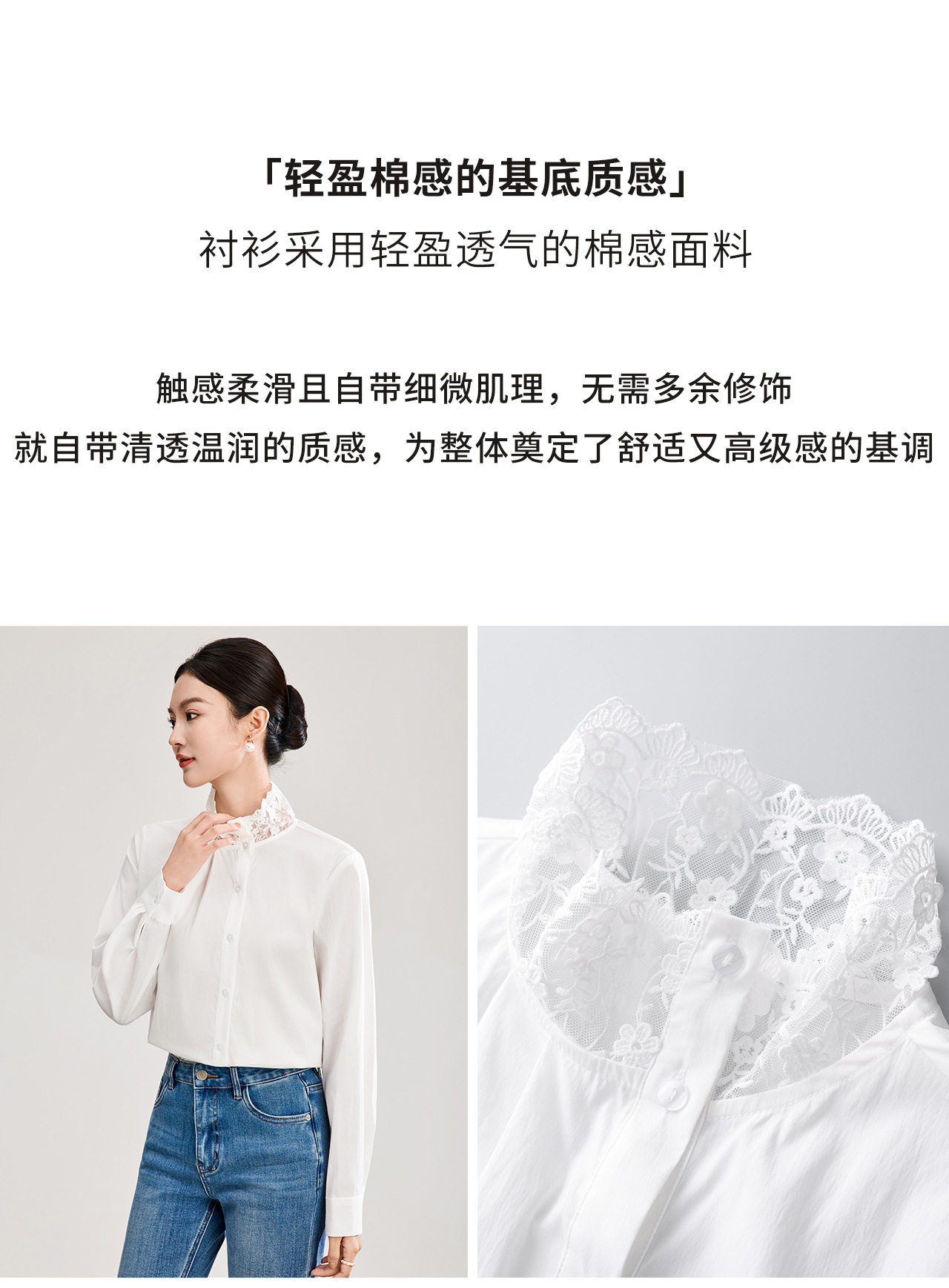 「高货wl」全新升级【铂金会员266/天猫359/差价93】(03252)洛诗琳法式复古蕾丝花边领上衣2026春季新款通勤百搭衬衫