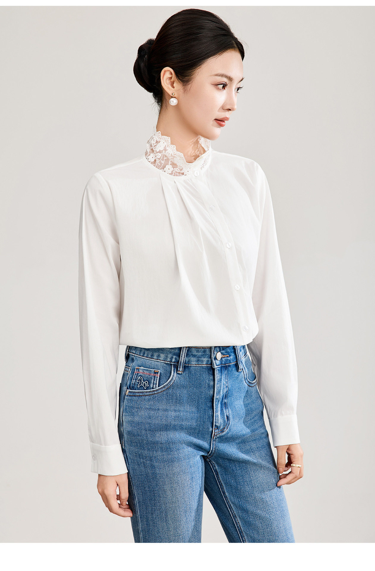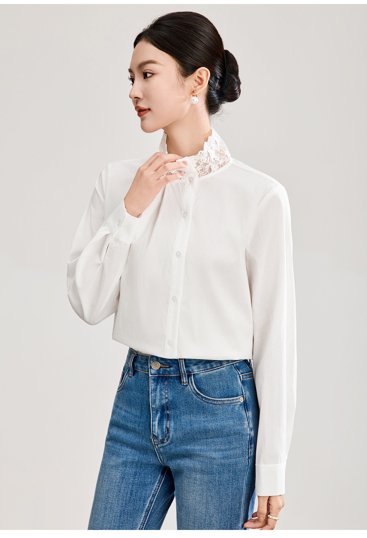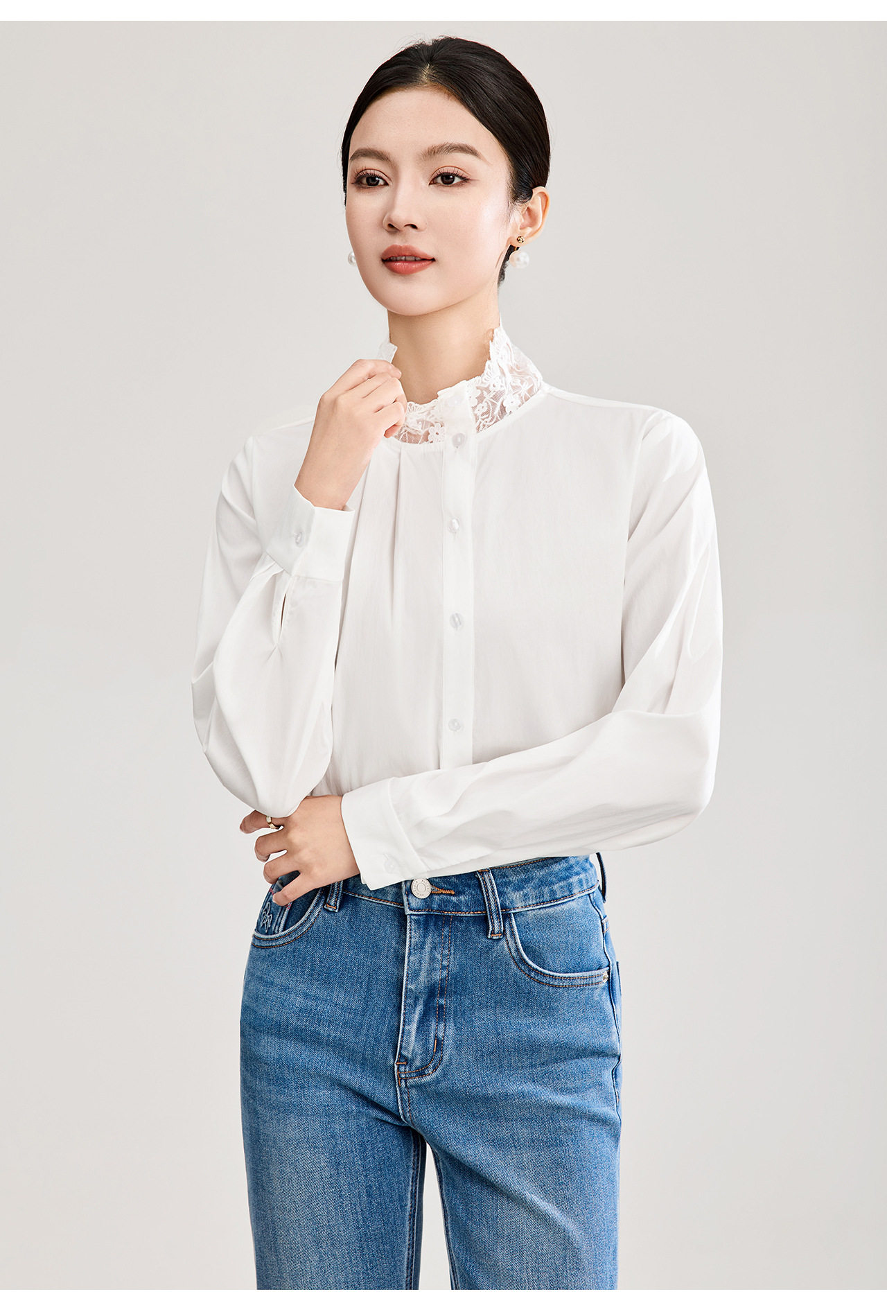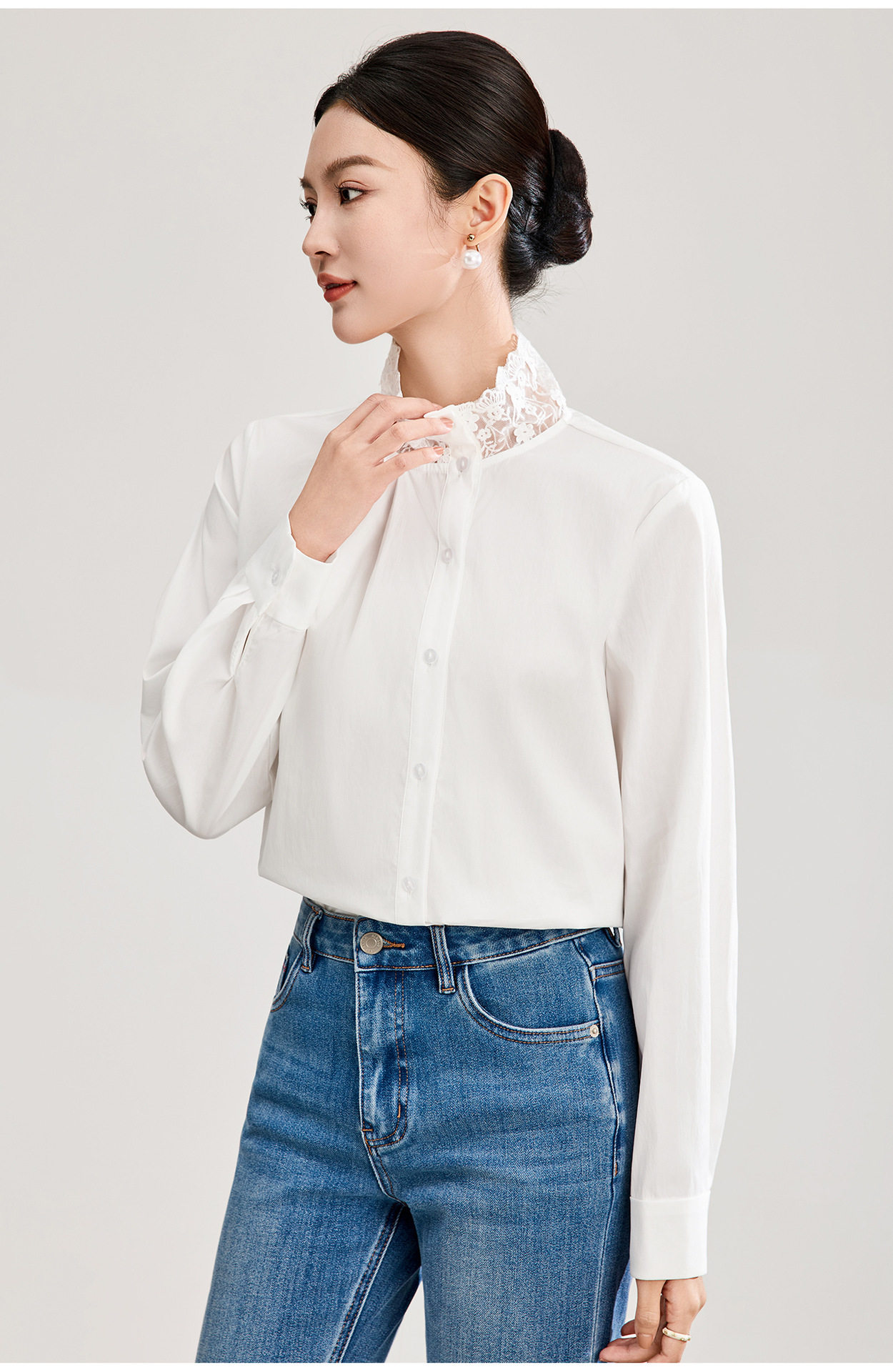 「高货wl」全新升级【铂金会员266/天猫359/差价93】(03252)洛诗琳法式复古蕾丝花边领上衣2026春季新款通勤百搭衬衫