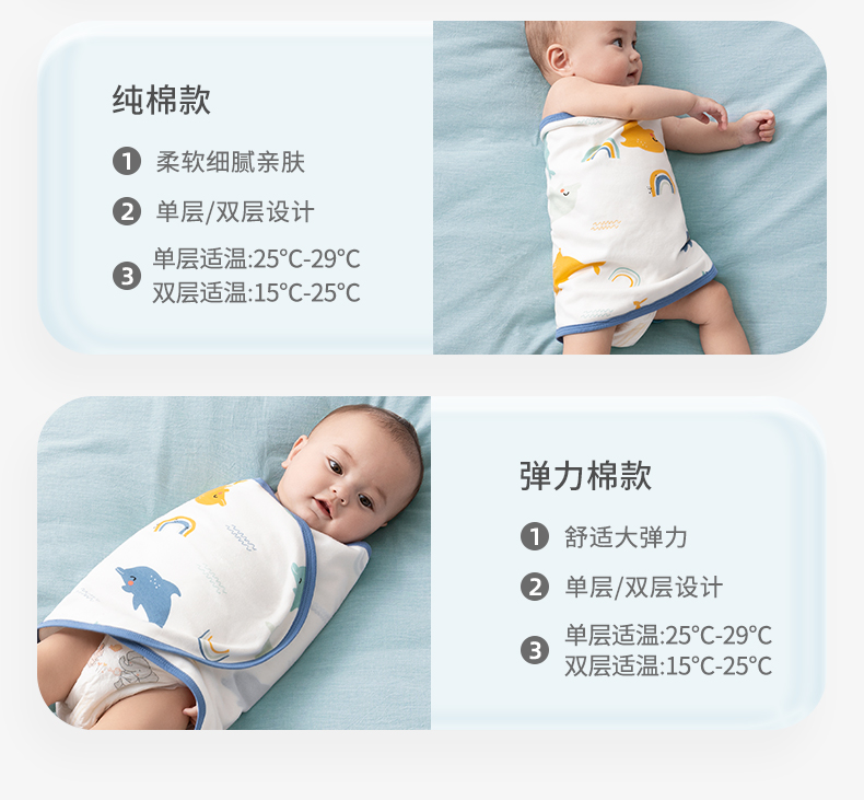 【孕味秒杀专属】贝肽斯婴儿防惊跳睡袋包巾春夏新生儿襁褓包被宝宝防惊吓睡觉神器