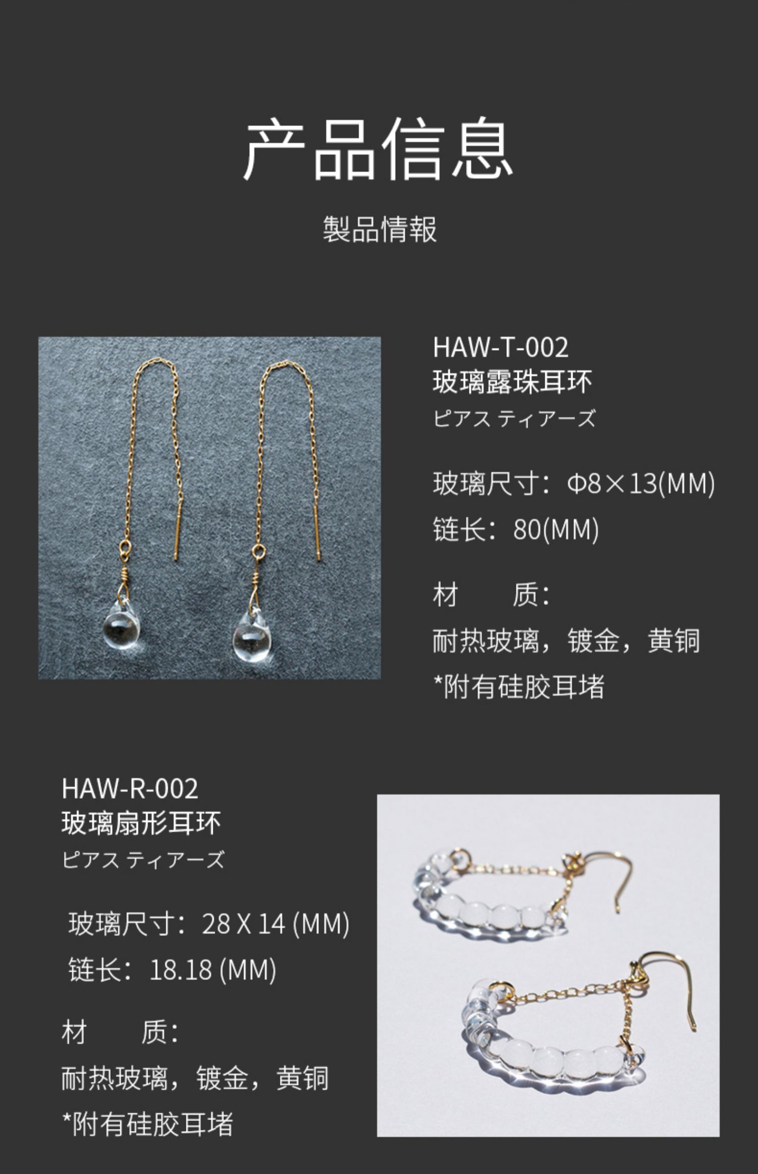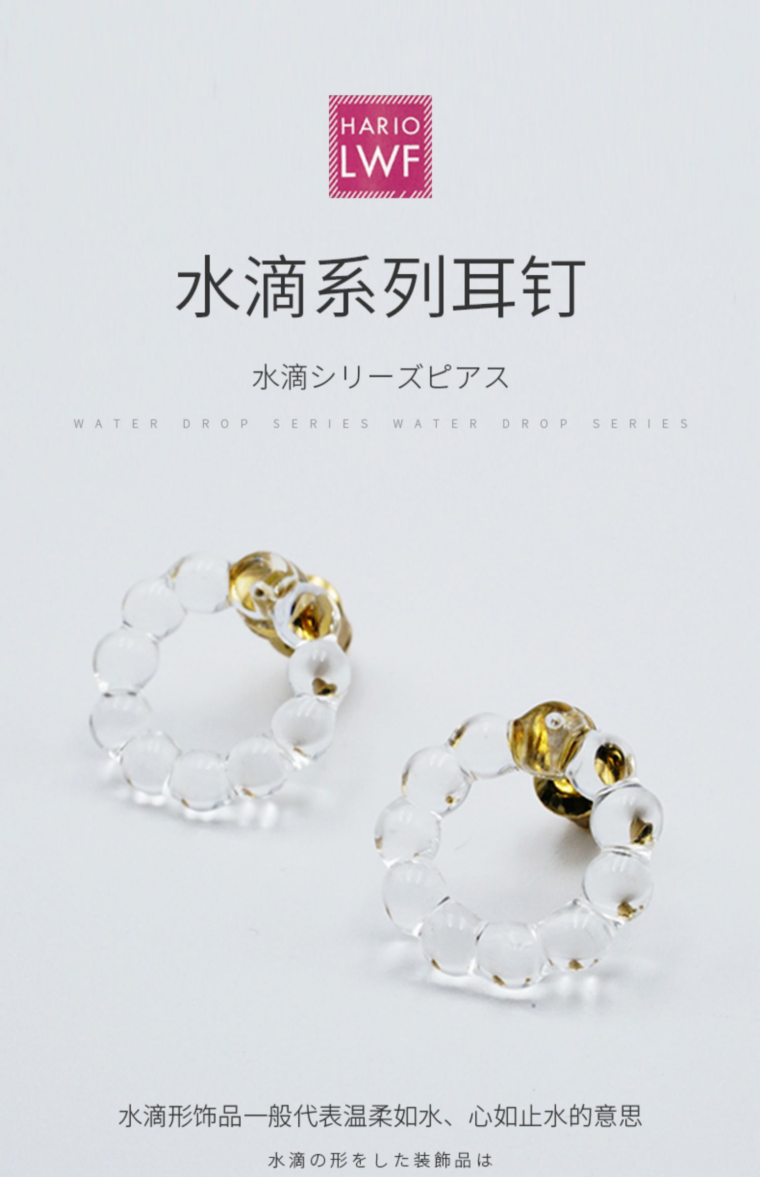 【HARIO】圆形玻璃球耳饰水滴系列耳钉HAW