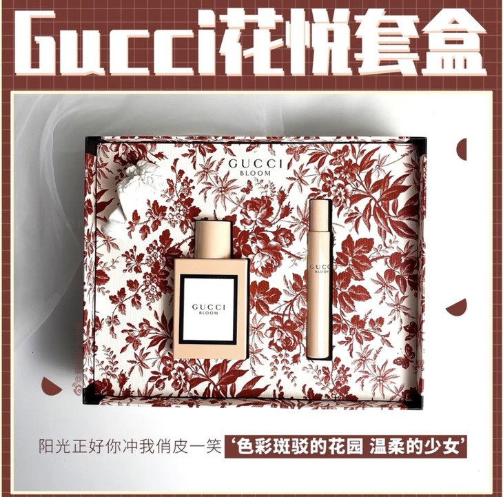 Gucci繁花浓香水二件套(香水50ML+旅行装7.4ml)👍约会的小心机香水,高颜值斩男香⚡。“梦回一望无际的茉莉,微风轻拂阳光正好,你冲我俏皮一笑”很好的诠释了香水的感觉。方瓶藕粉色漆瓷瓶简约又复古😍,混合天然茉莉,夜来香,鸢尾花,金银花,使君子,少女和花海梦幻般唯美,喷上它自己像是置身于花海的花仙子💐,宝藏一样的存在。