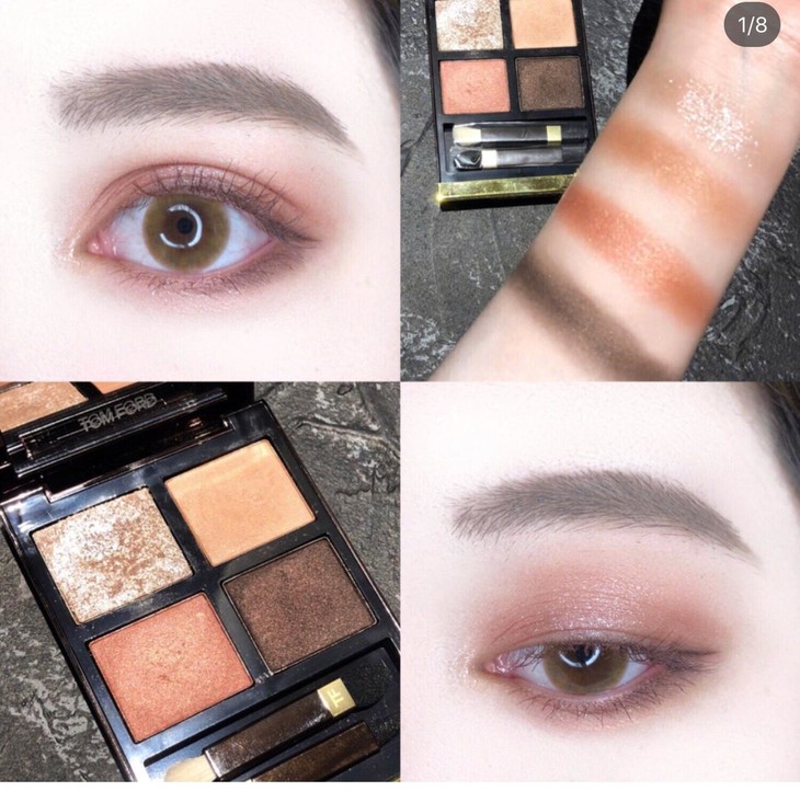 TF四色眼影20號,🎈disco dust,tf最有名最溫柔的一盤眼影。🔥火到沒天理,基本彩妝愛好者人手一盤,粉質十分細膩,🌸非常好看的蜜桃色,這個顏色上眼真的很驚喜,不會誇張同時又不會過於低調,✨再上一點左上的亮片色,完美!💃🏻