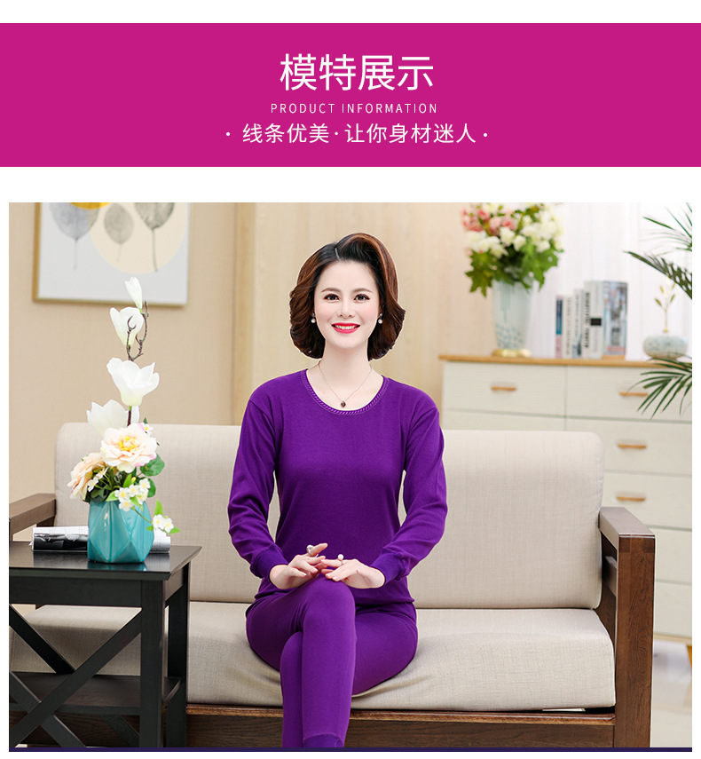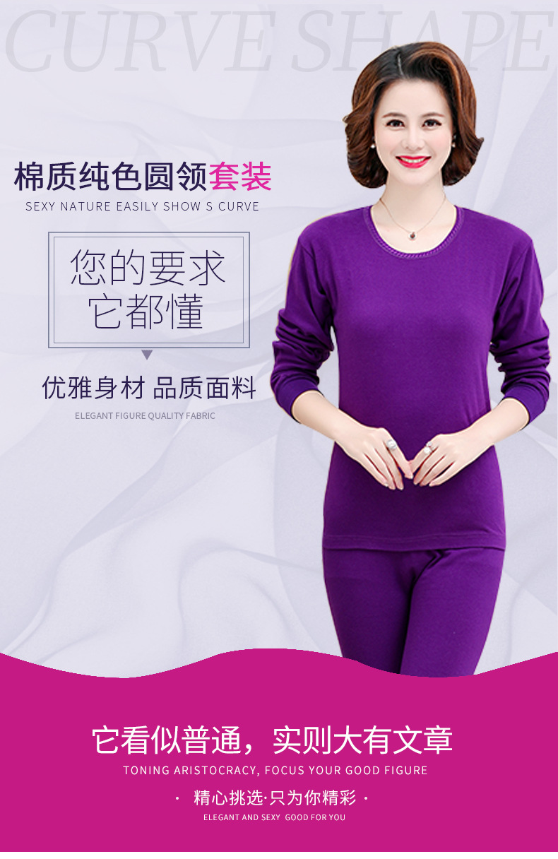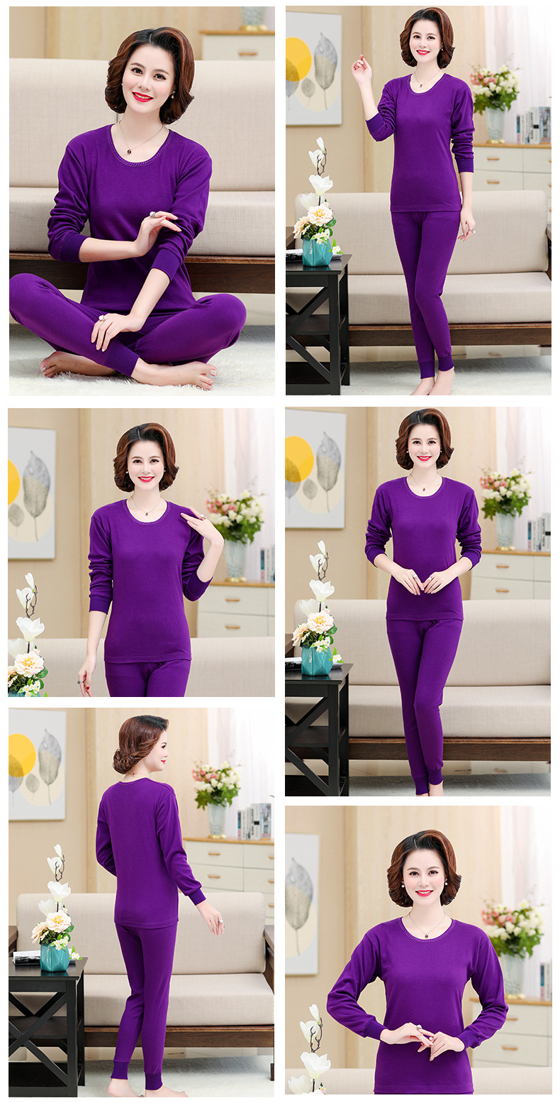 YQ-7011AB深紫保暖内衣 女士高低领棉质舒适居家套装