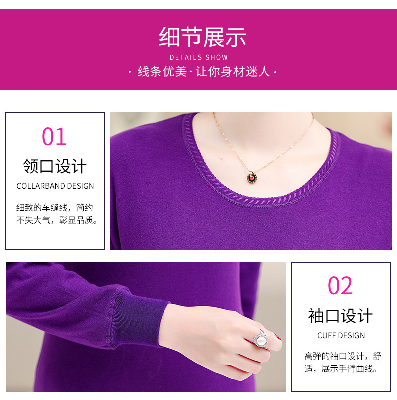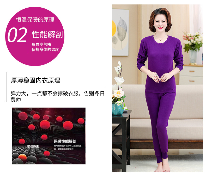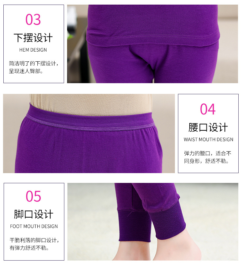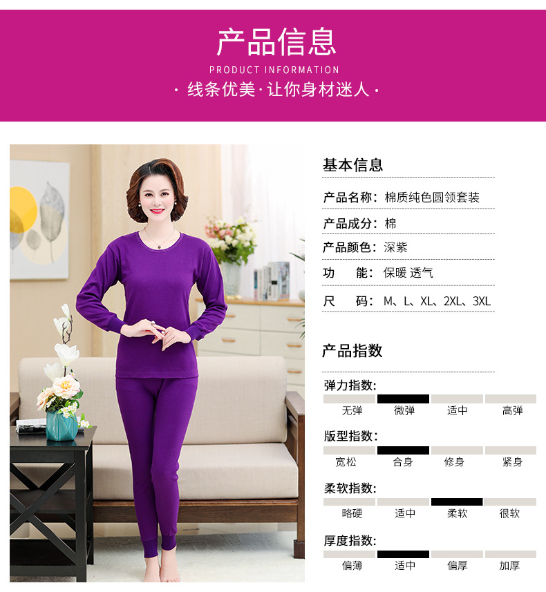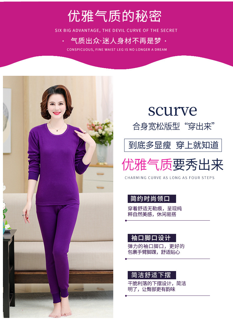 YQ-7011AB深紫保暖内衣 女士高低领棉质舒适居家套装