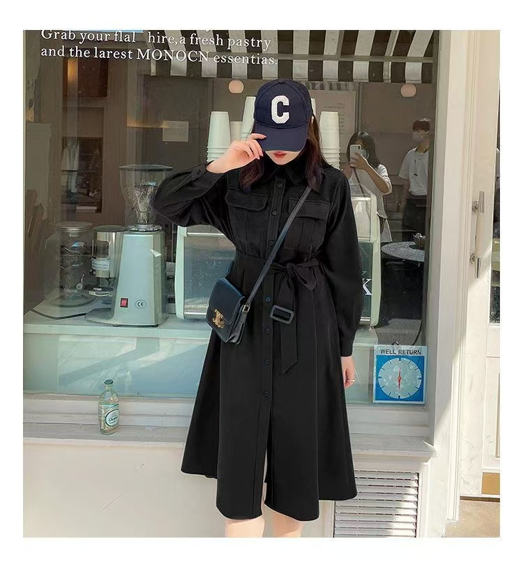 超值购【诗铭洛可】XCX235 连衣裙翻领衬衫春秋裙B9-3