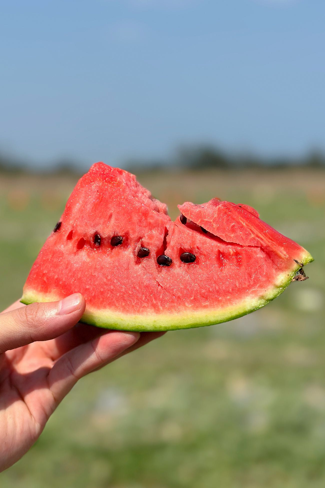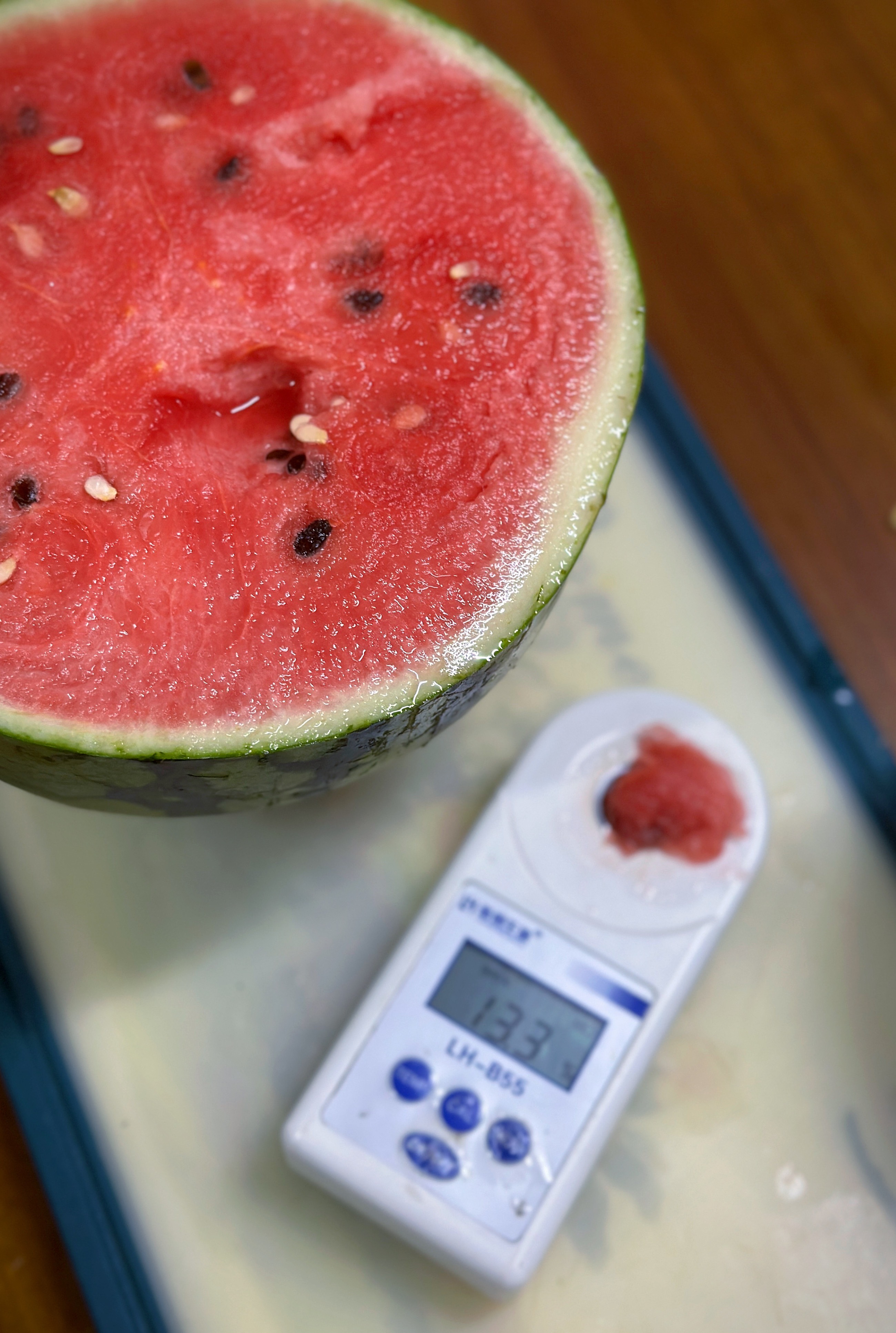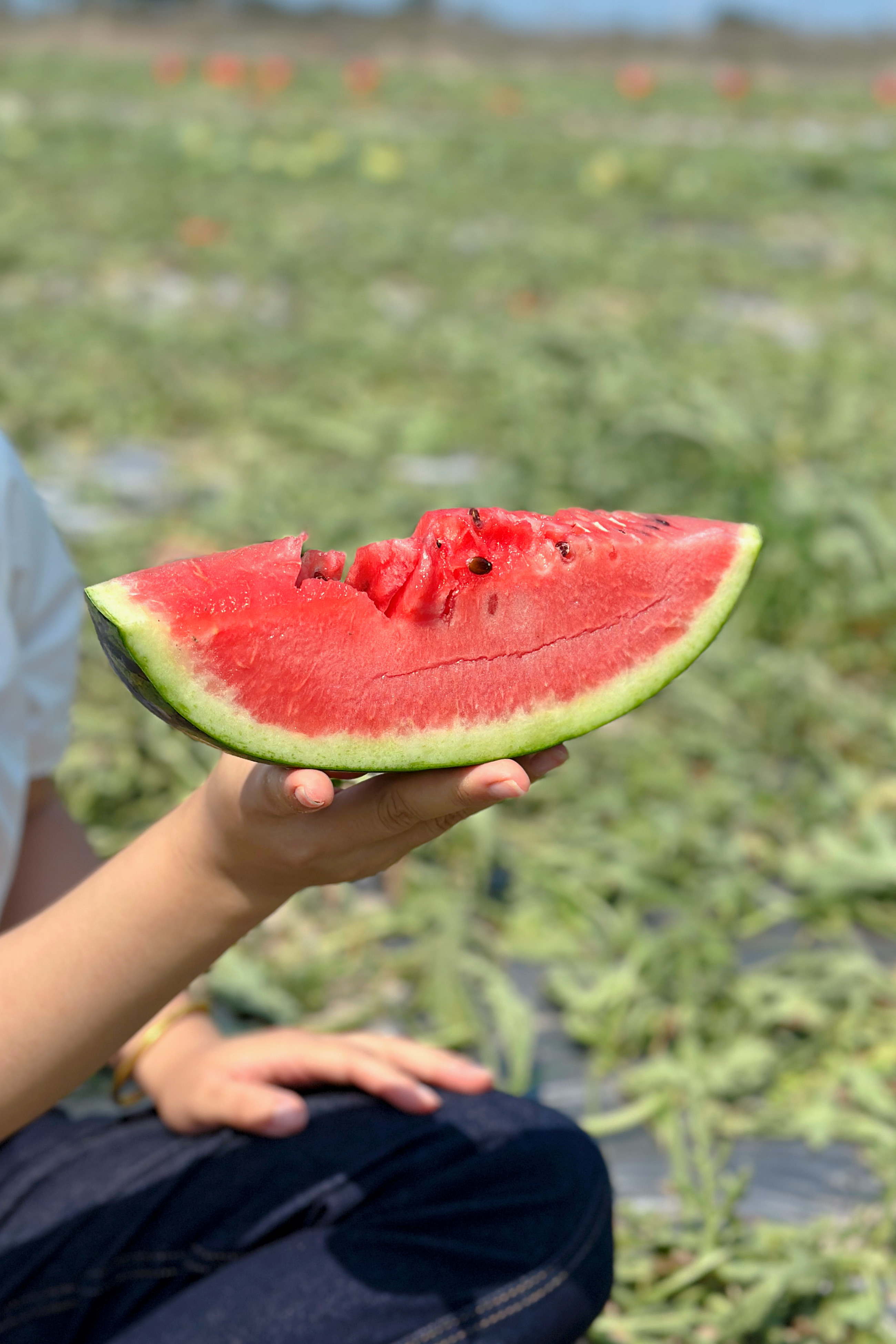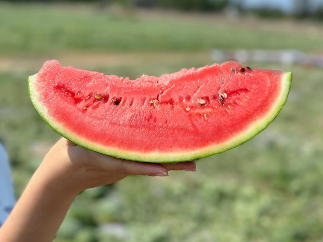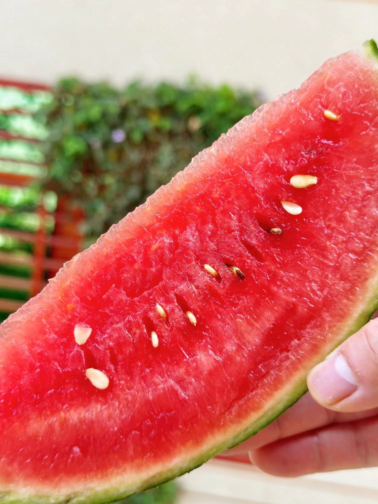 顾名思义,就是一个小小的甘美西瓜可以承受一个成年人的体重而不破裂,大家可能由此会认为它的皮,应该很厚,才能承受住那么大的压力,而实际上甘美西瓜属于薄皮型西瓜,皮厚约0.5CM左右。