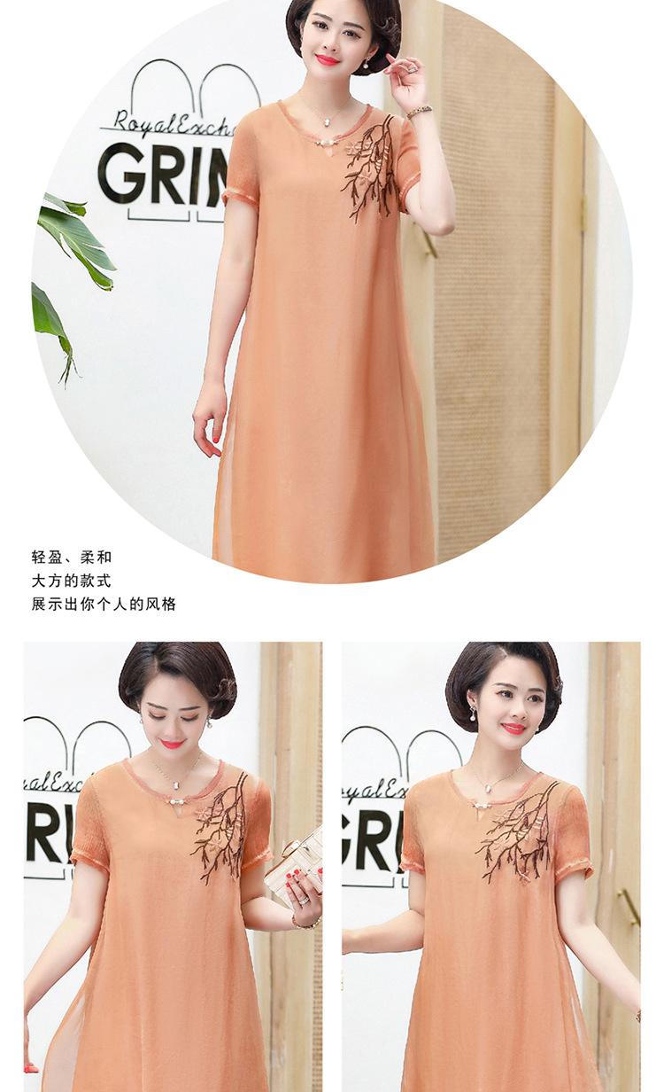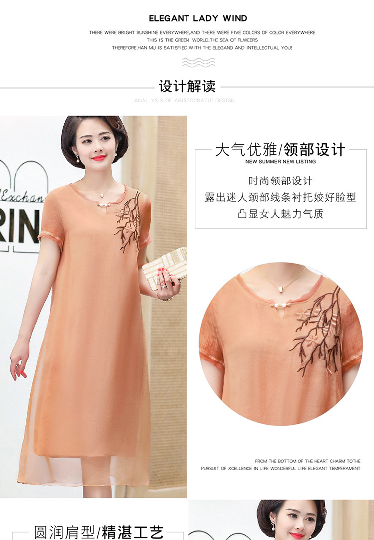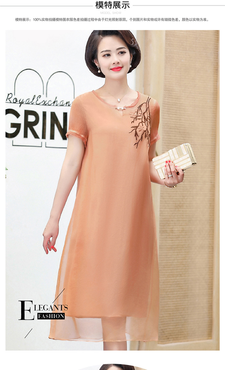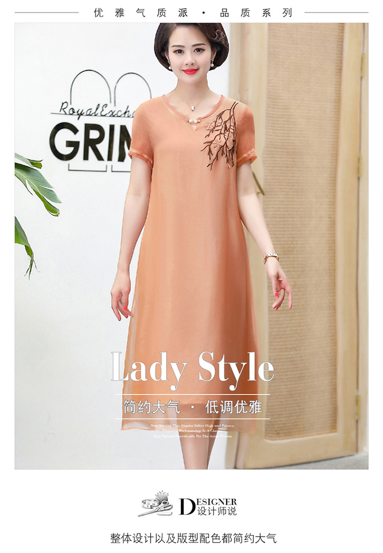 FLO-8202-1930中长款妈妈装洋气短袖碎花连衣裙