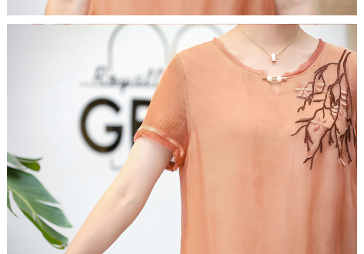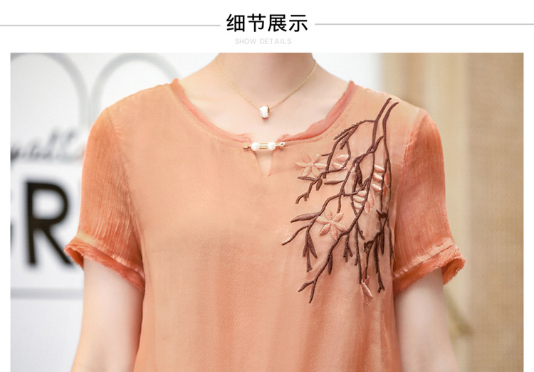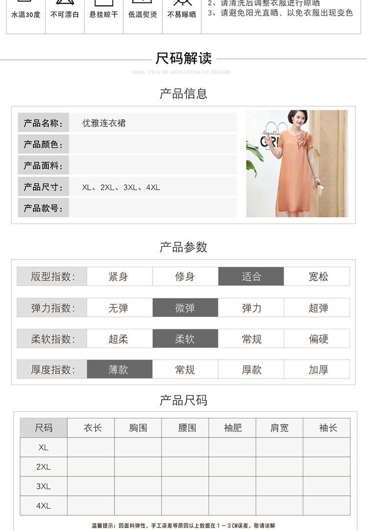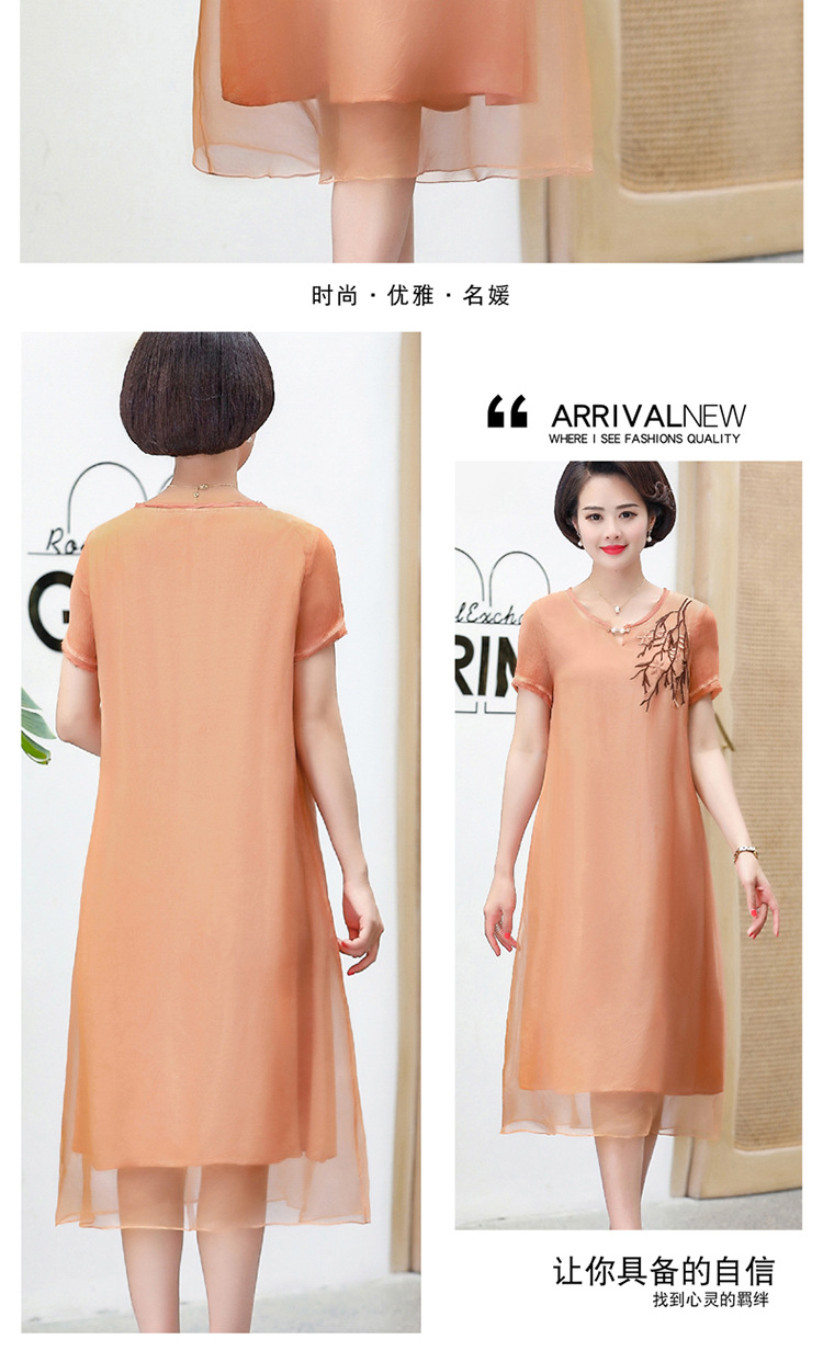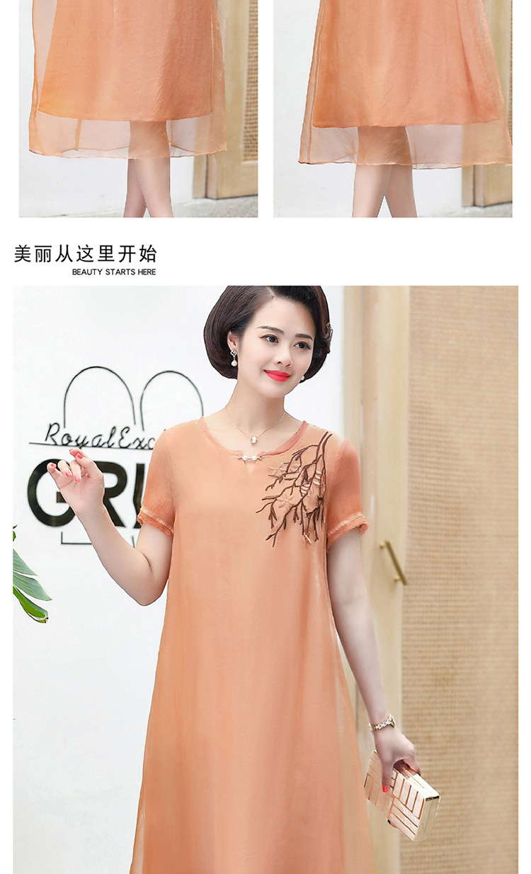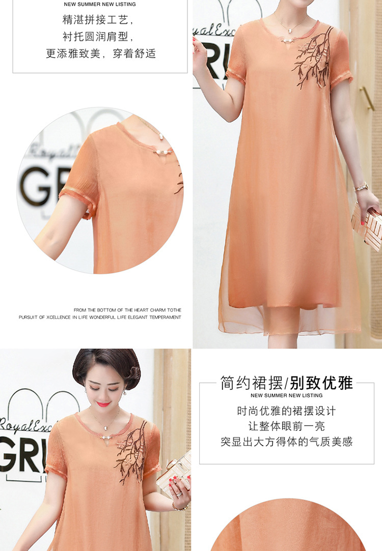 FLO-8202-1930中长款妈妈装洋气短袖碎花连衣裙