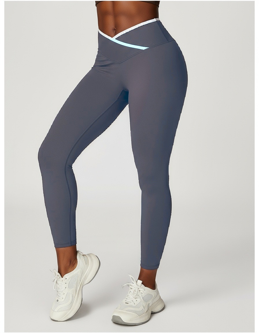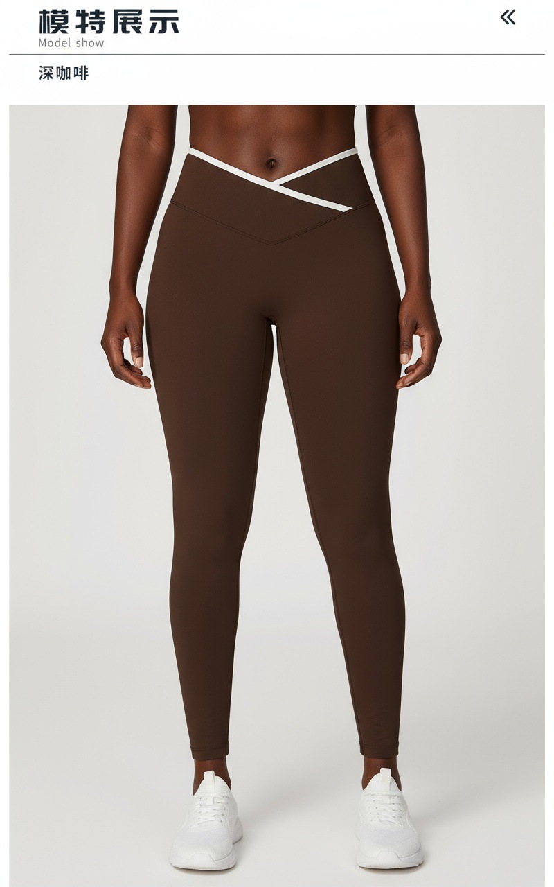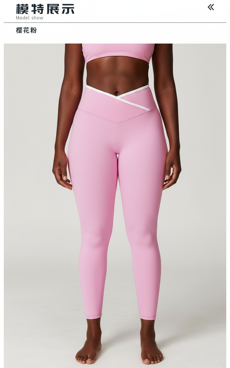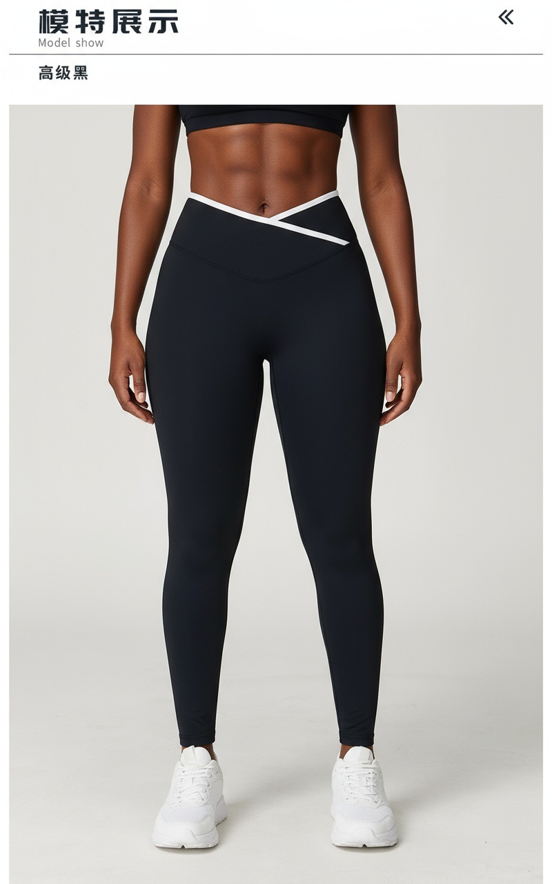 跃牌【安琪拉系列】裸感紧身瑜伽裤交叉高腰撞色弹力紧身裤女运动跑步健身裤长裤