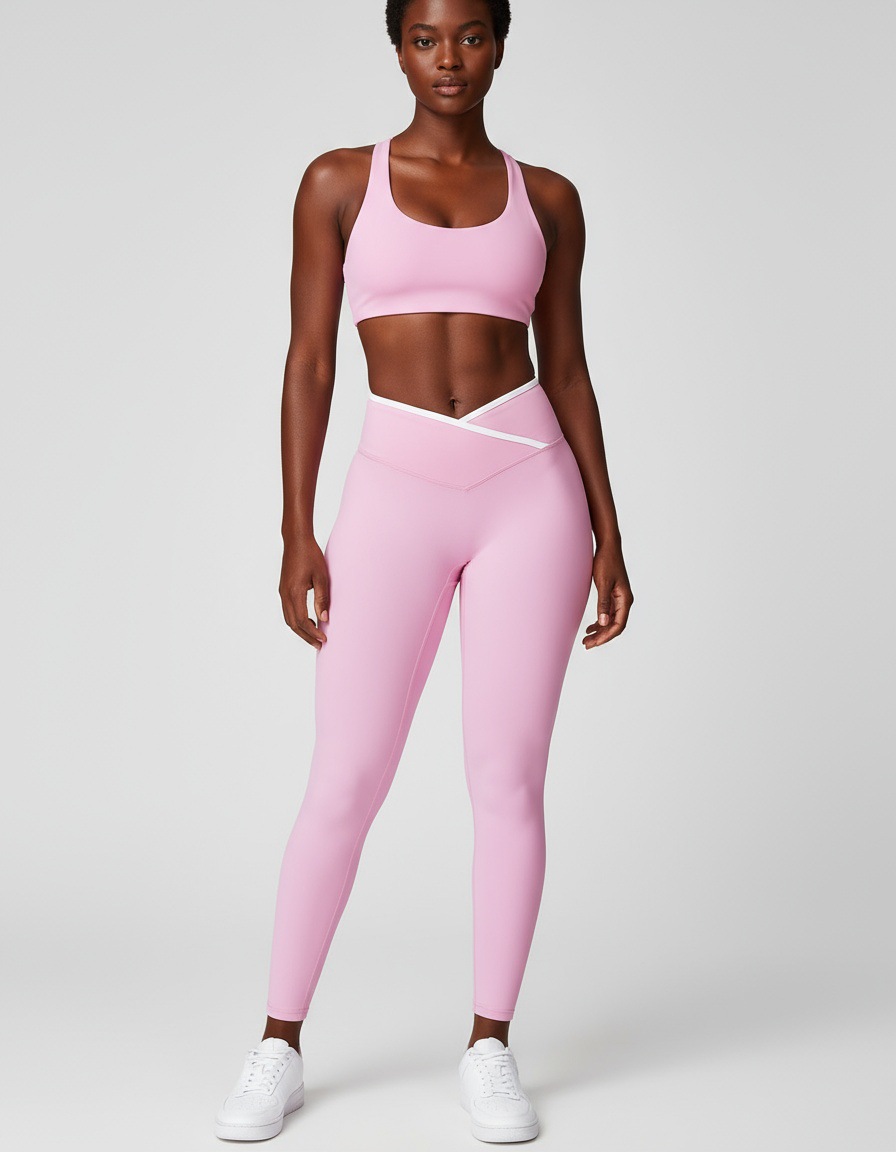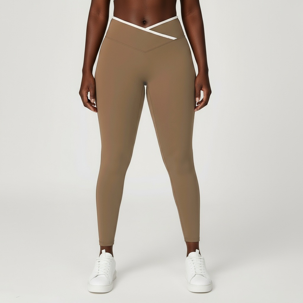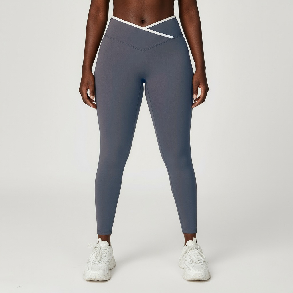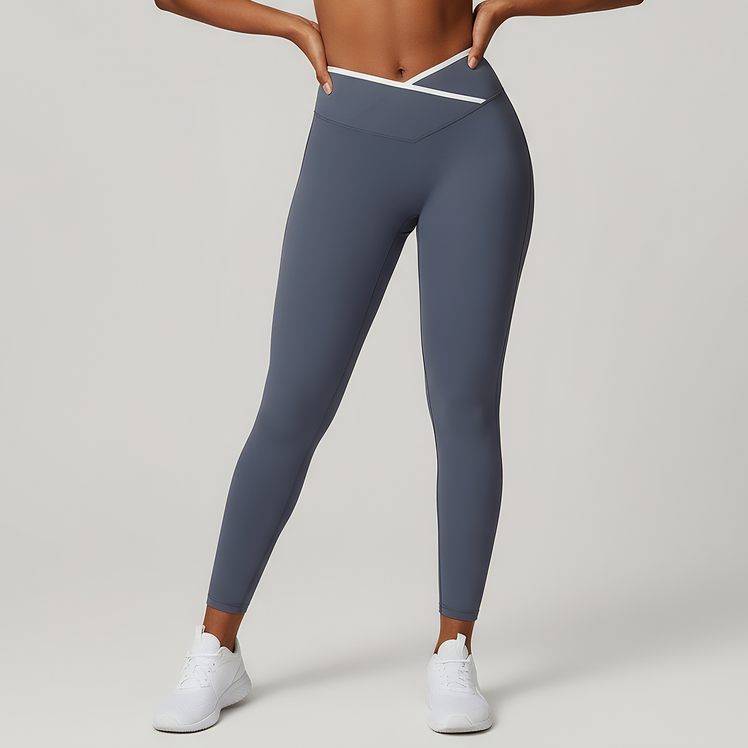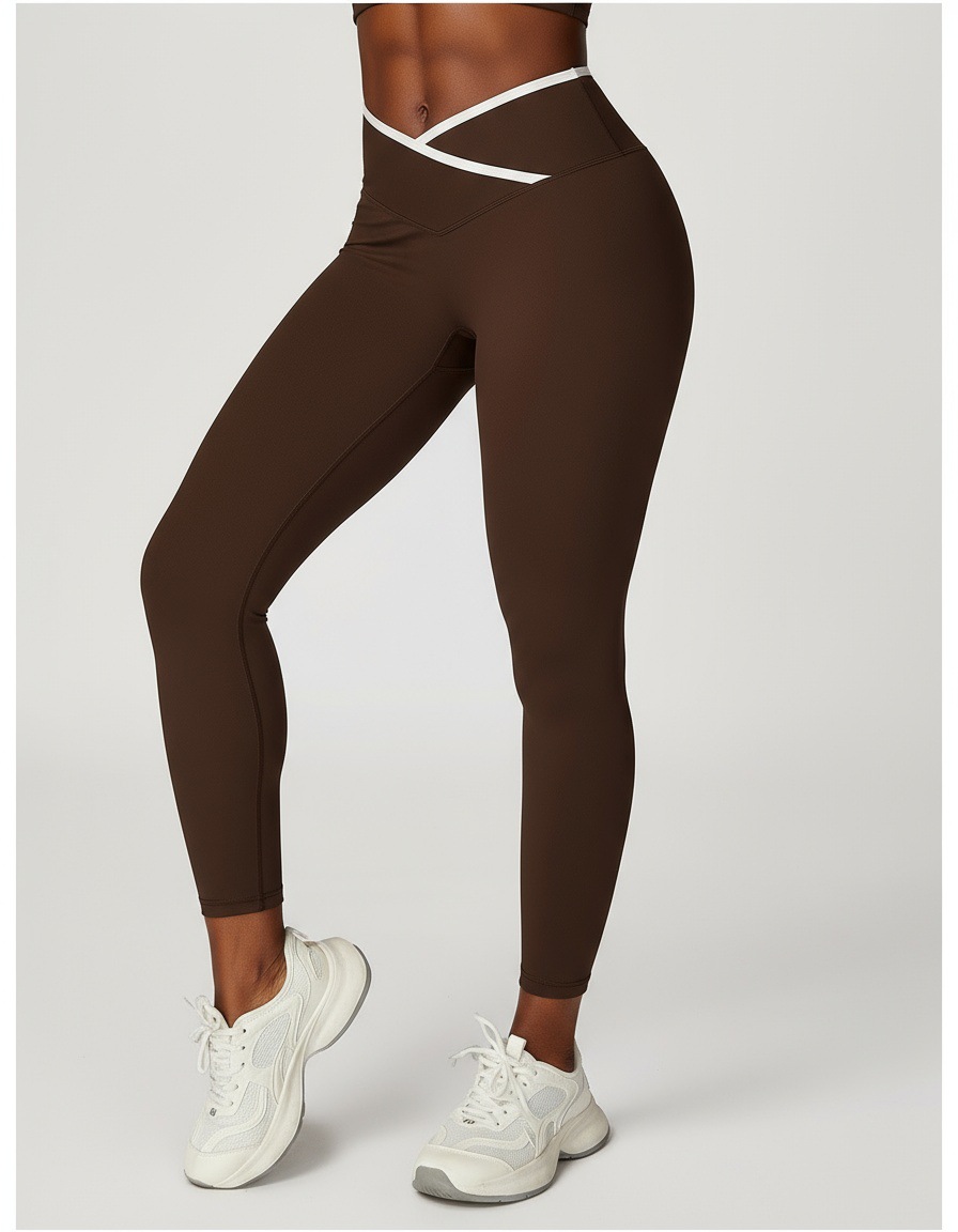 跃牌【安琪拉系列】裸感紧身瑜伽裤交叉高腰撞色弹力紧身裤女运动跑步健身裤长裤