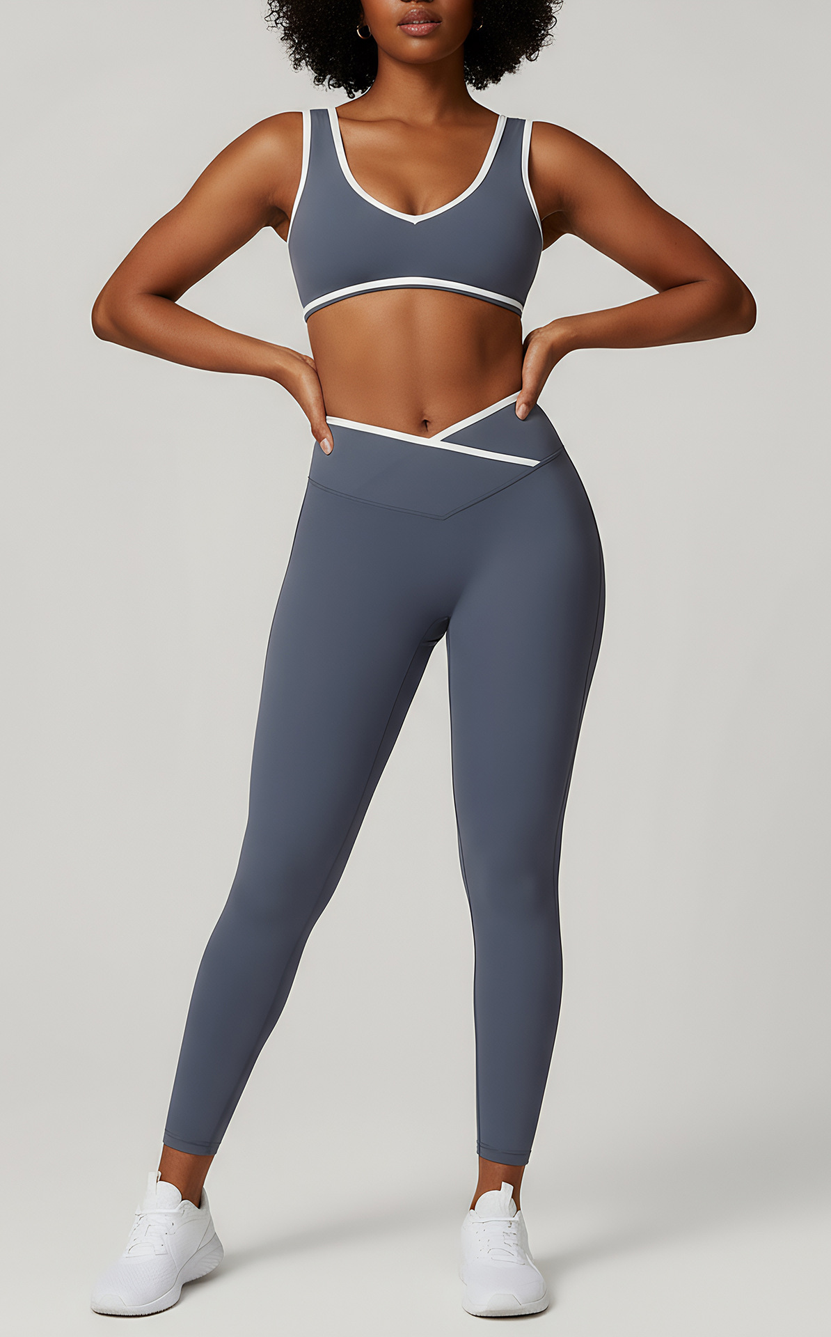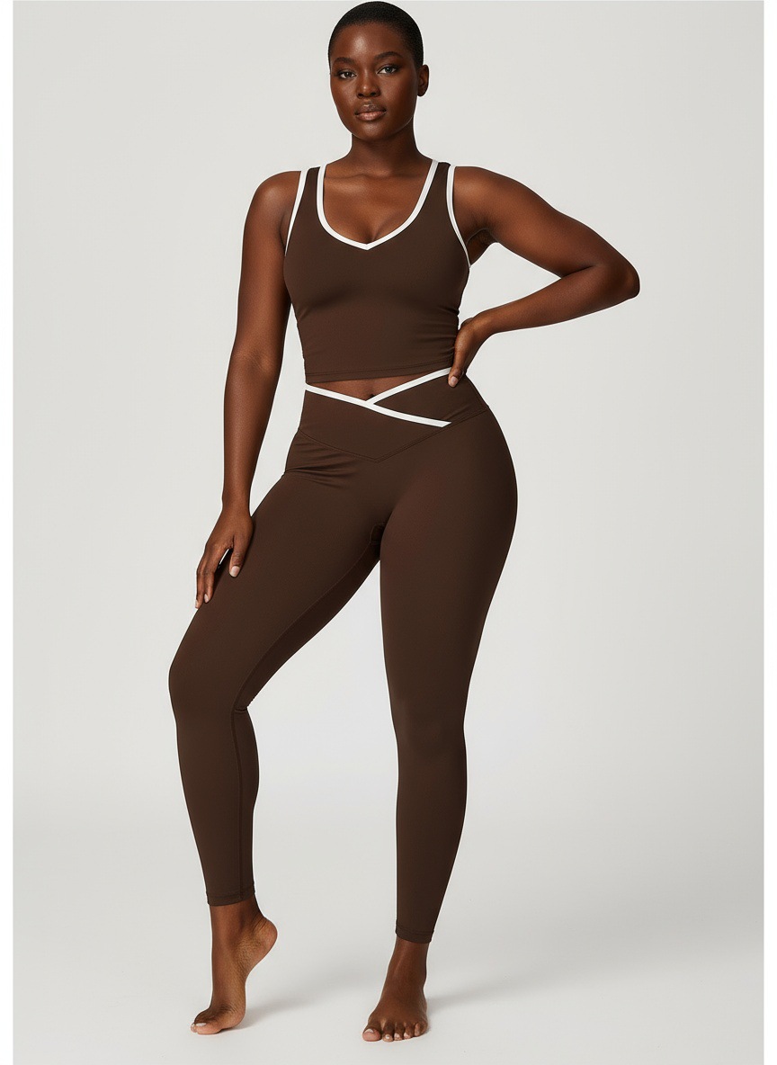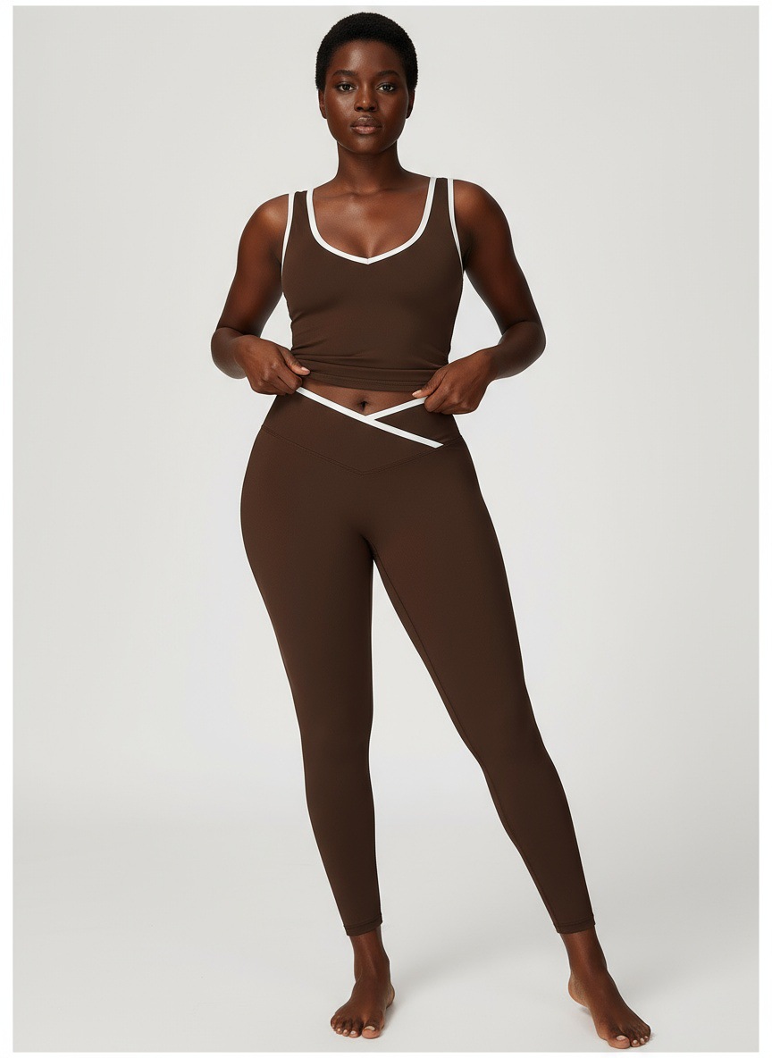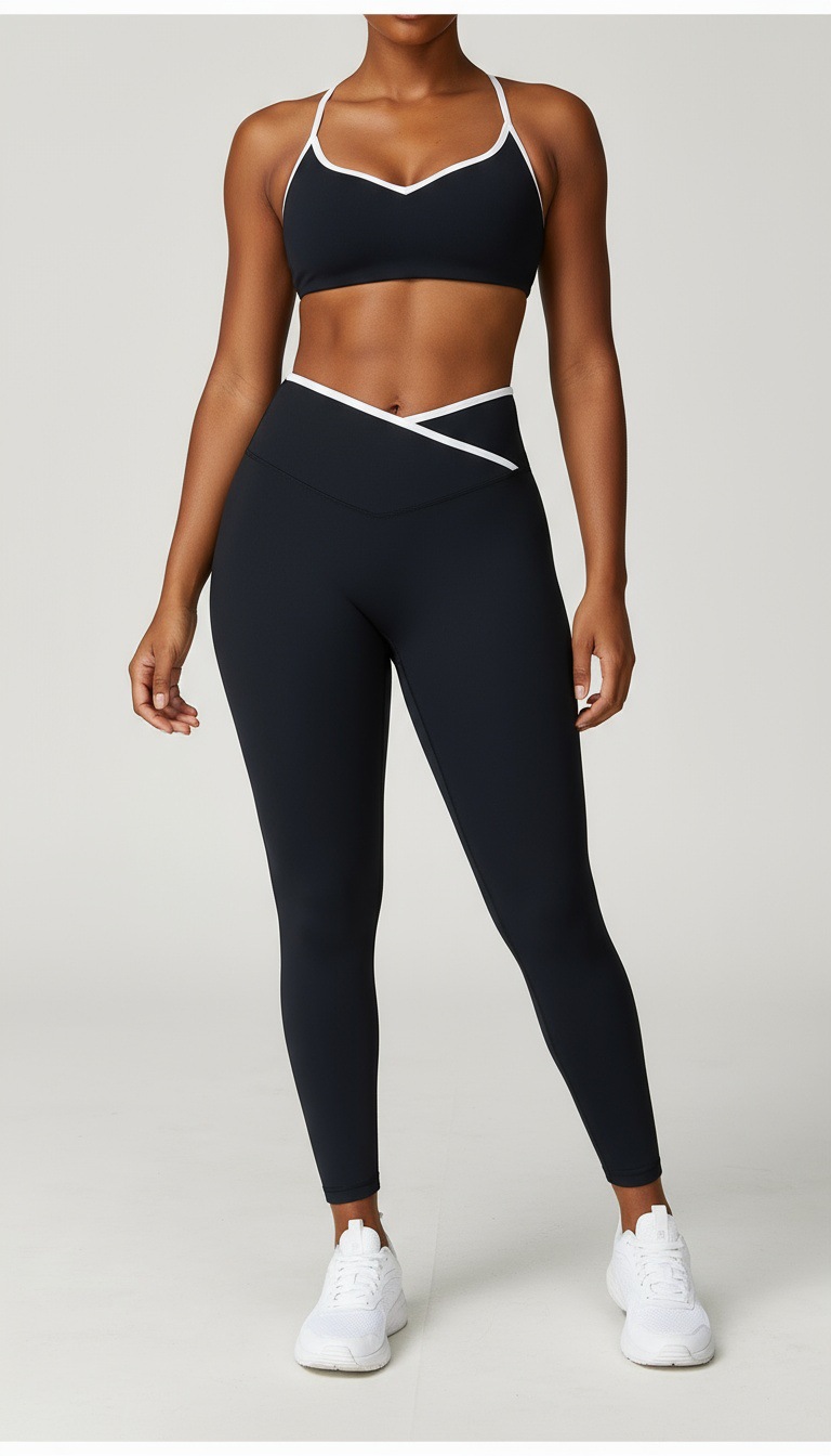 跃牌【安琪拉系列】裸感紧身瑜伽裤交叉高腰撞色弹力紧身裤女运动跑步健身裤长裤