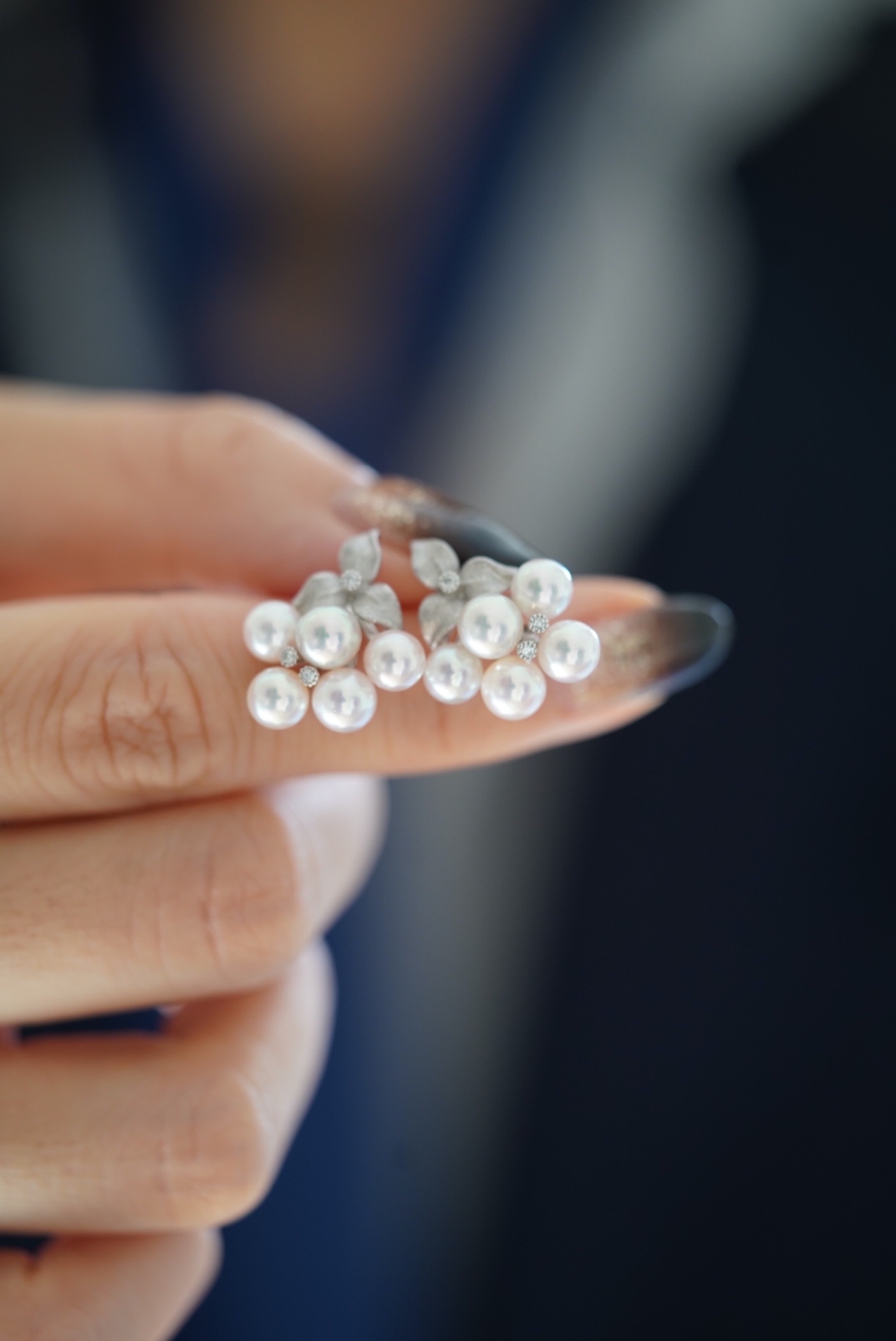 Akoya浅浅灰大葡萄🍇主打一个刚柔并济akoya灰 18k钻石 白还有珍珠的柔美三叶草☘️的仙气珍珠4.5-6.5mm耳环4699🉐