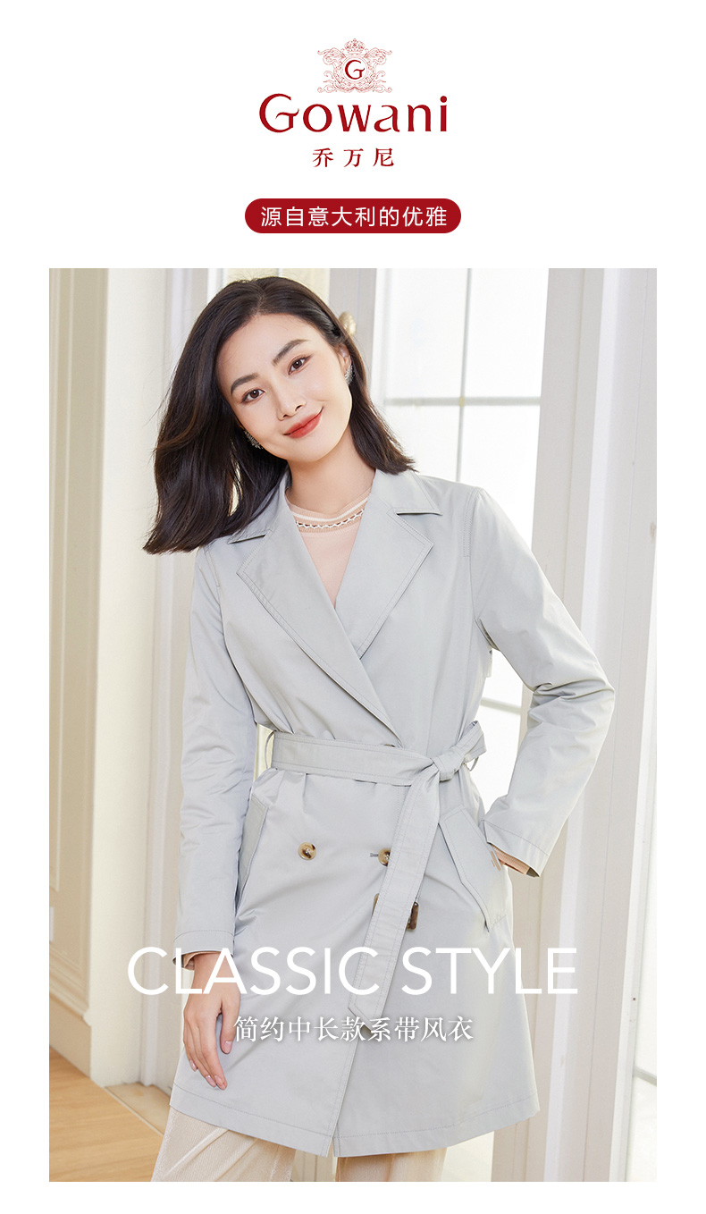 乔万尼风衣外套女新款小个子女春季韩版宽松收腰EF3A837