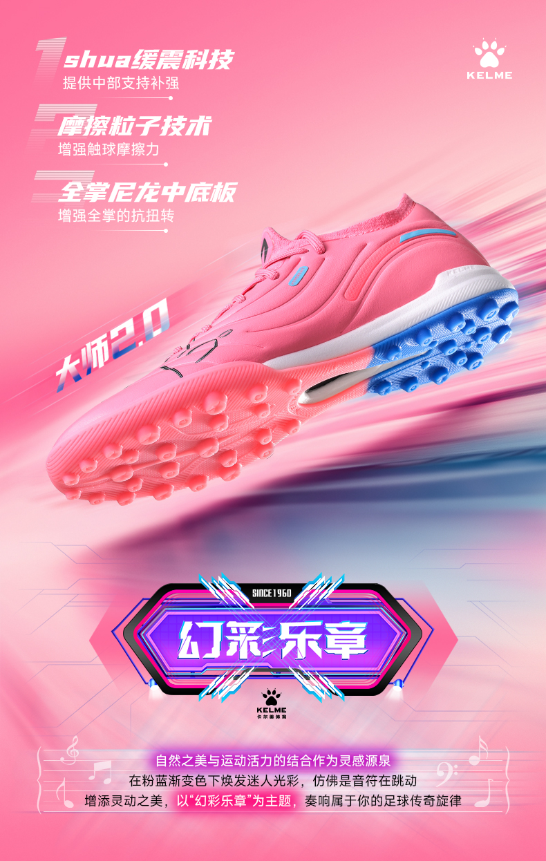 卡尔美幻彩乐章系列大师2.0TF碎钉大底男足球鞋