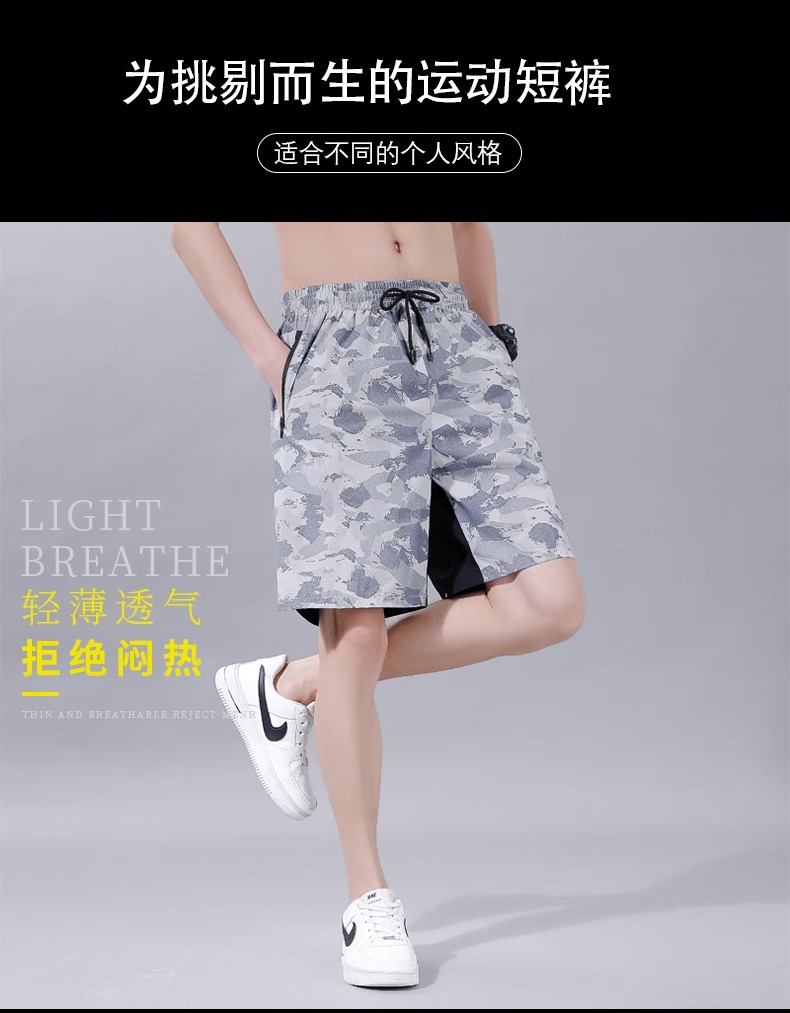 跃牌【跃LEAP-ACTIVE】系列迷彩短裤夏季男士薄款冰丝速干五分裤宽松篮球运动裤衩休闲裤子351