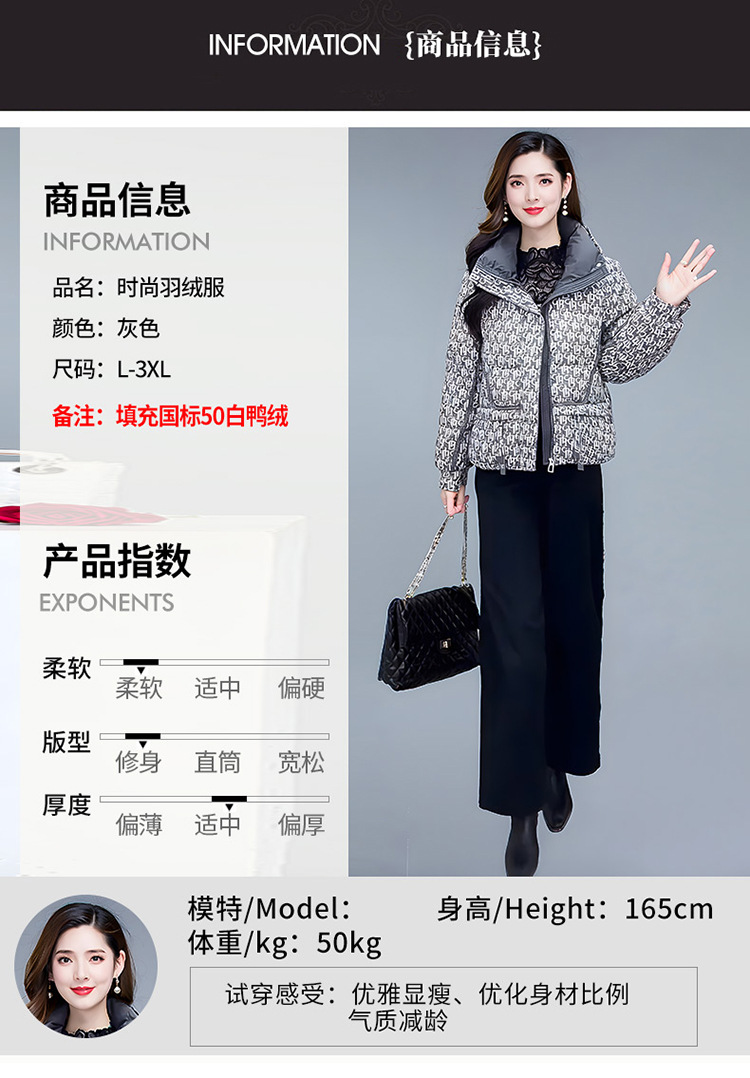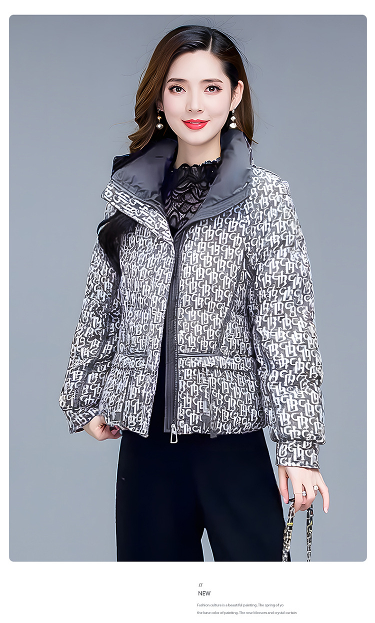 QYM 58851-1韩版宽松连帽羽绒服加厚保暖字母印花外套 商品图2