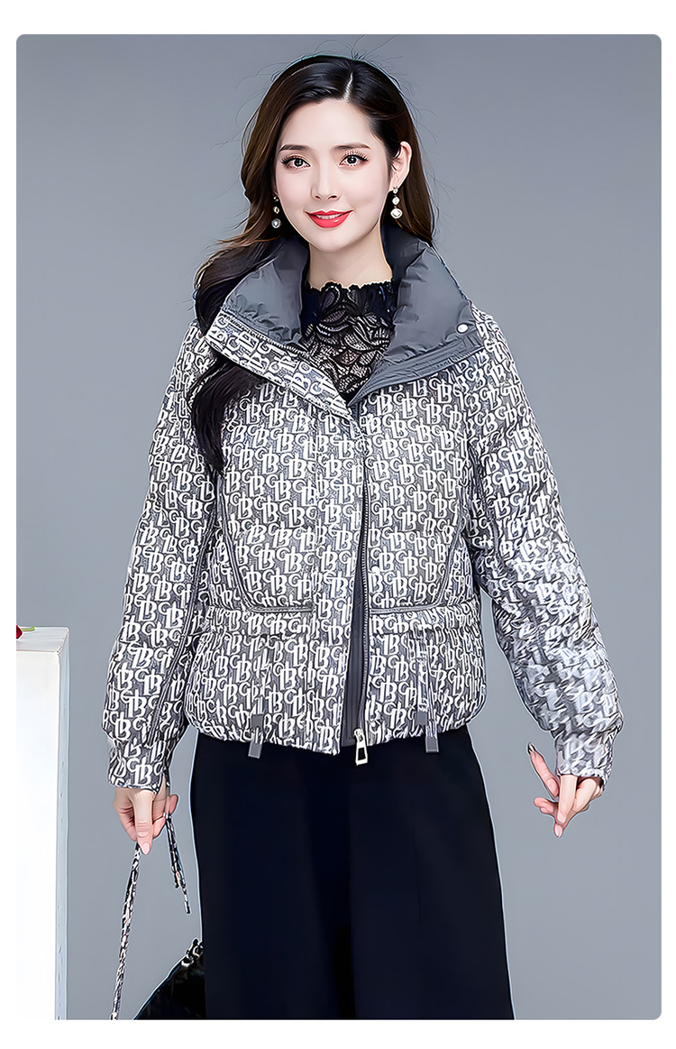 QYM 58851-1韩版宽松连帽羽绒服加厚保暖字母印花外套 商品图3