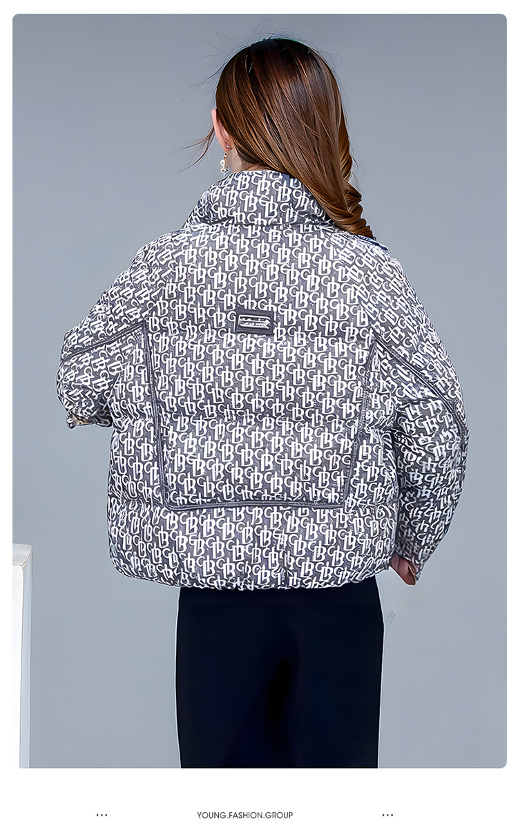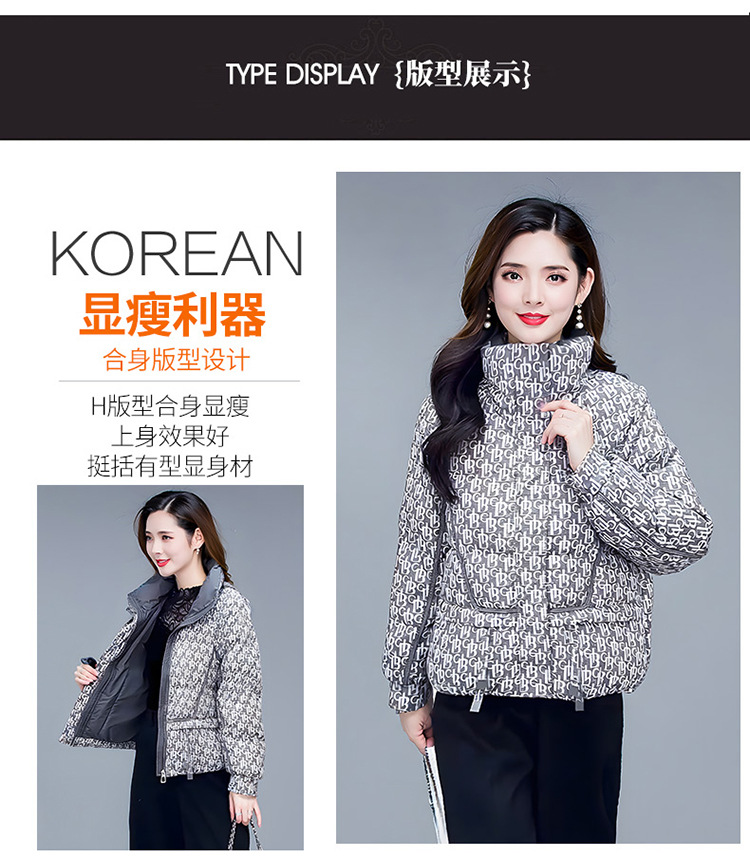 QYM 58851-1韩版宽松连帽羽绒服加厚保暖字母印花外套 商品图4