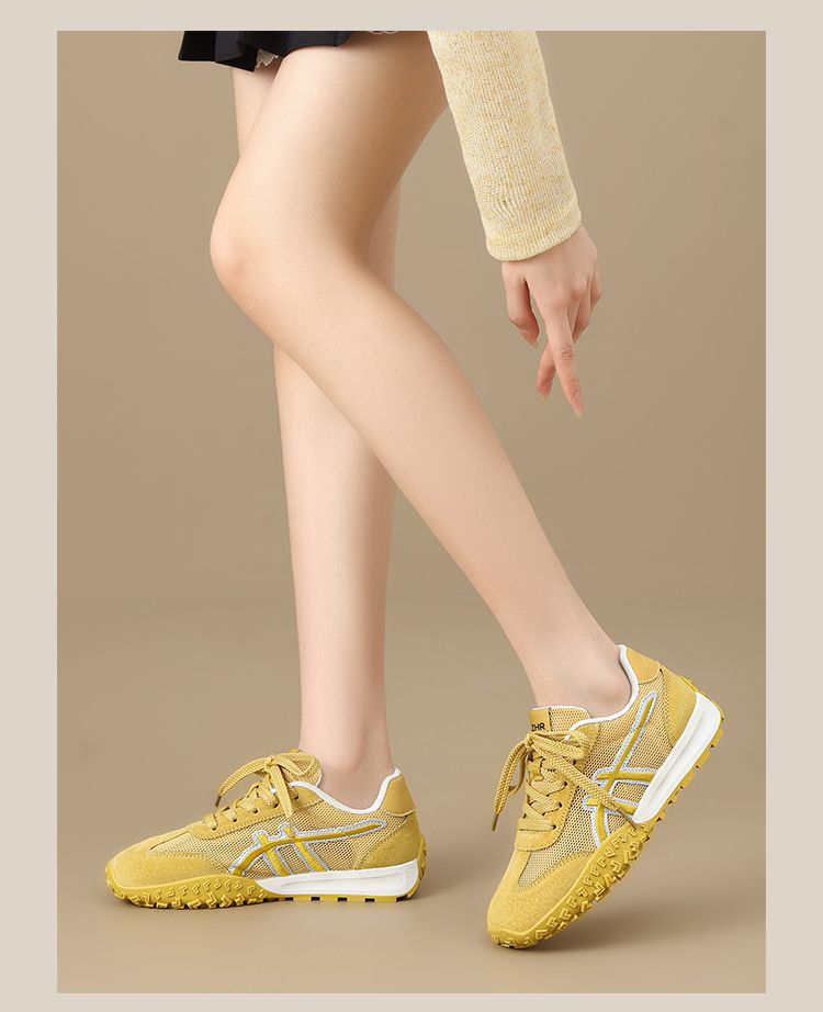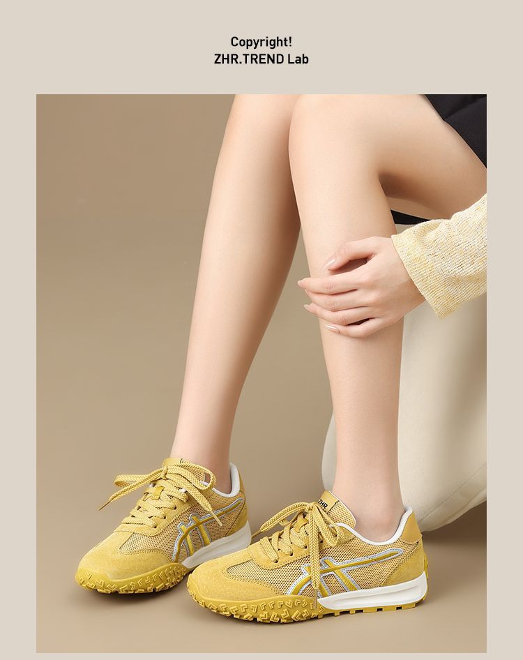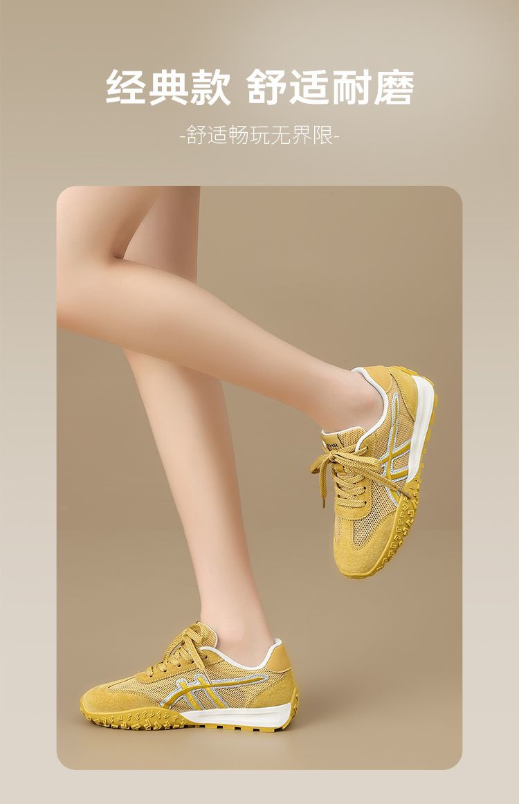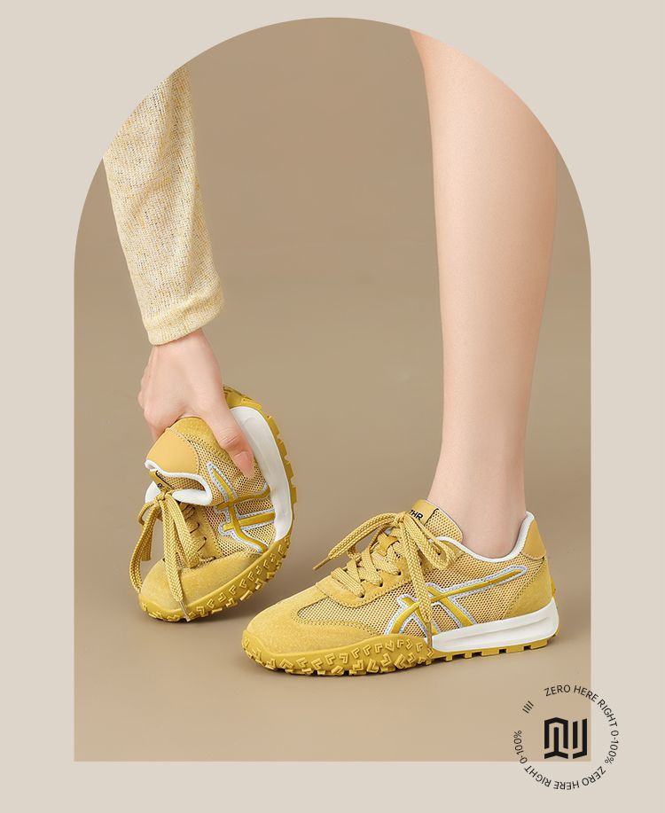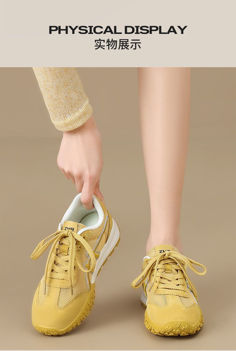 ZHR则则黄色德训鞋网洞透气拼色阿甘鞋2025夏季新款运动休闲鞋女