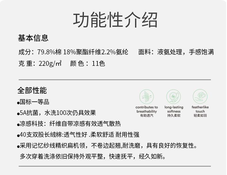 面料:79.8%棉 18%聚酯纤维 2.2%氨纶