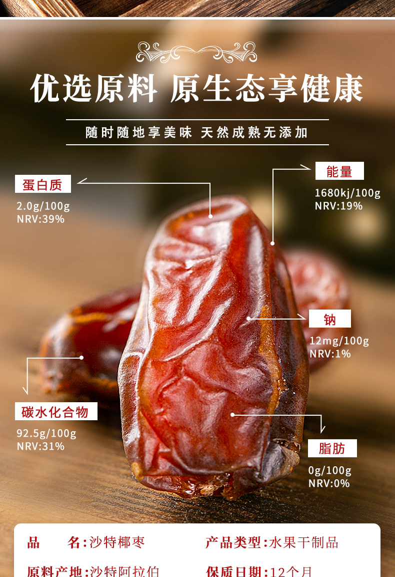 【自营】沙特椰枣天然椰枣干迪拜椰枣阿联酋黄金椰枣特级大进口 200g/250g装任选基地直邮