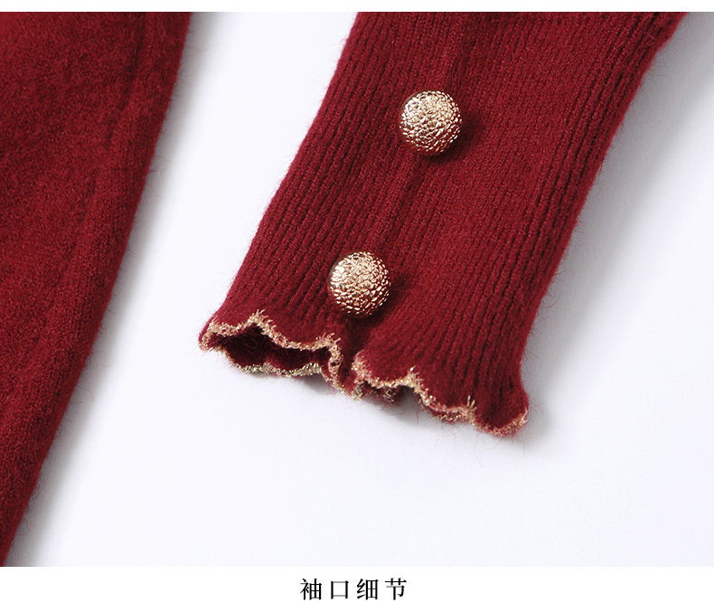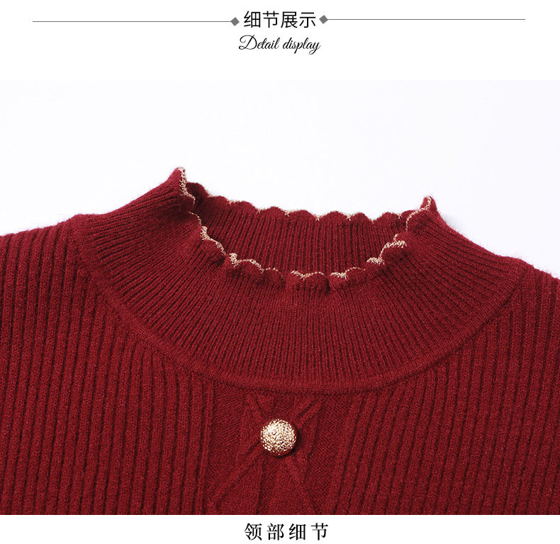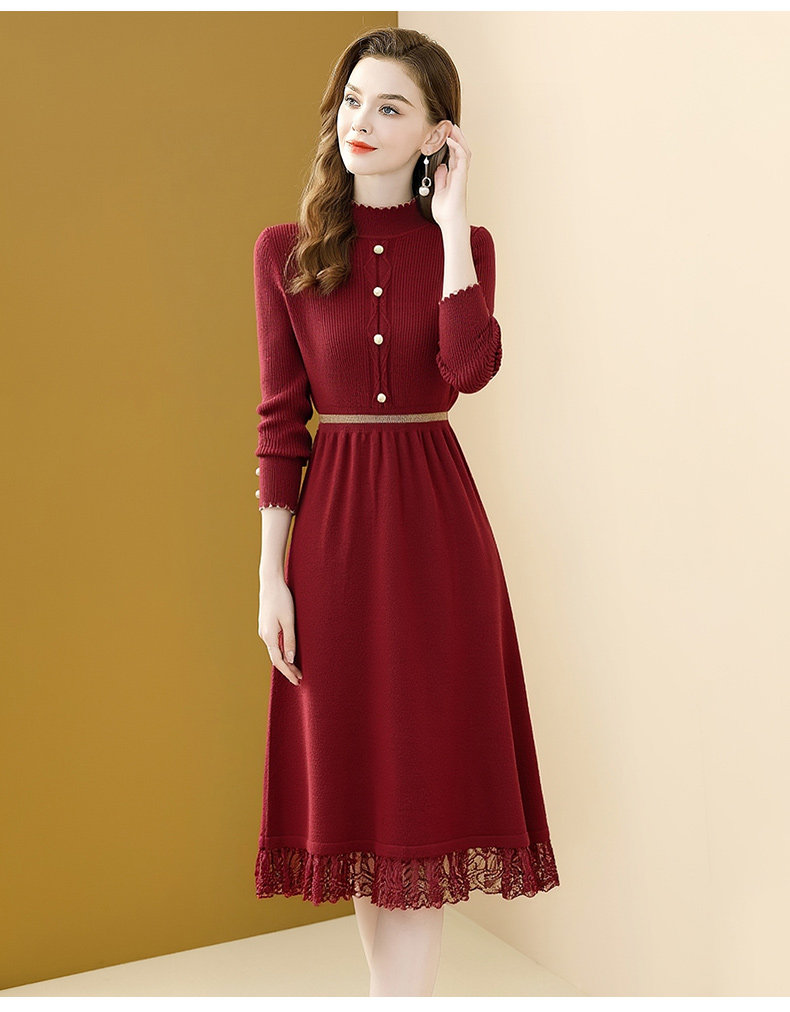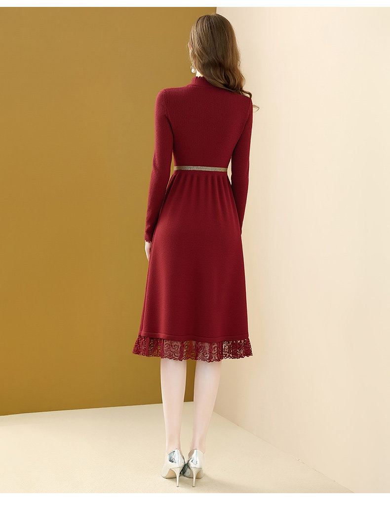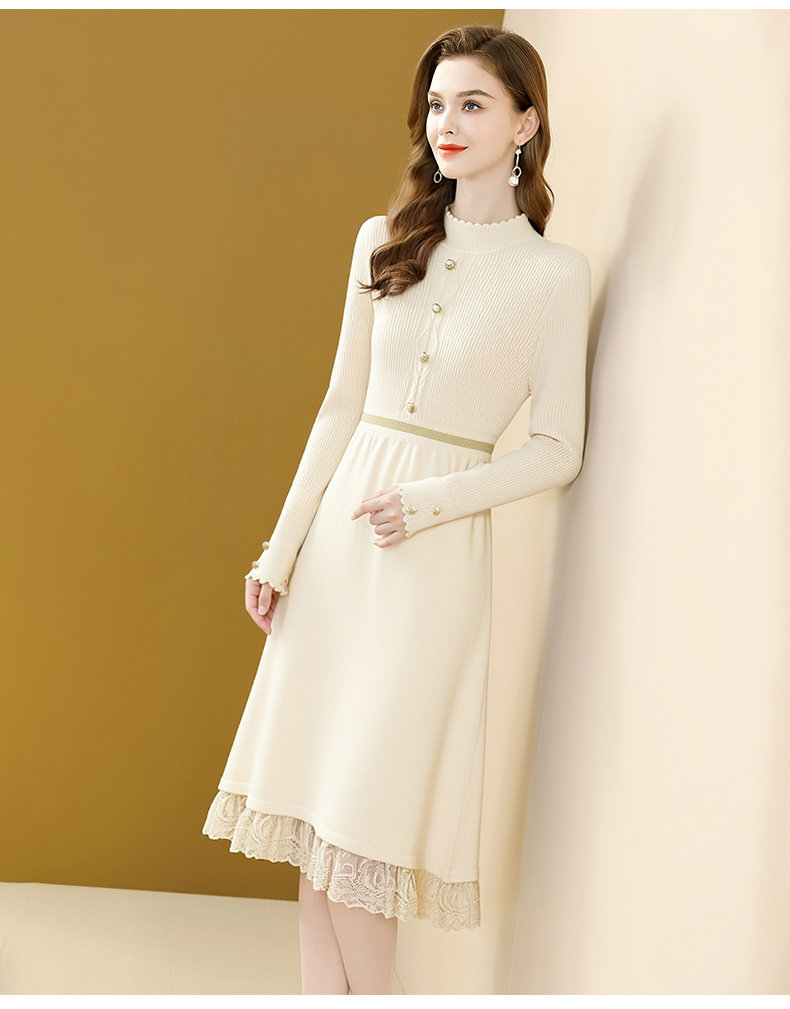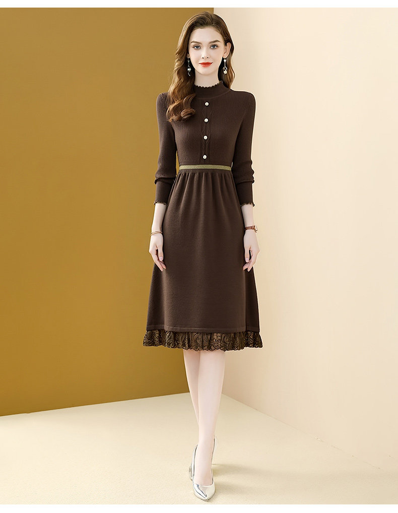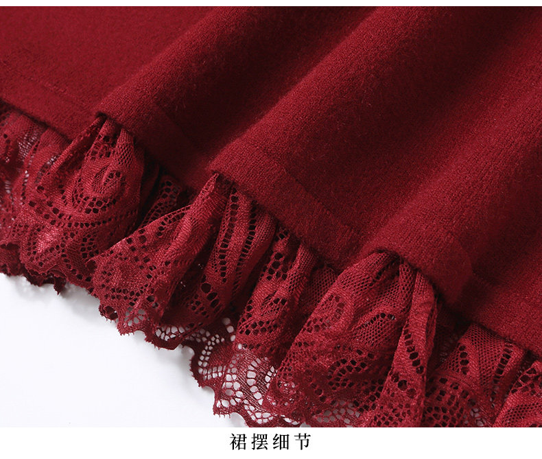 「自」全新升级【铂金会员201/天猫269/差价68】(12233)洛诗琳半高领针织连衣裙女2025秋冬新款气质通勤长袖蕾丝显瘦毛衣裙