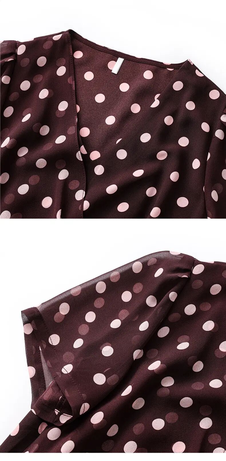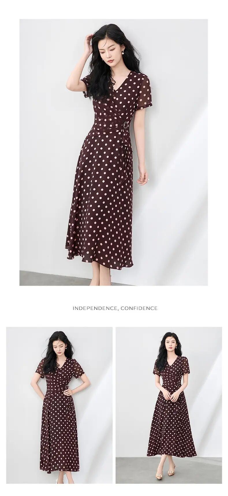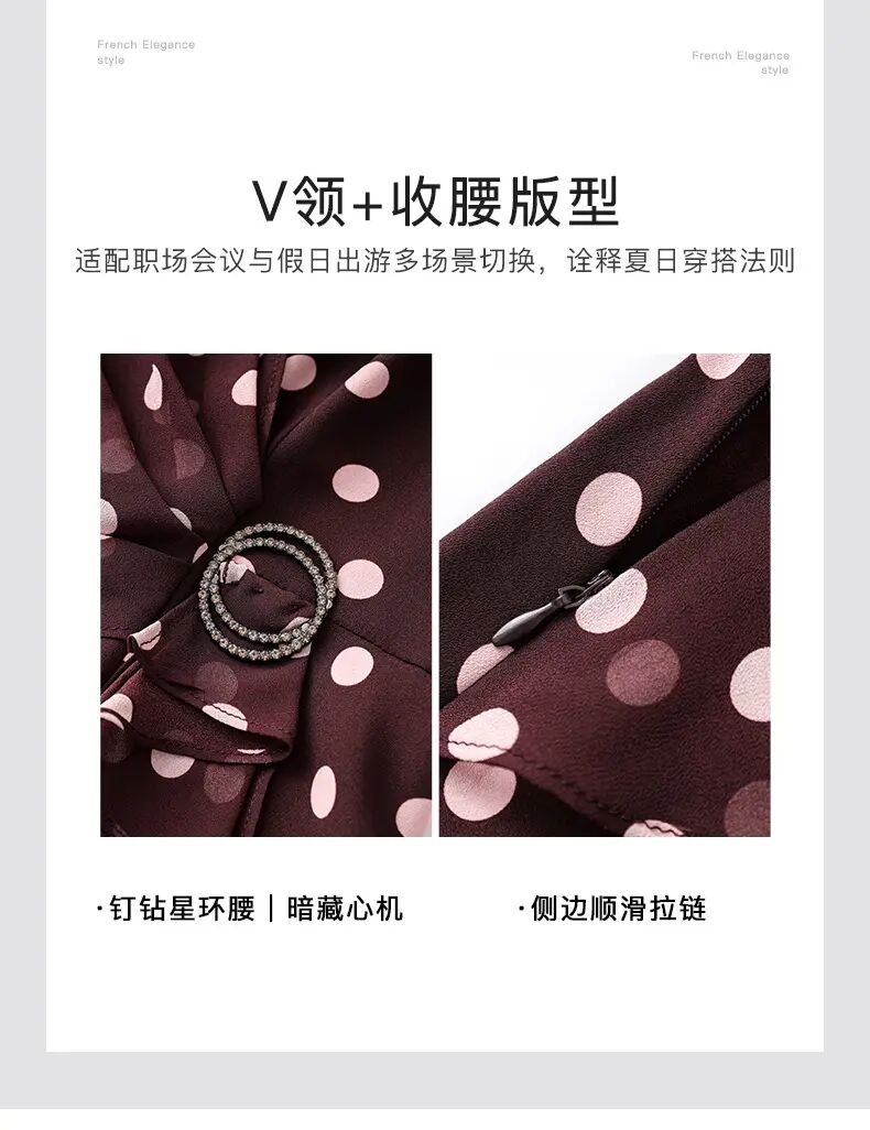 【高货wl】全新升级【铂金会员330/天猫439/差价109】(10945) 洛诗琳法式设计感波点连衣裙夏季新款气质V领收腰雪纺长裙
