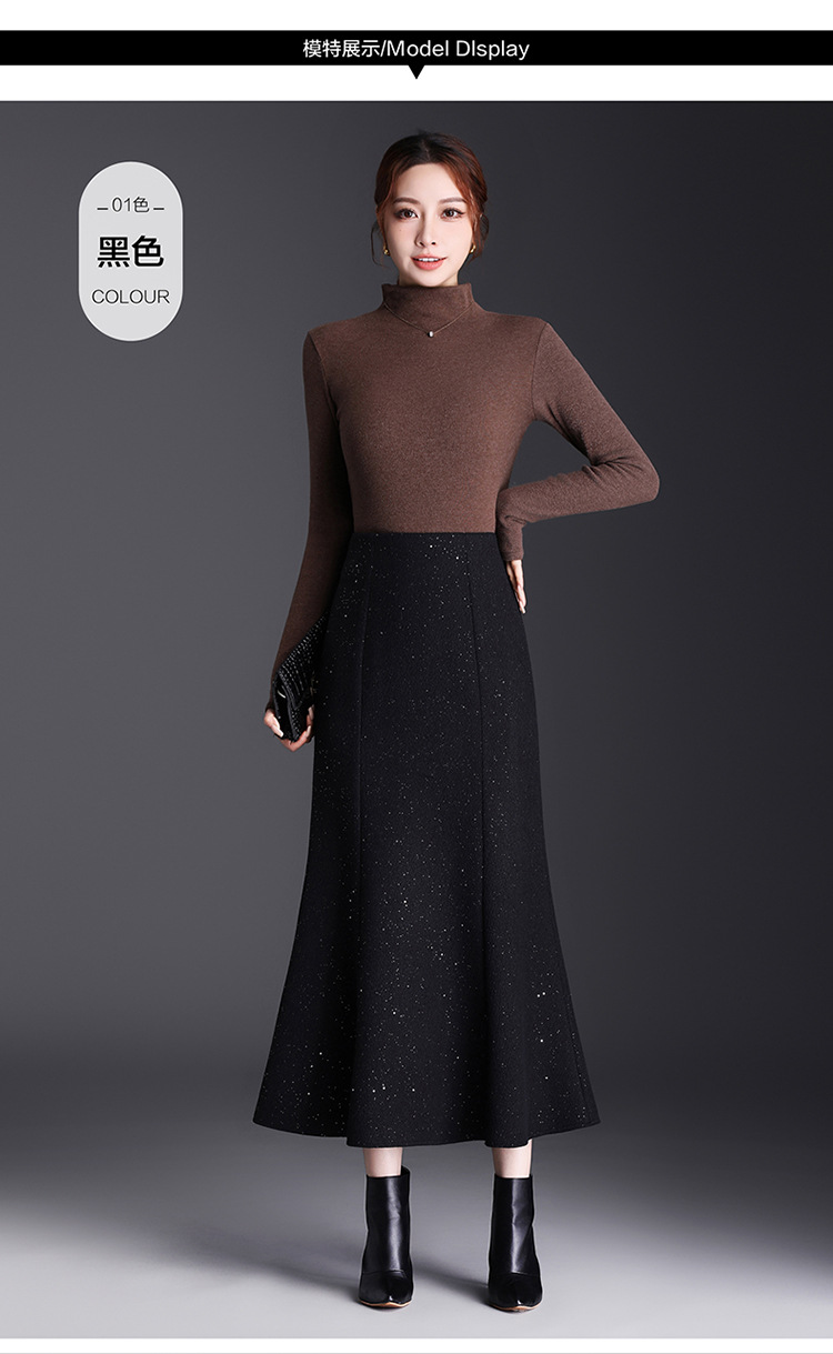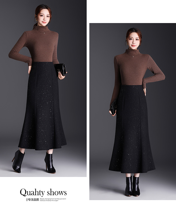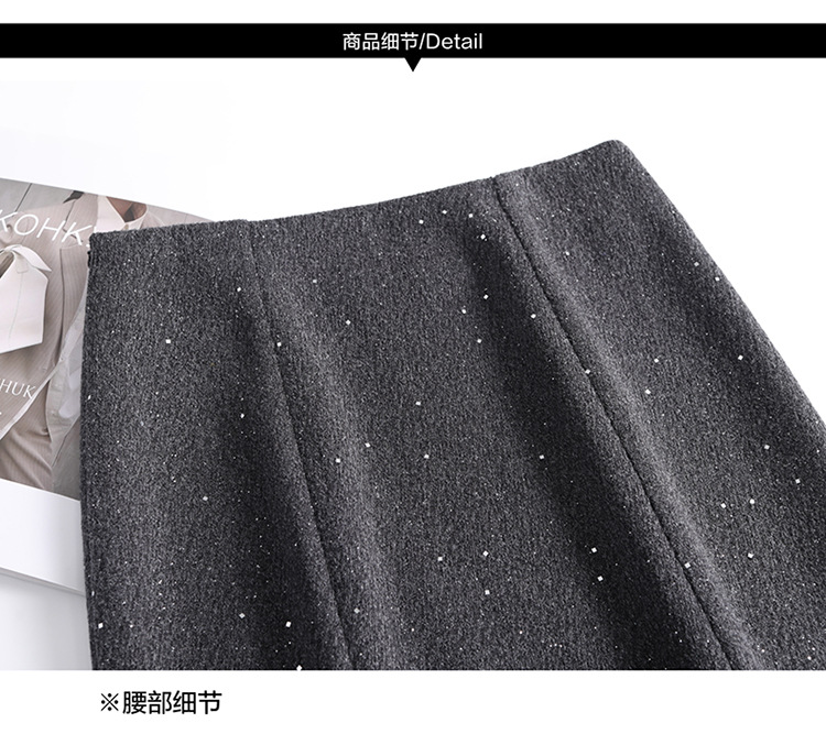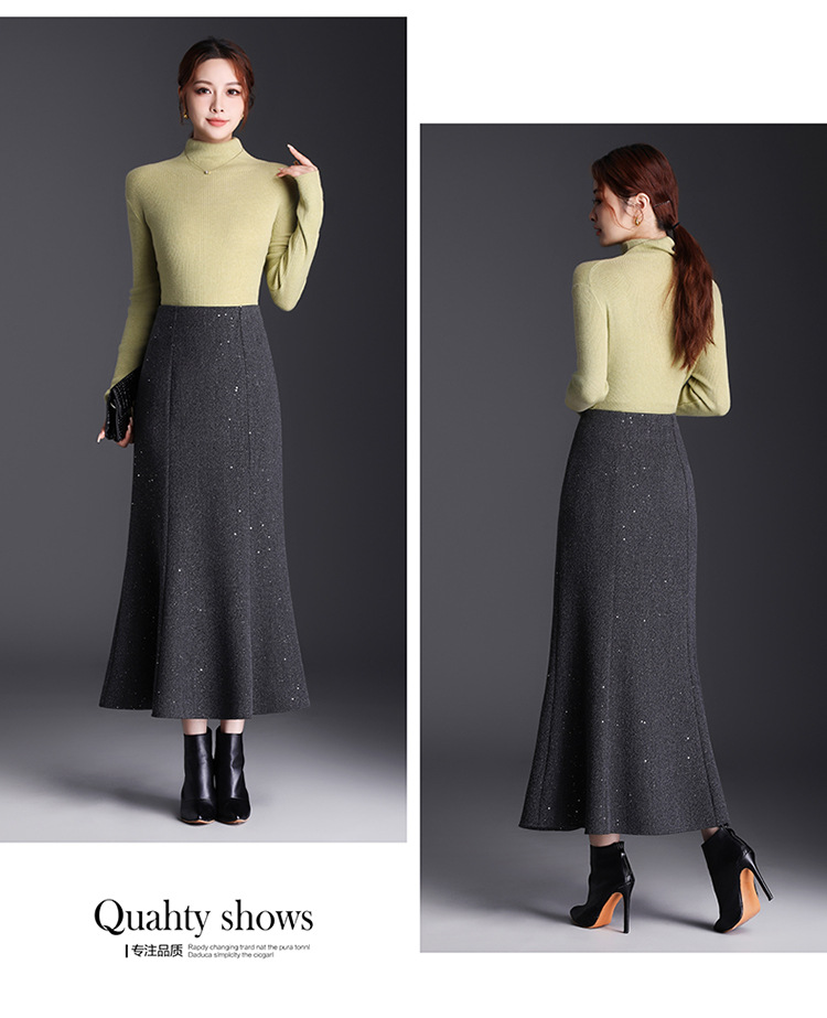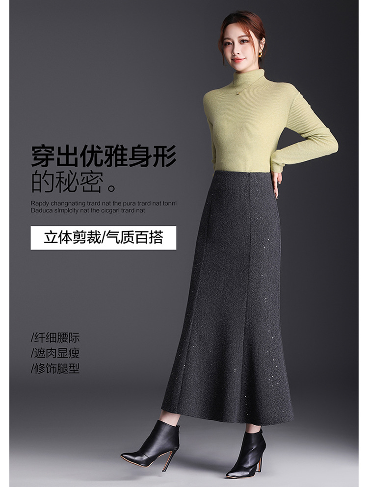 JYM-2495-8298亮片毛呢鱼尾长裙a字裙女高腰显瘦加厚冬季新款半身裙包臀一步裙