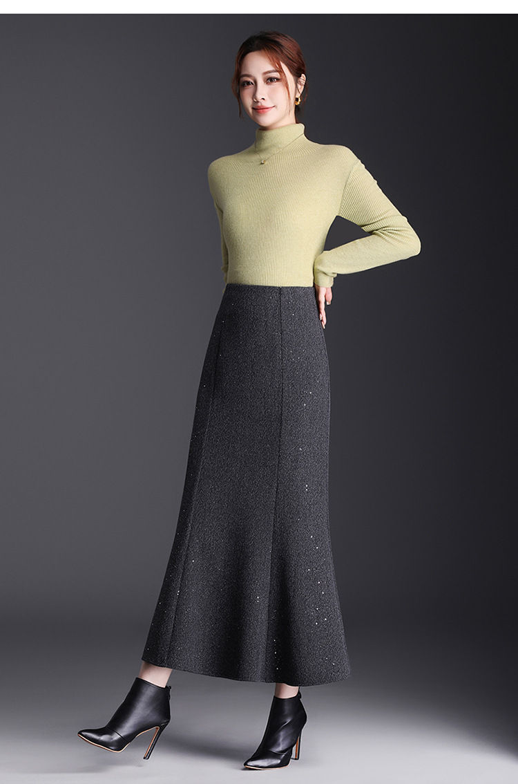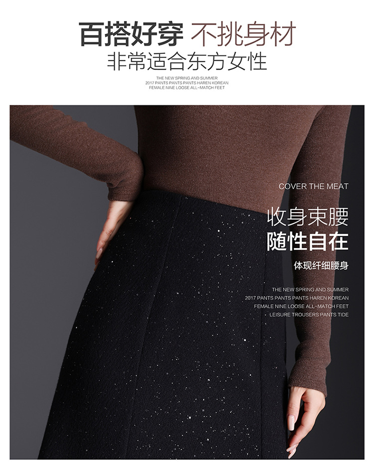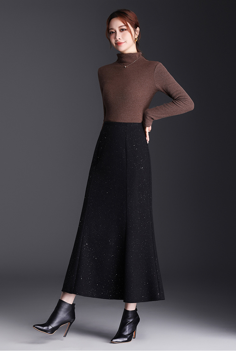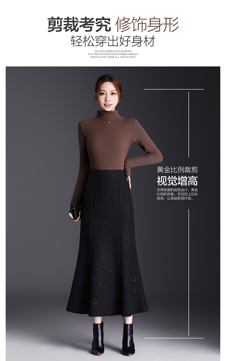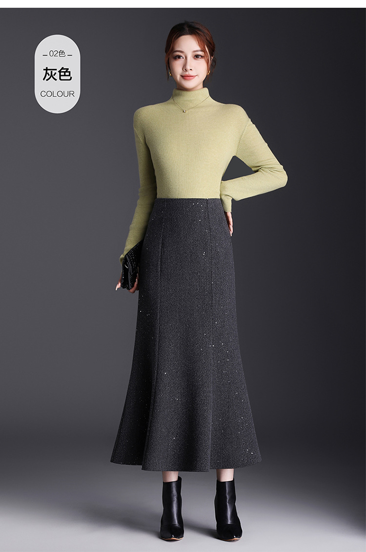 JYM-2495-8298亮片毛呢鱼尾长裙a字裙女高腰显瘦加厚冬季新款半身裙包臀一步裙