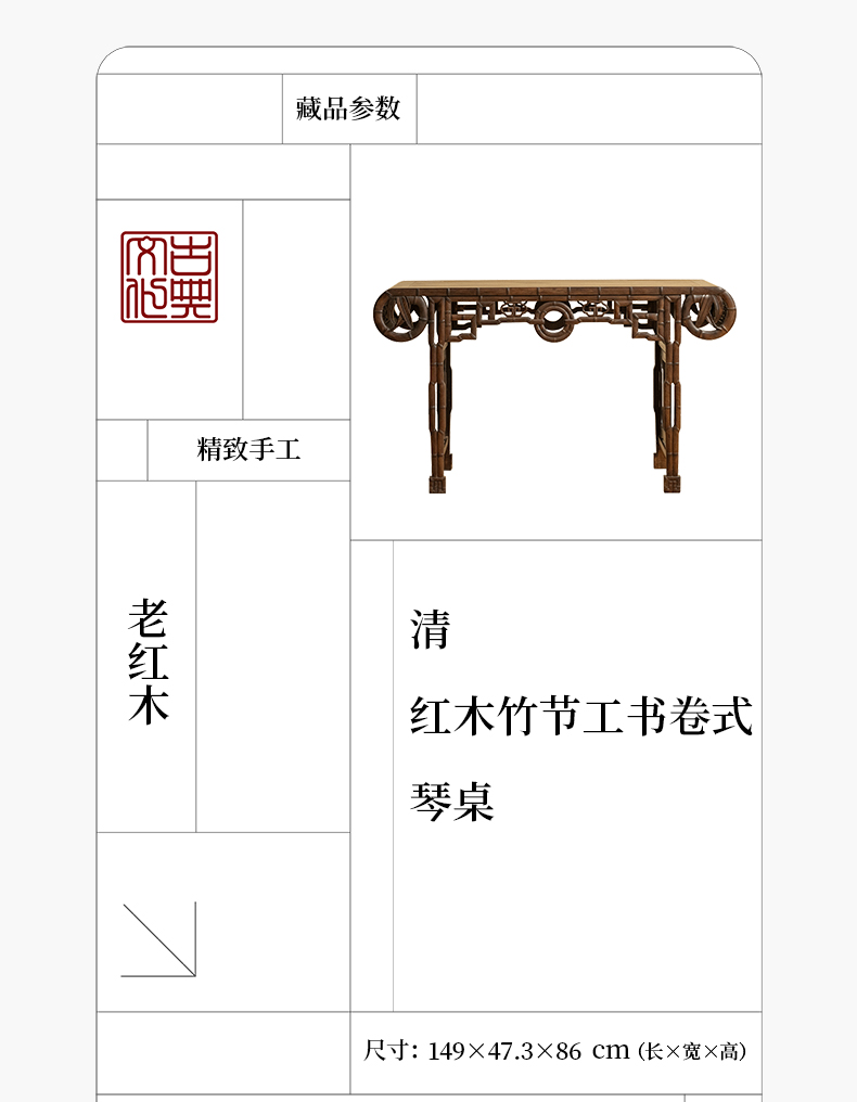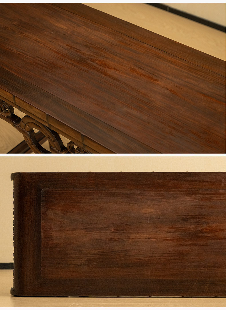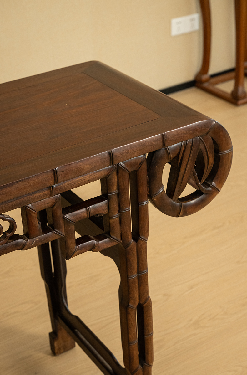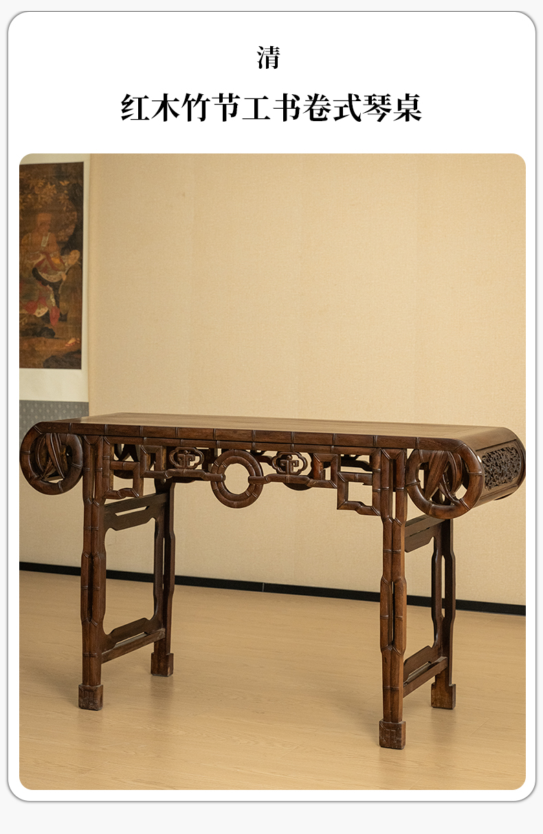 清 红木竹节工书卷式琴桌
