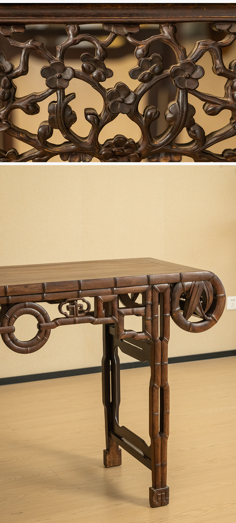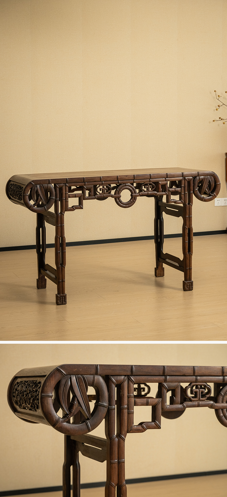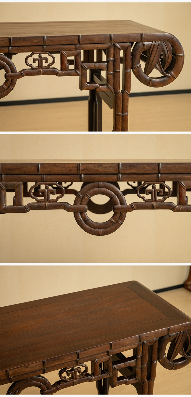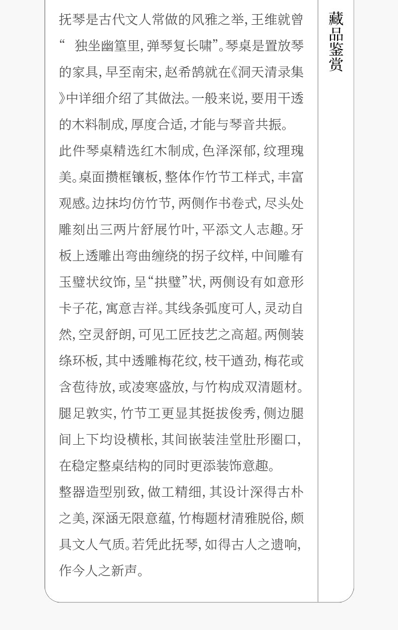 清 红木竹节工书卷式琴桌