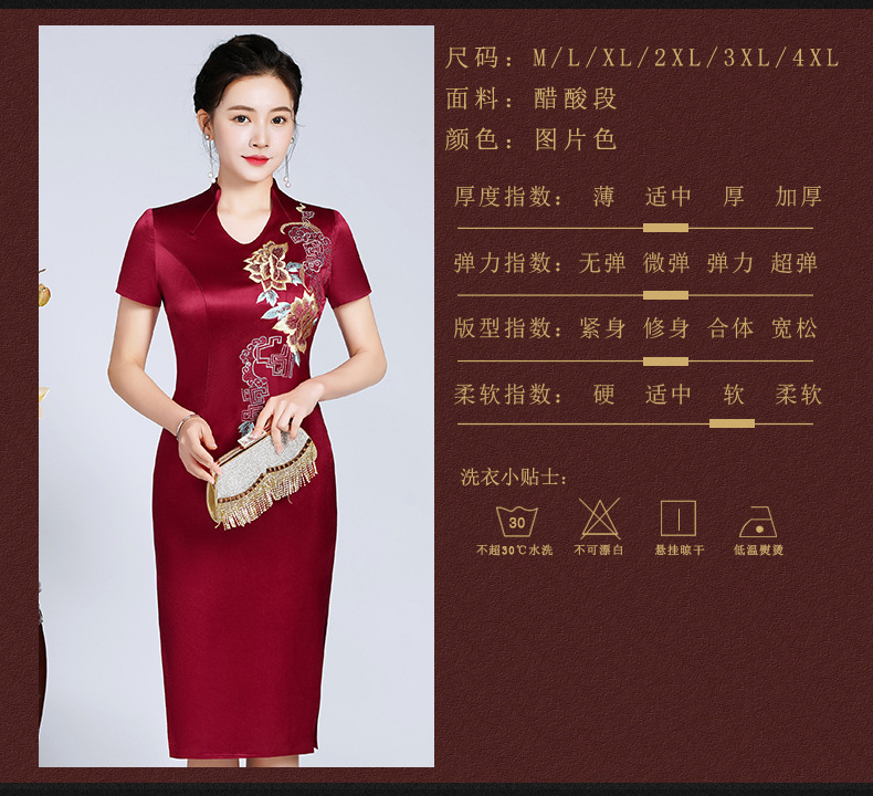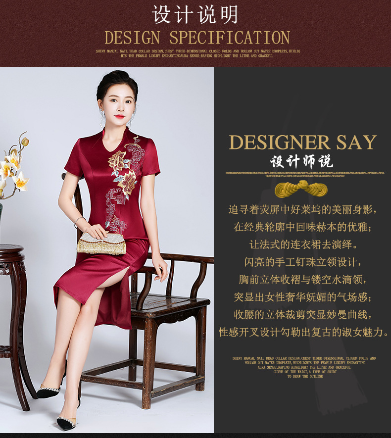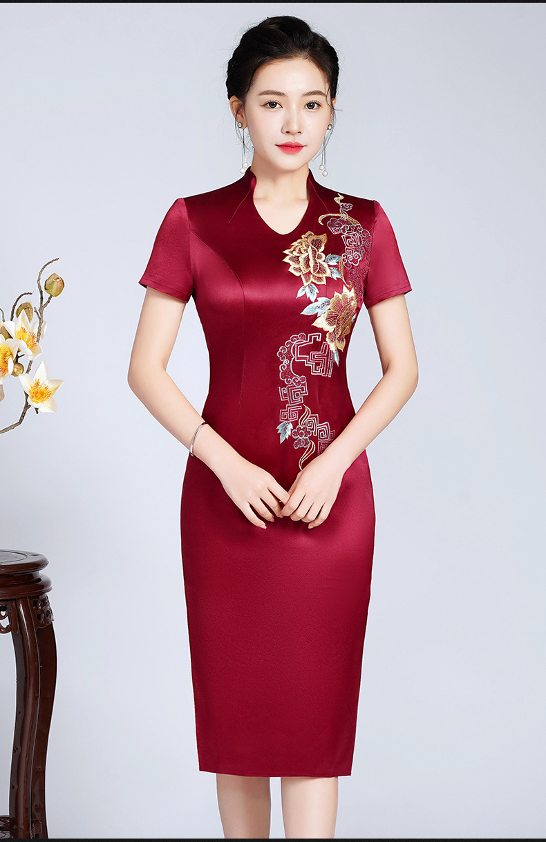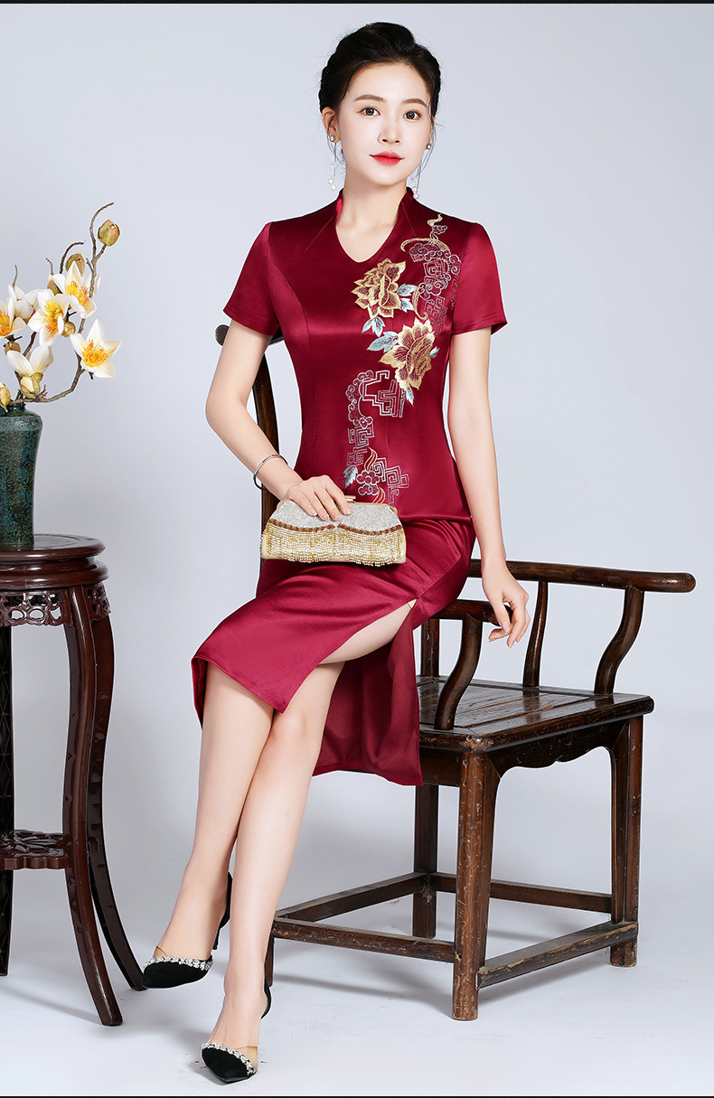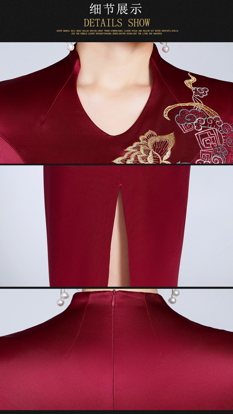 LHS-20256新款喜婆婆婚宴装婚礼礼服红色高贵洋气婚庆旗袍裙春季