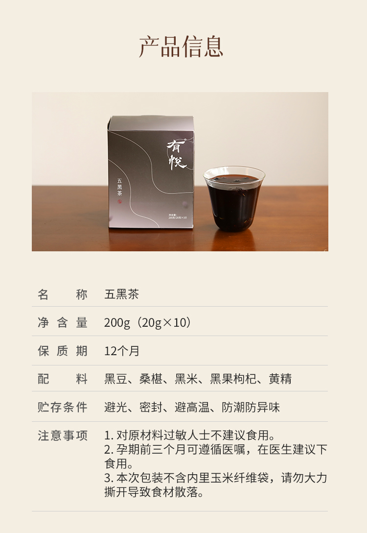 【五黑茶】九蒸九晒黄精 桑葚黑豆黑米黑枸杞20g真材实料以黑养黑