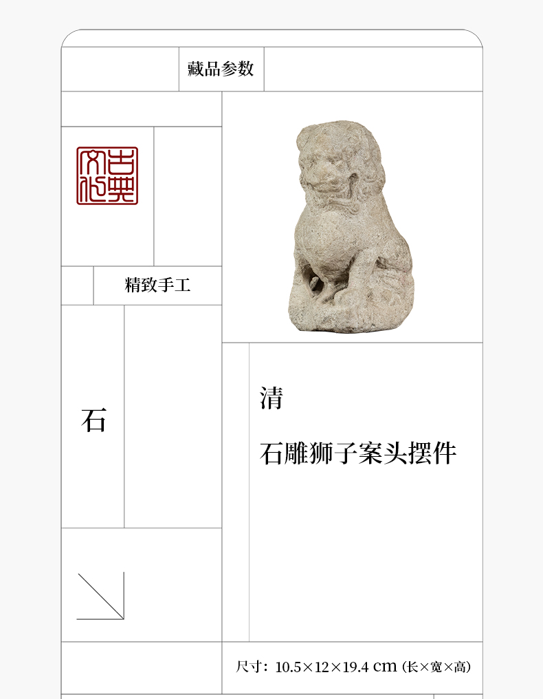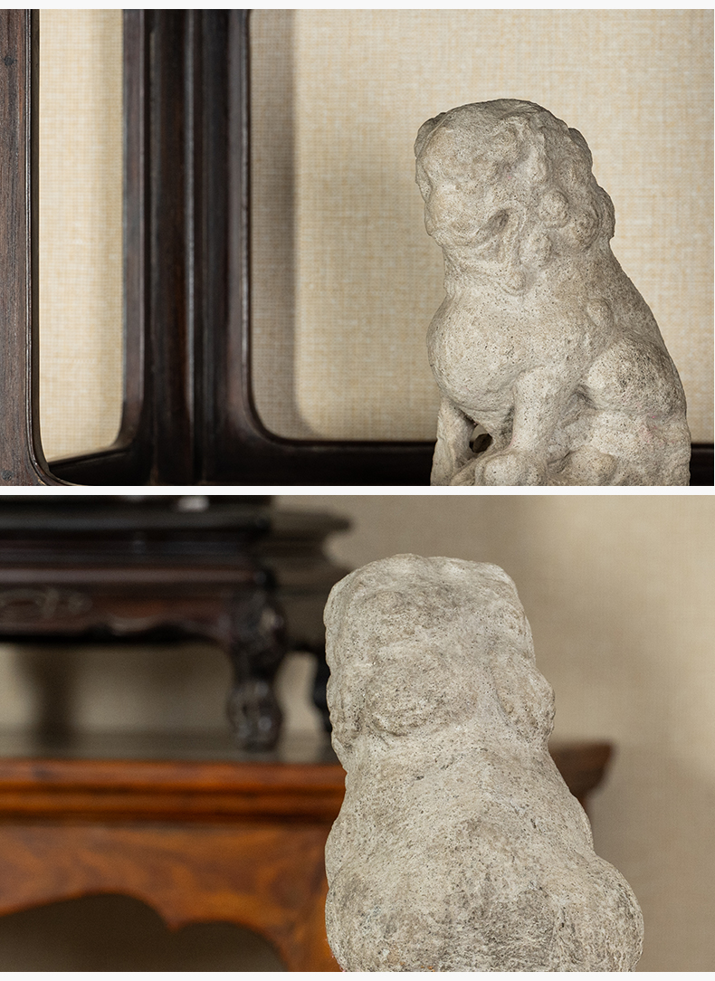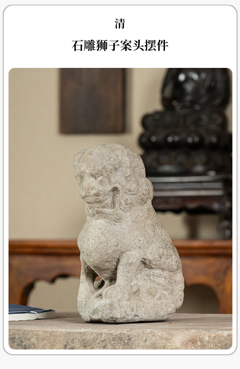 清 石雕狮子案头摆件
